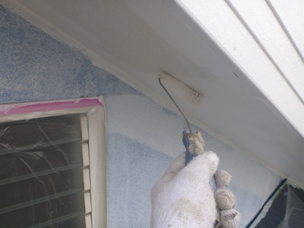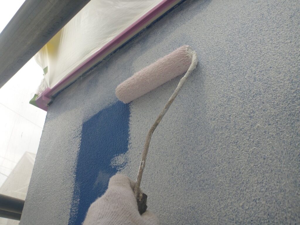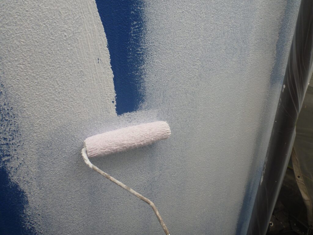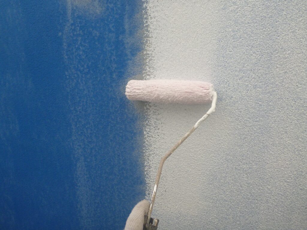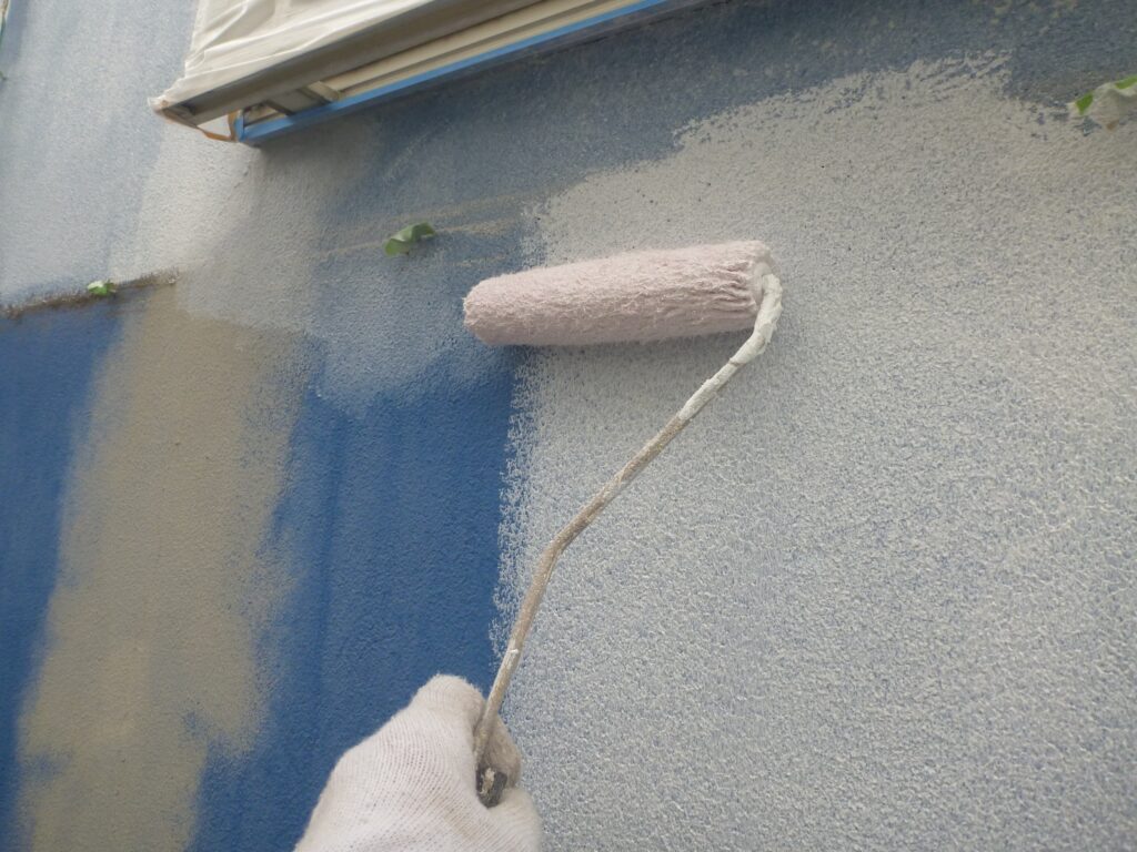 モルタル外壁なので微弾性のフィラーを使って下塗りを行いました。