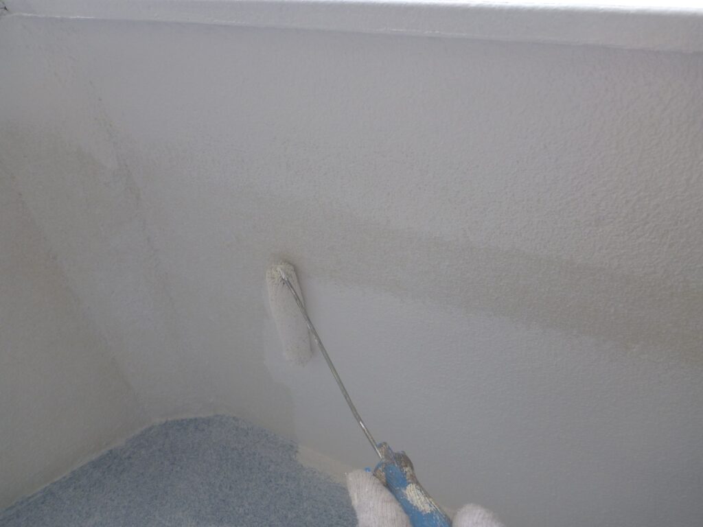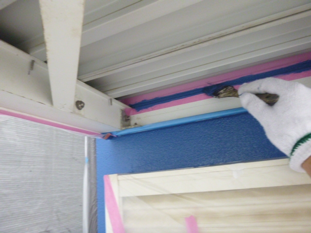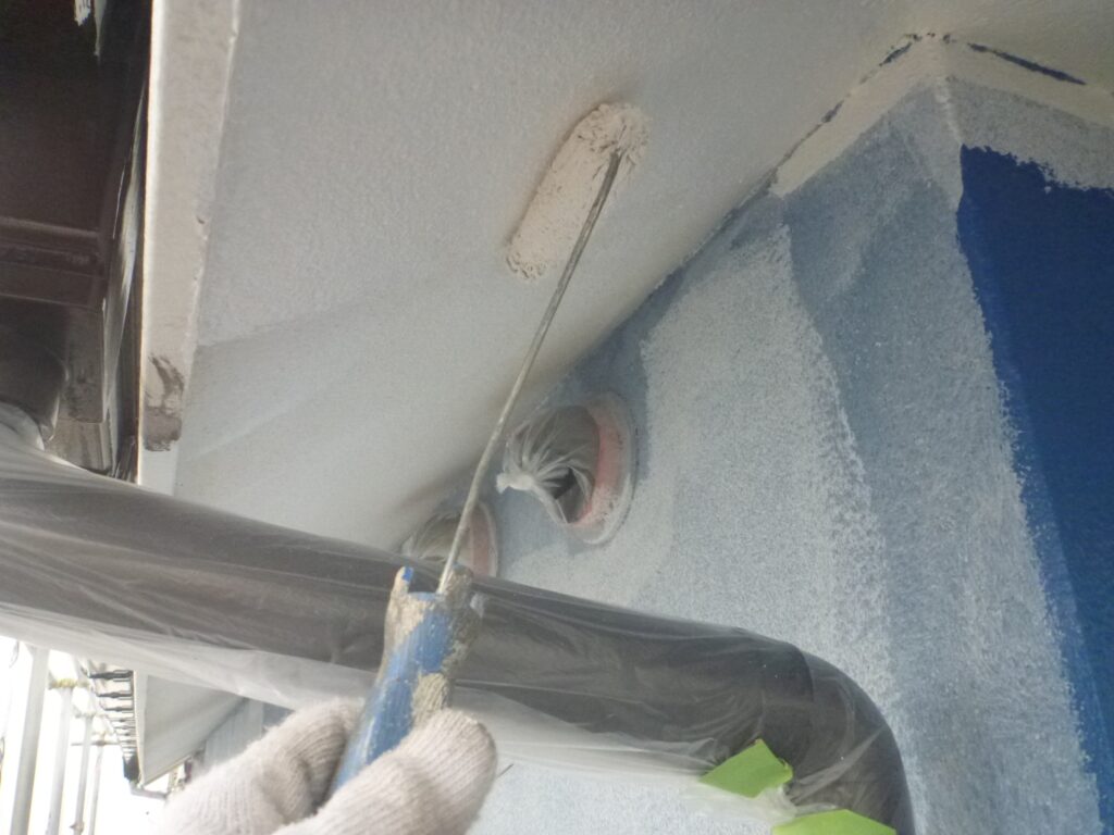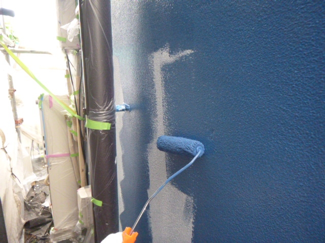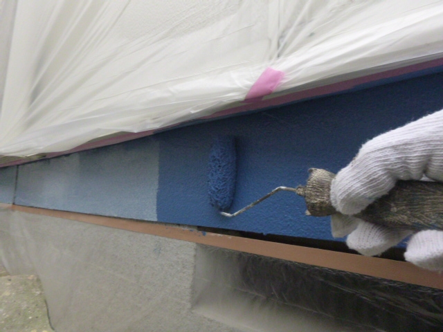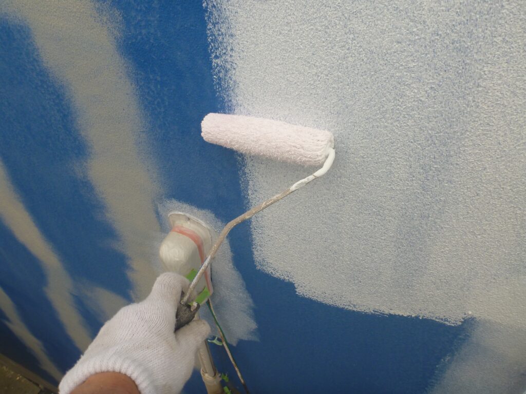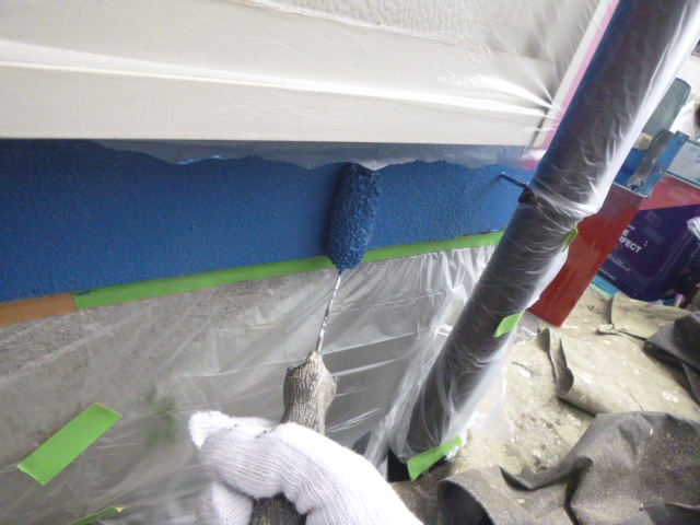 モルタル外壁なので微弾性のフィラーを使って下塗りを行いました。