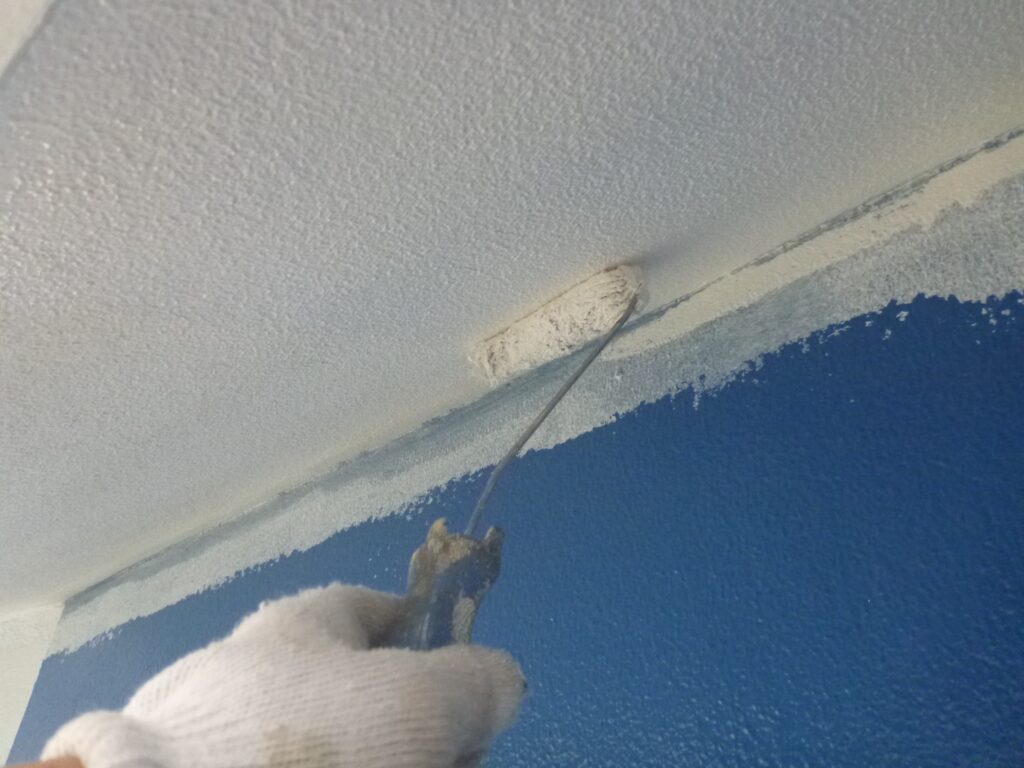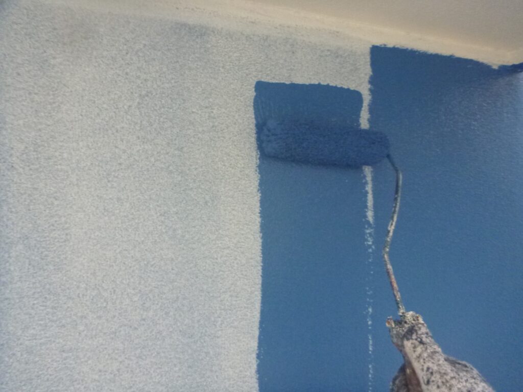 たっぷりローラーに塗料を含ませ、下地を作ります。