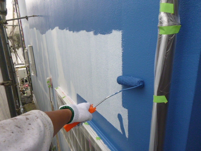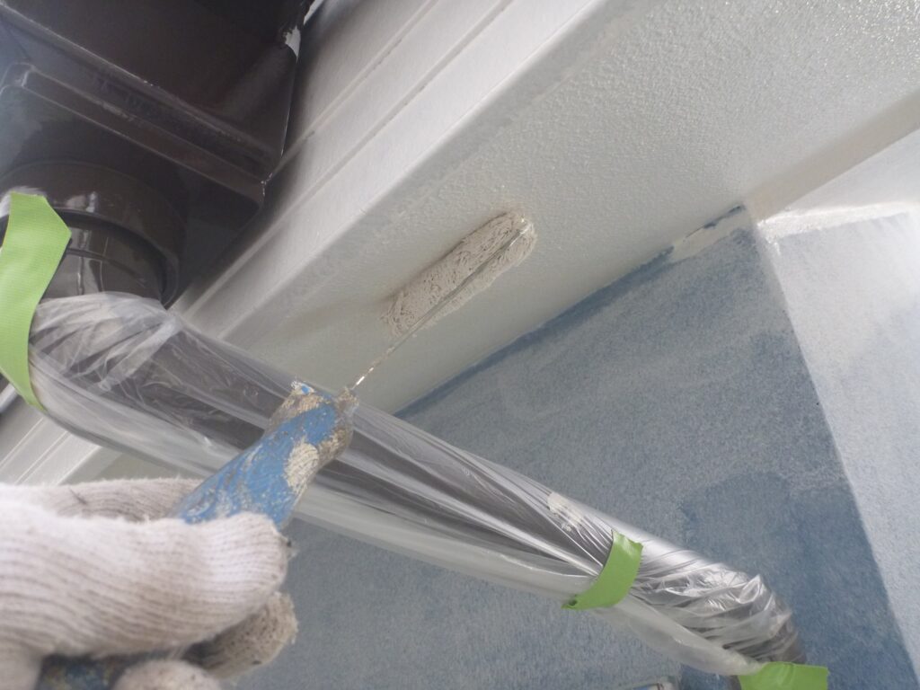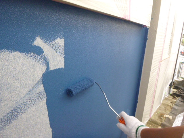 凹凸の少ないフラットな外壁なので、塗料による凹凸が出ないように注意して塗装します。
