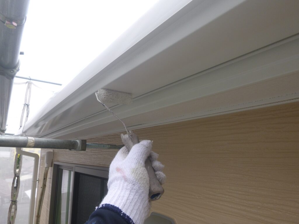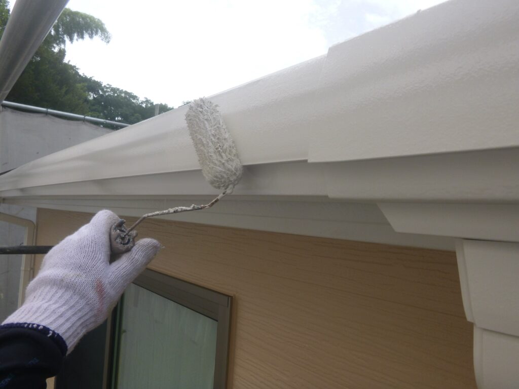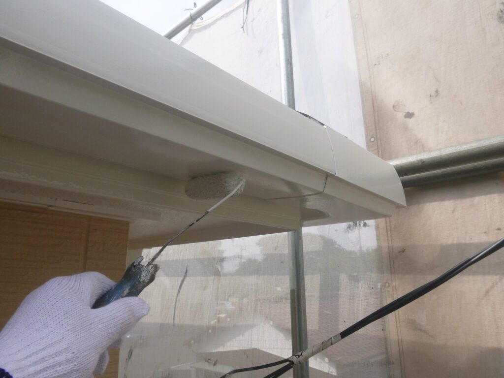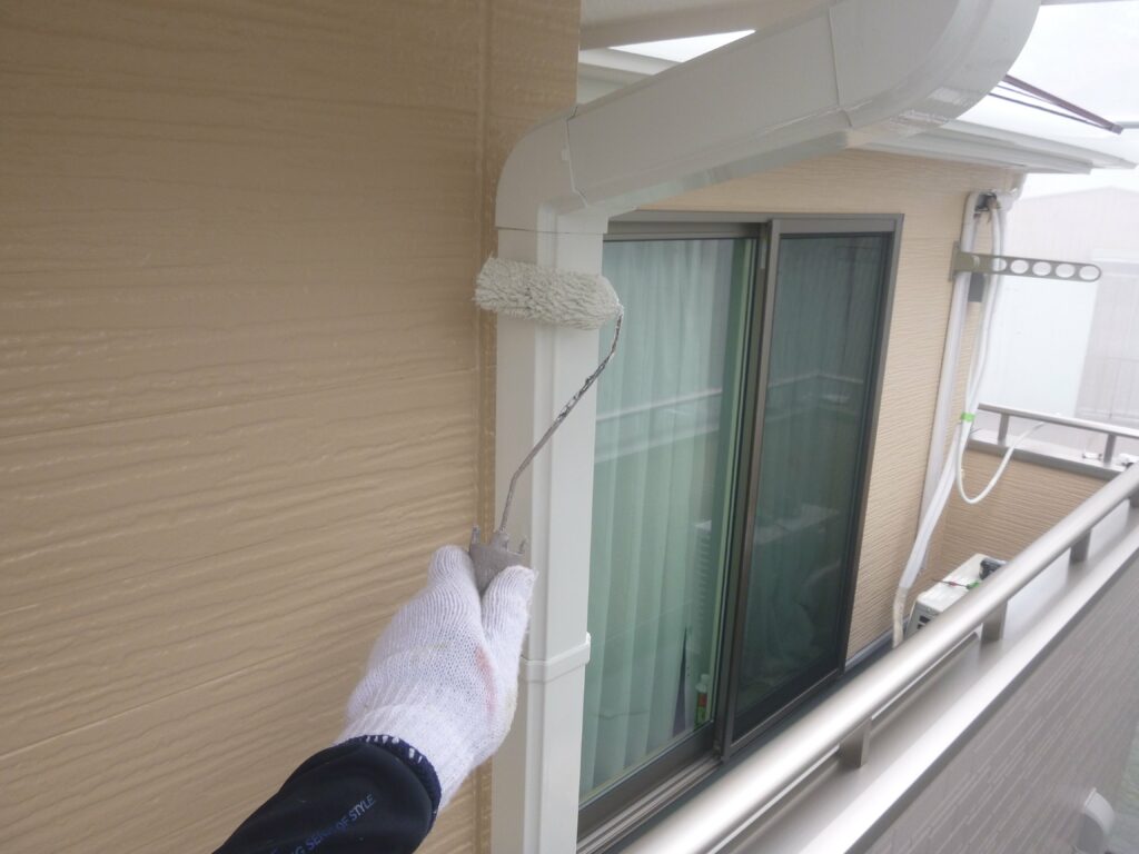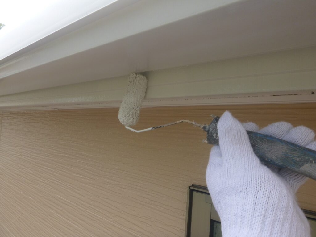 外壁の塗装が完了しているので、ローラーがついてしまったり、塗料飛び散りがないように塗装します。