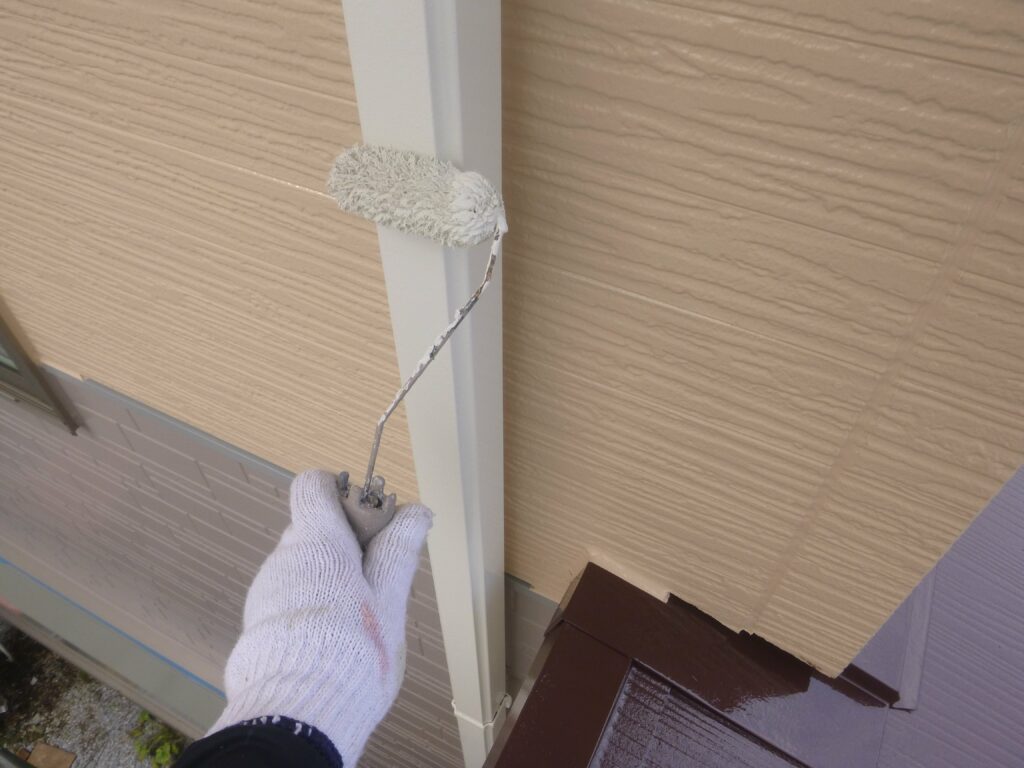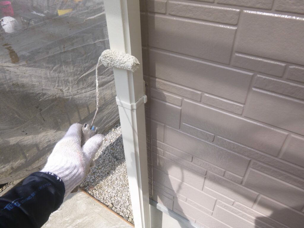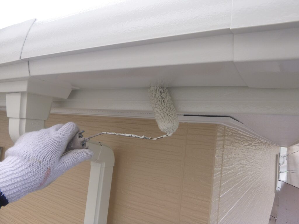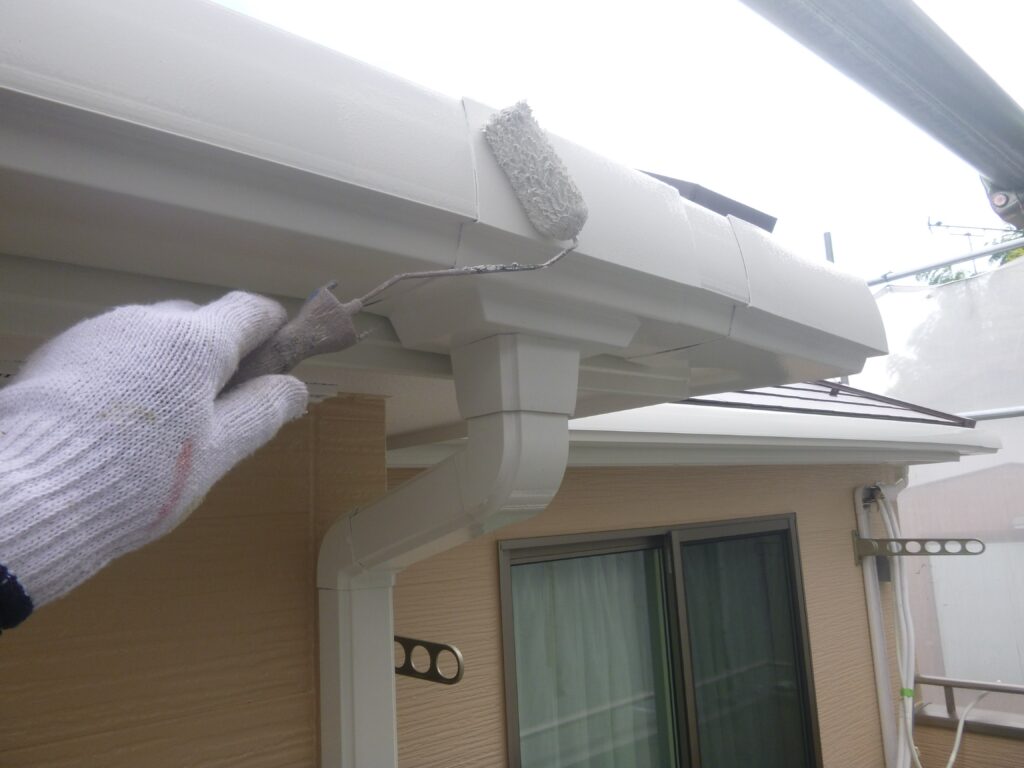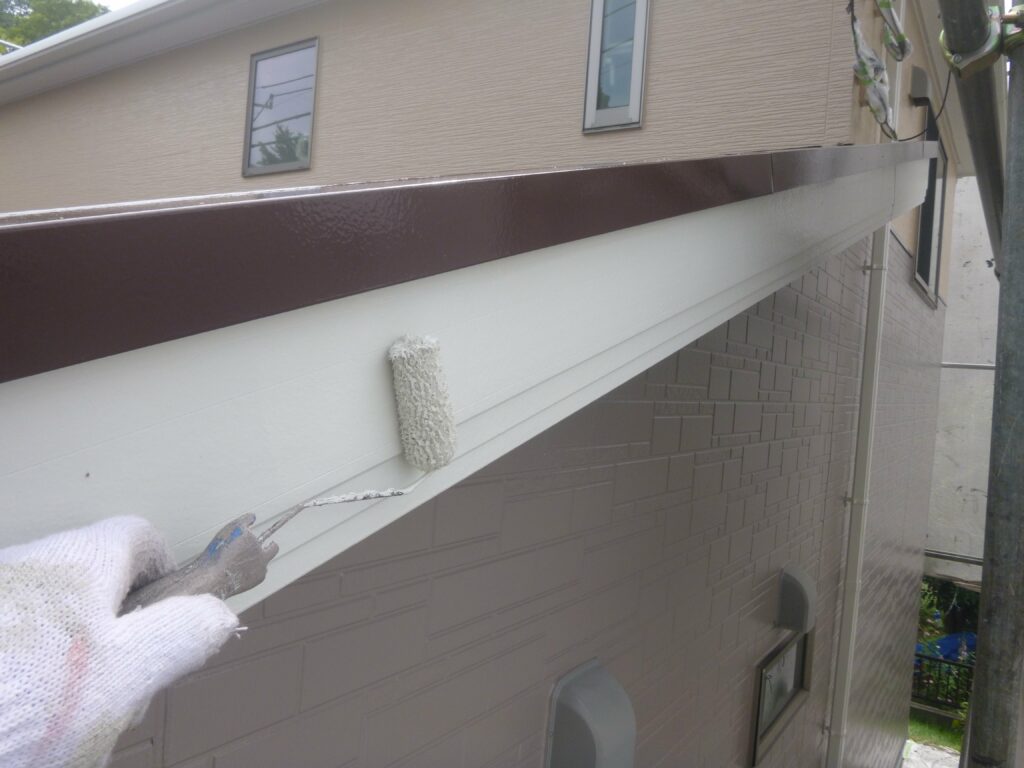 外壁の塗装が完了しているので、ローラーがついてしまったり、塗料飛び散りがないように塗装します。