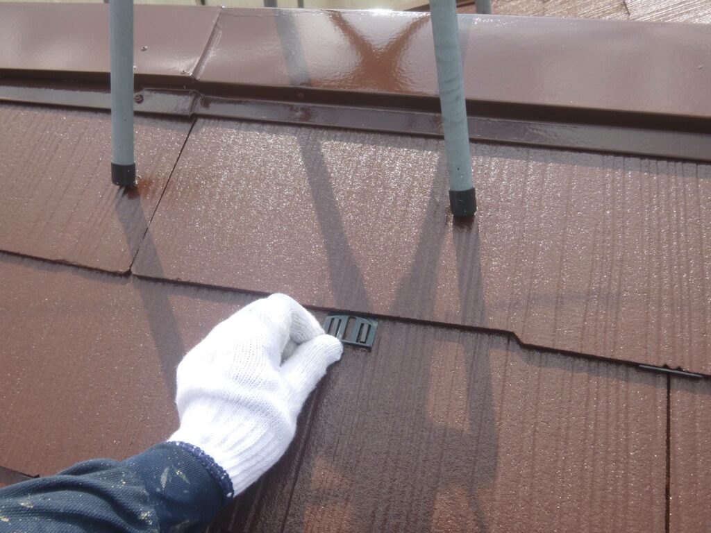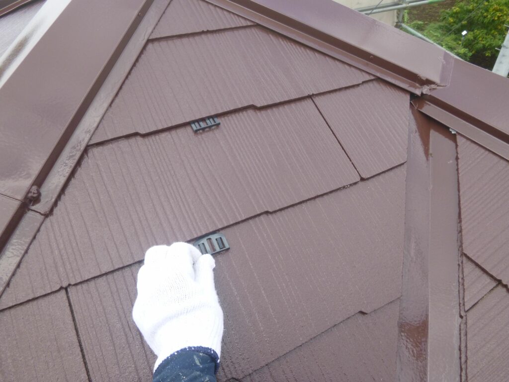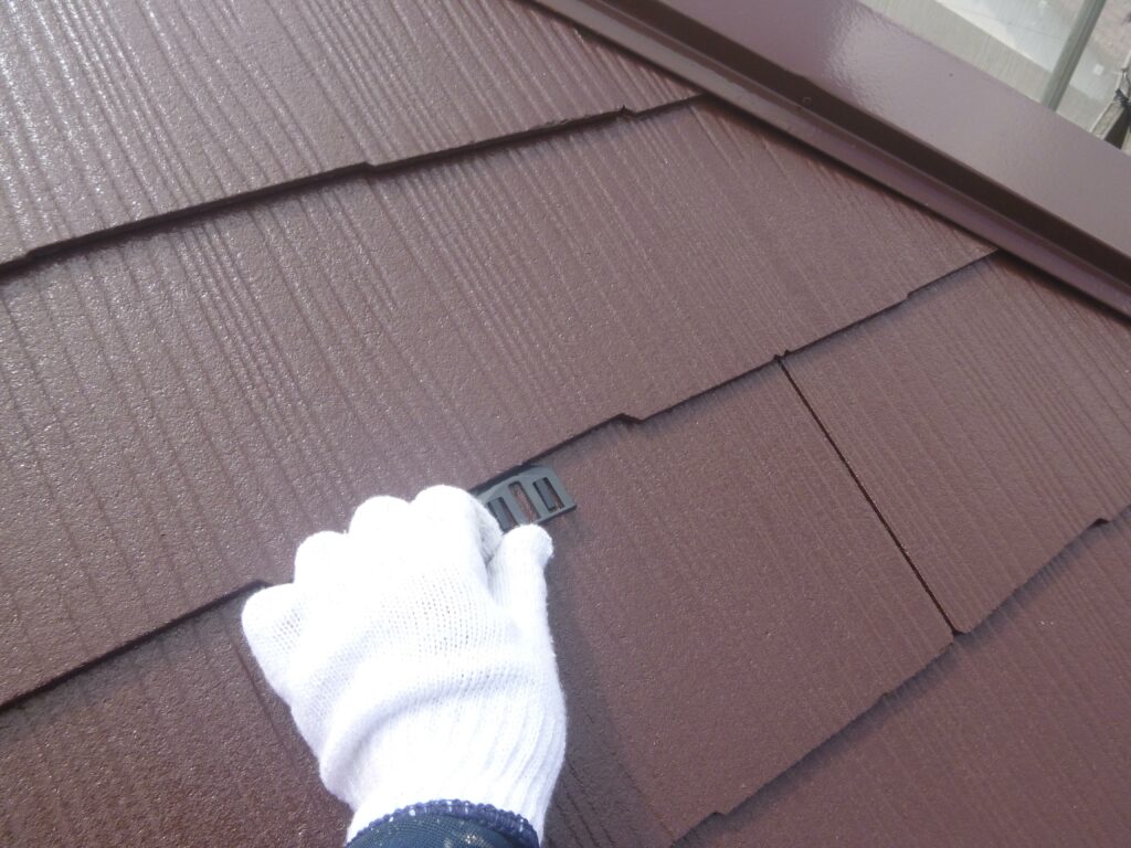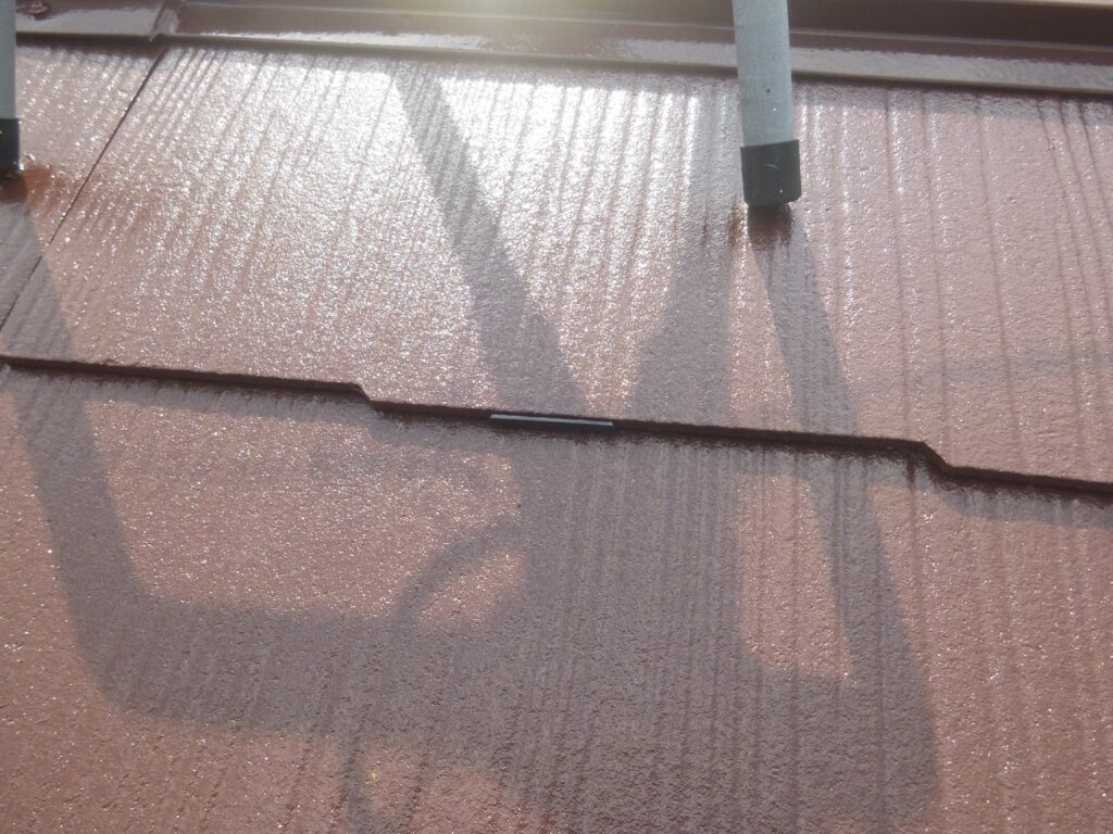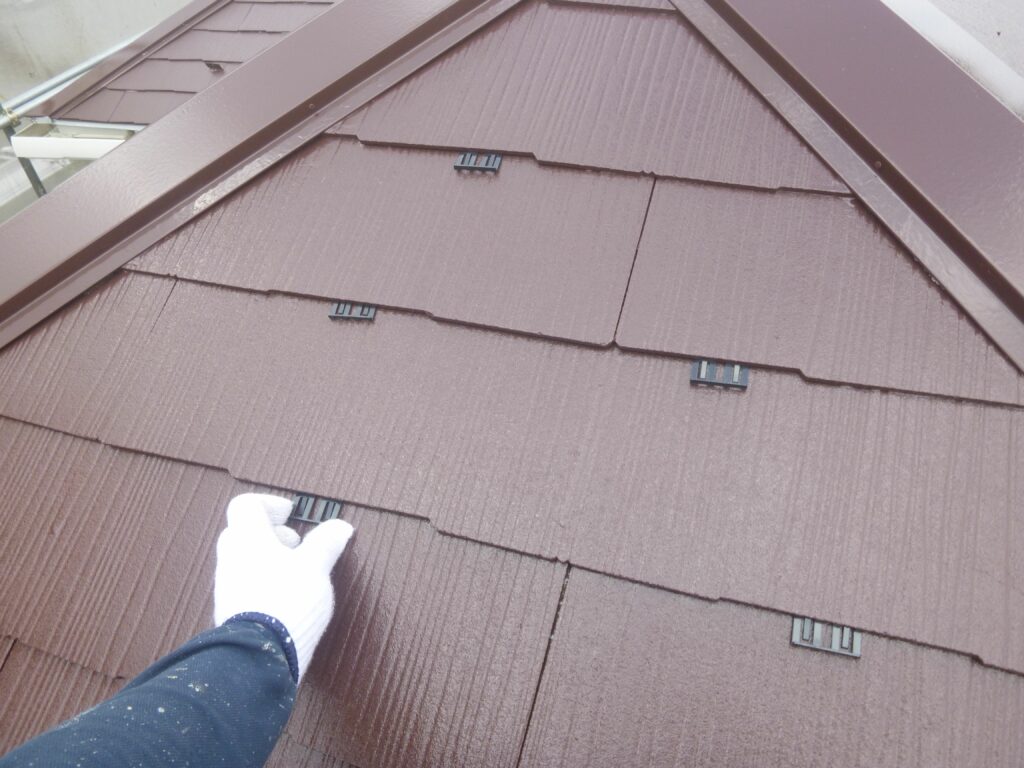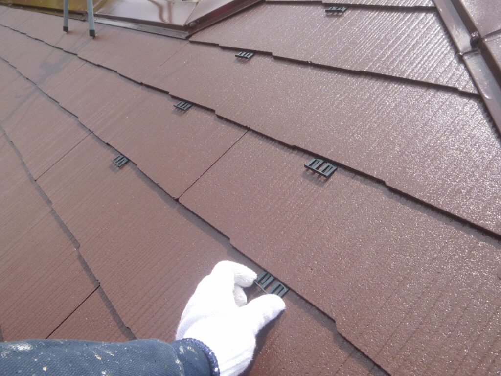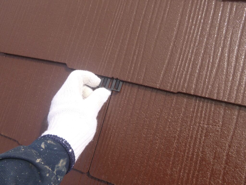 屋根のスレートは少しだけ隙間が空いていて、そこから裏に回ってしまった水が排出されます。