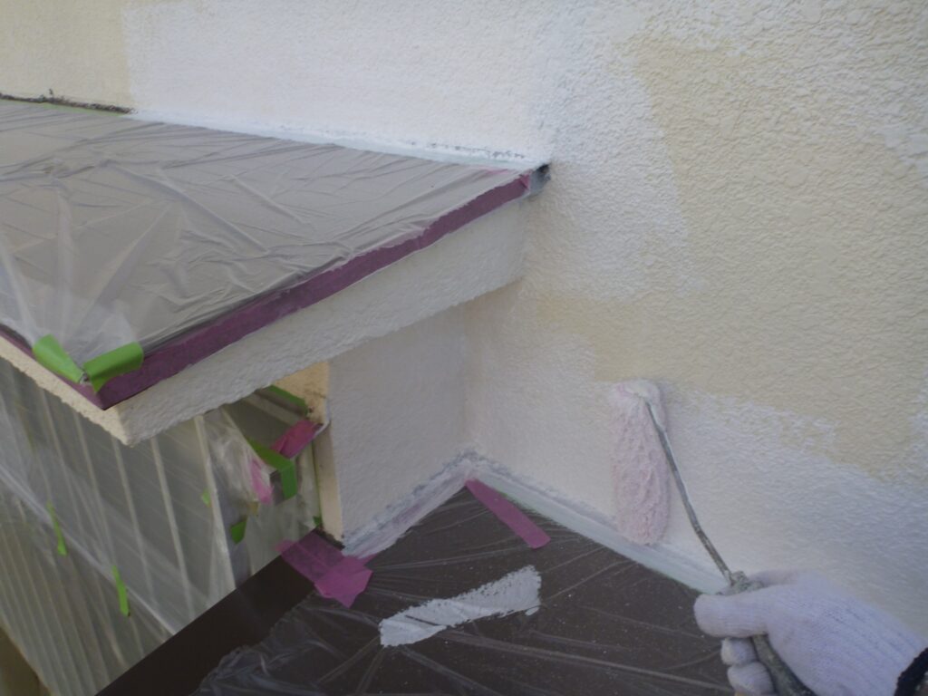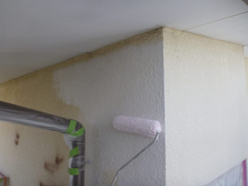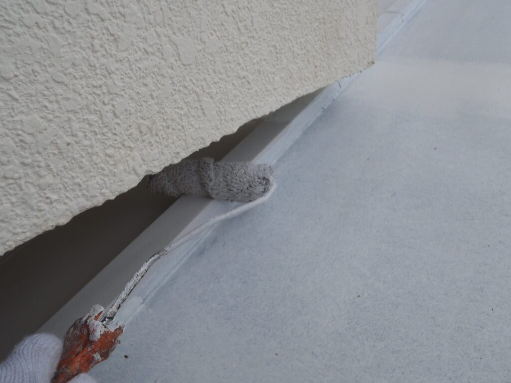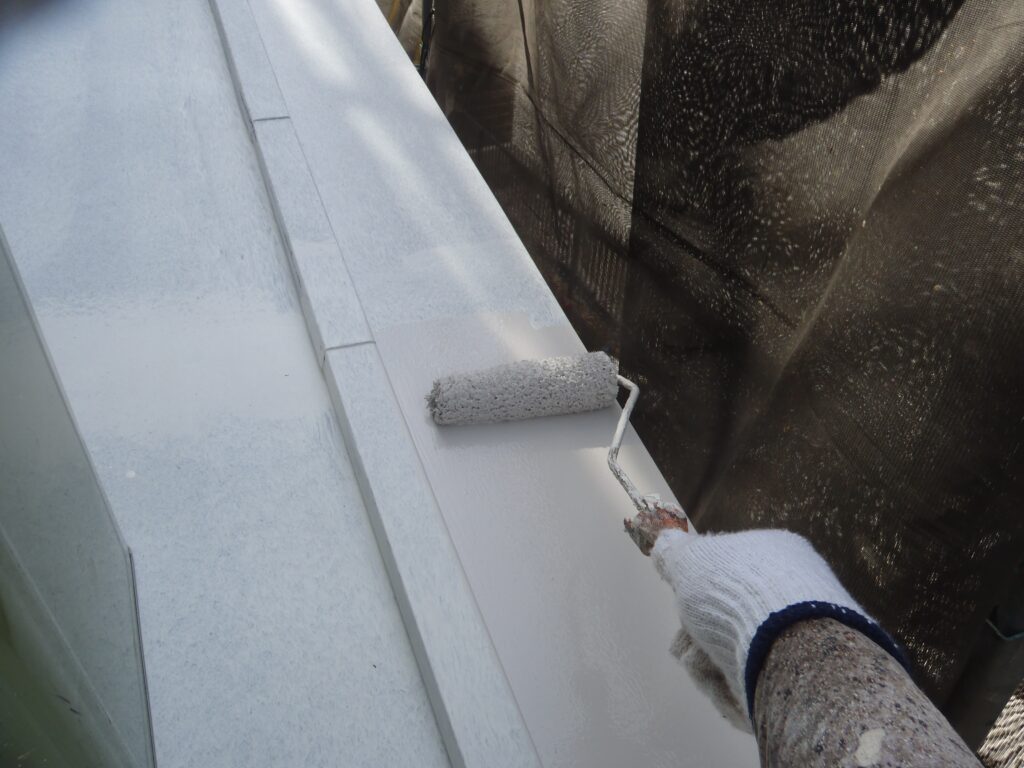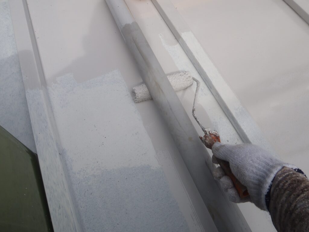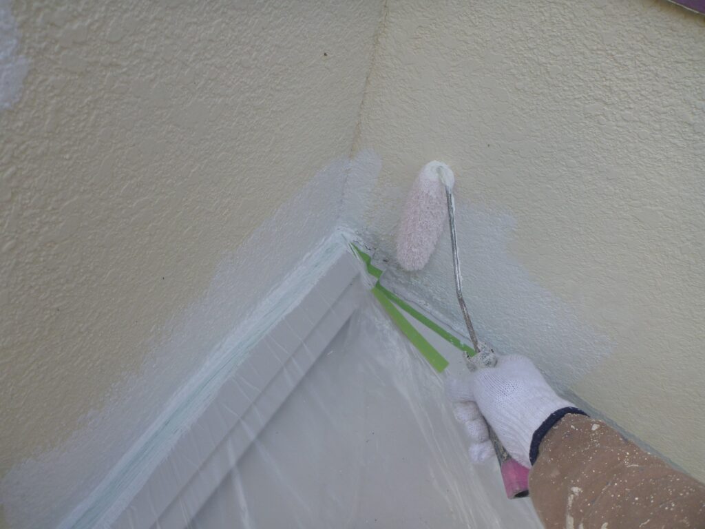 並行して付帯部にも中塗りを行います。