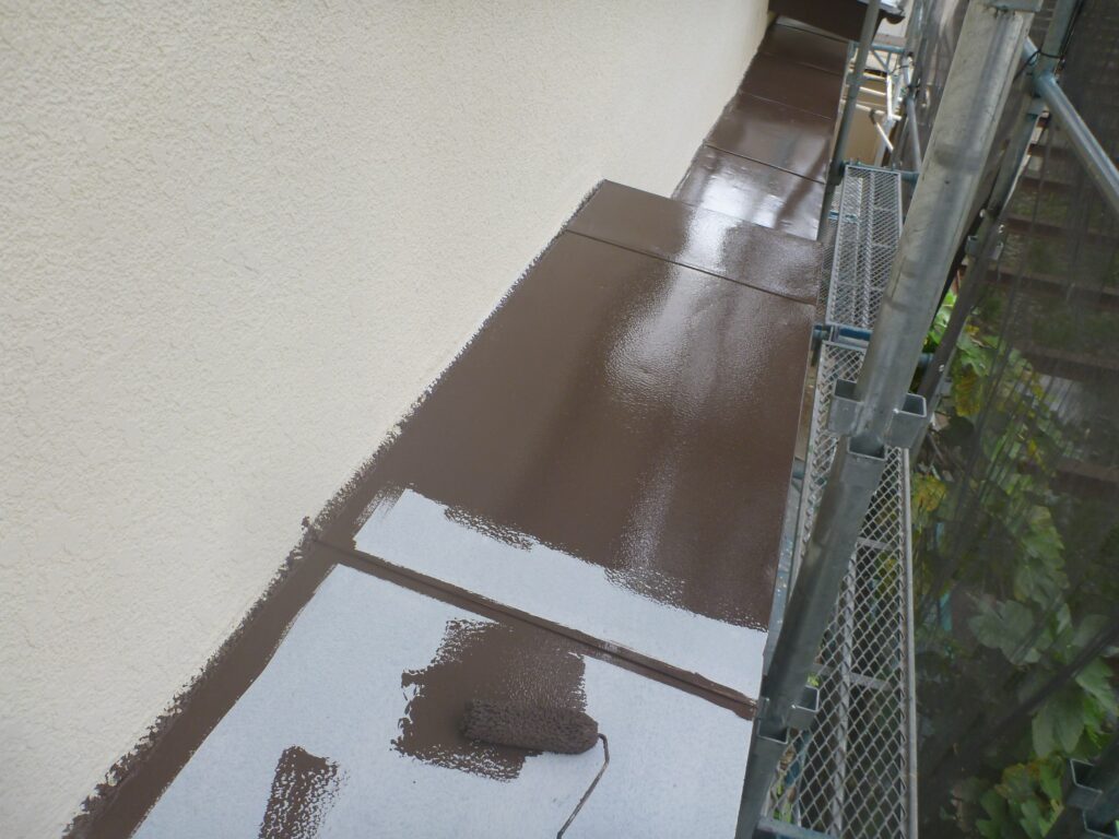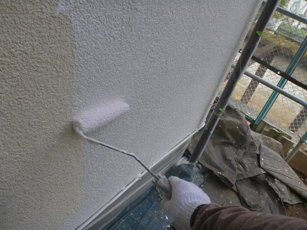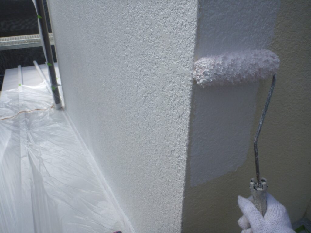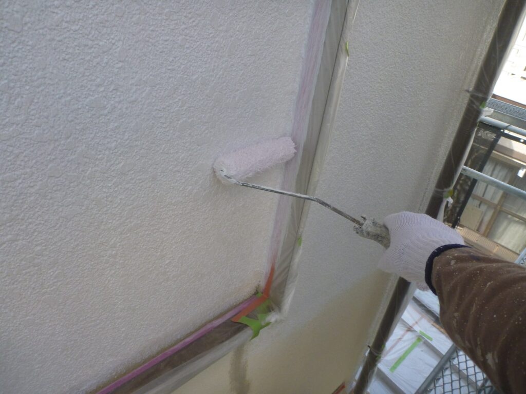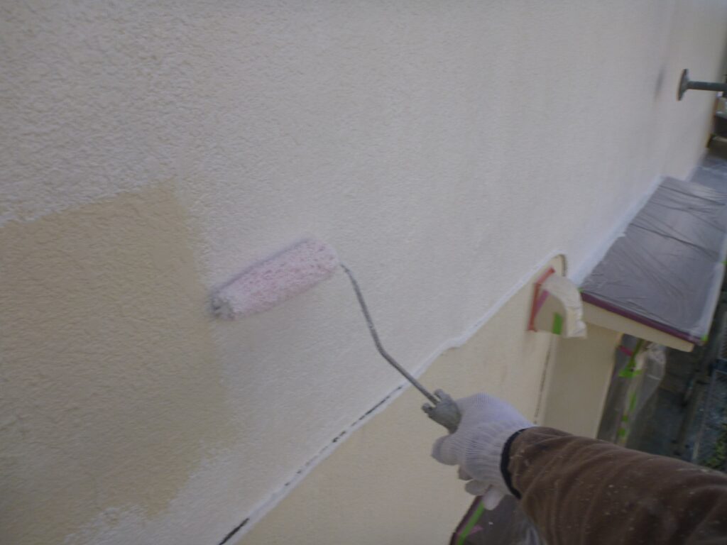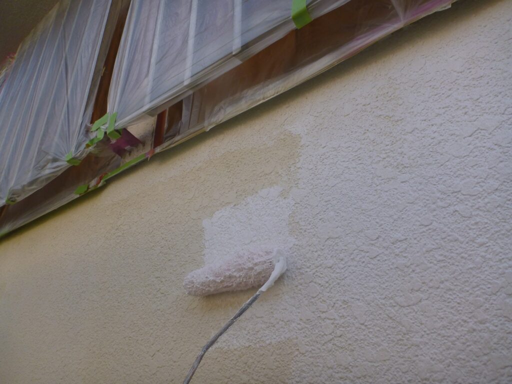 並行して付帯部にも中塗りを行います。