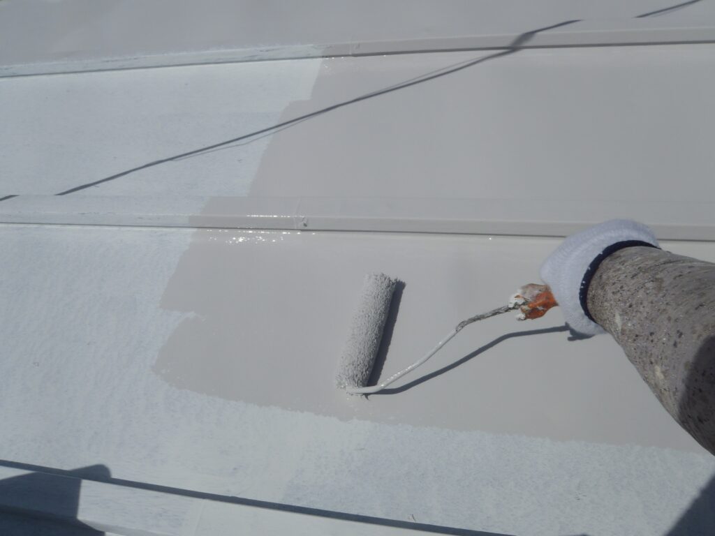 まずは屋根と付帯部の中塗りから始めていきます。