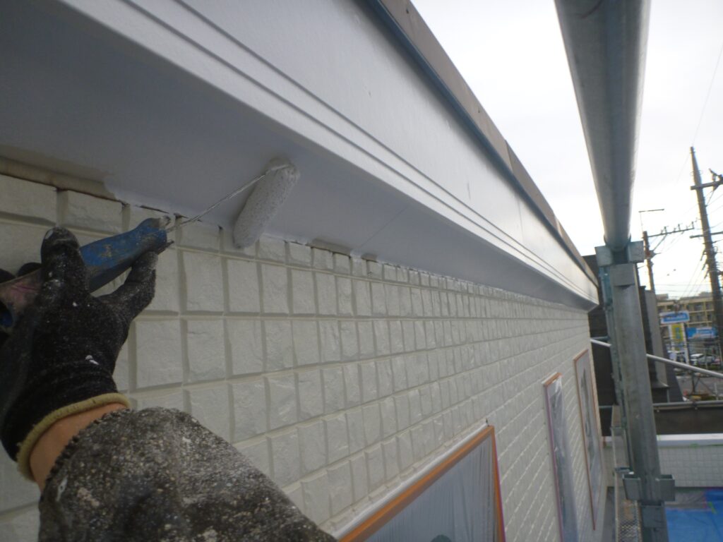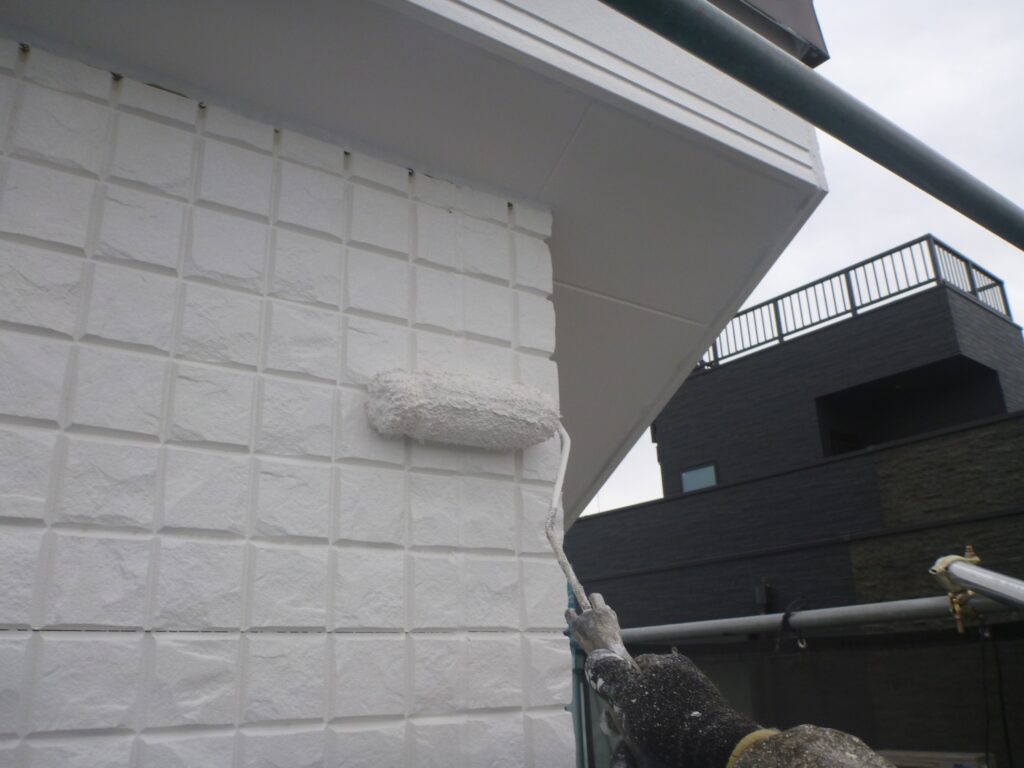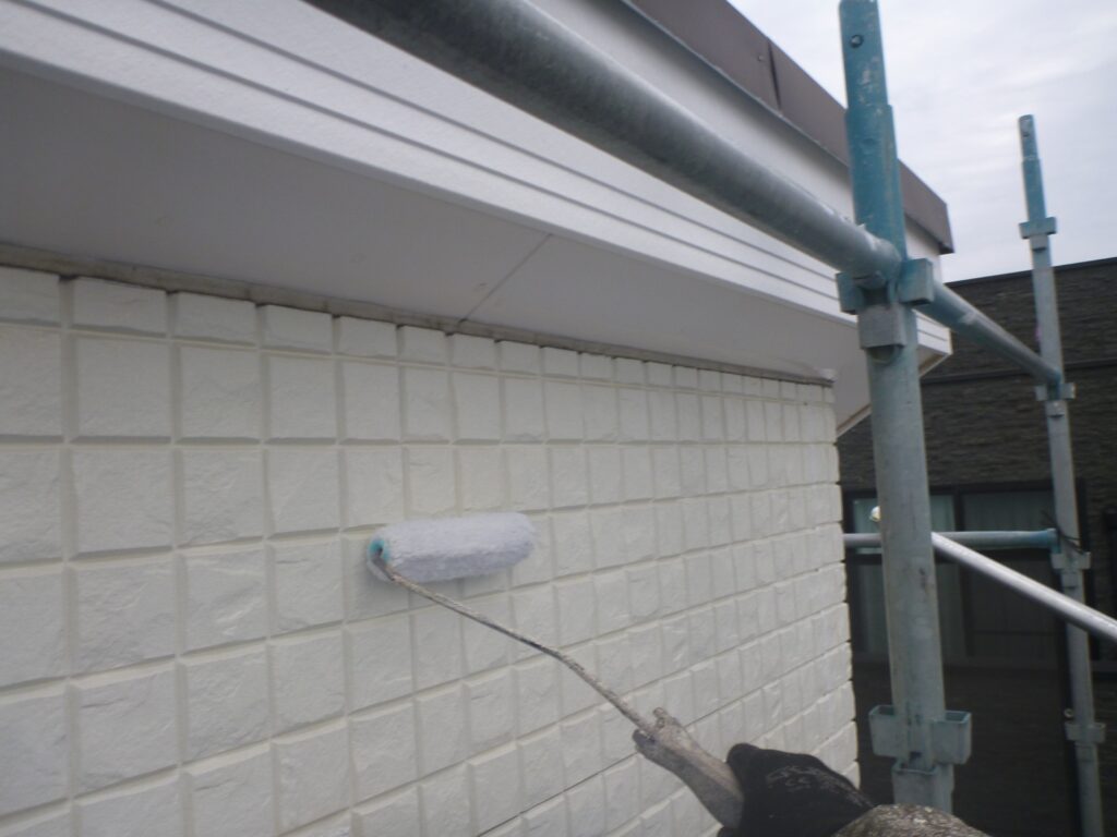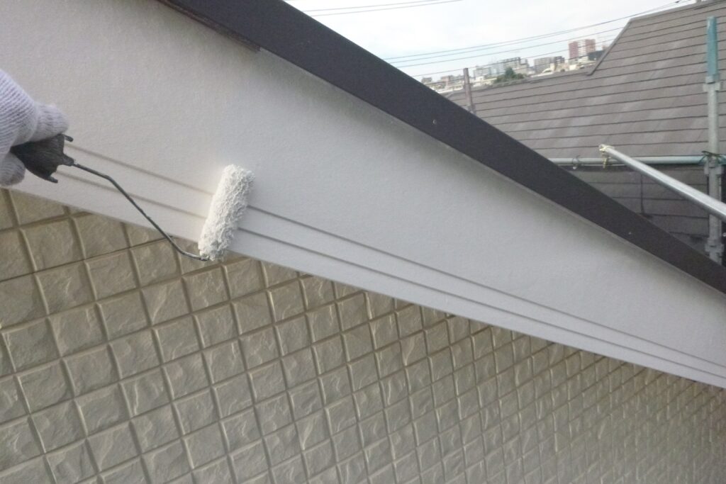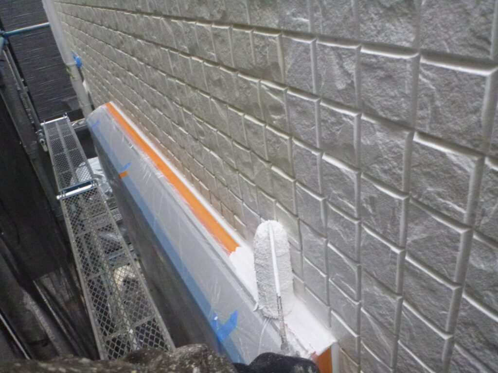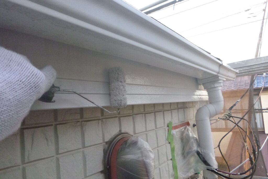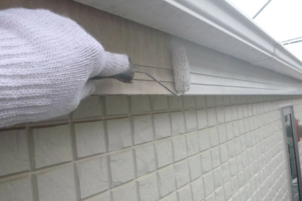 付帯部の下塗りから外壁の中塗りまでの工程です。