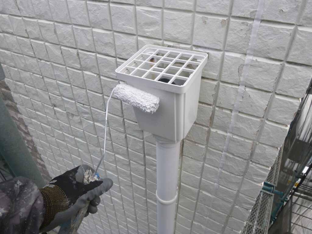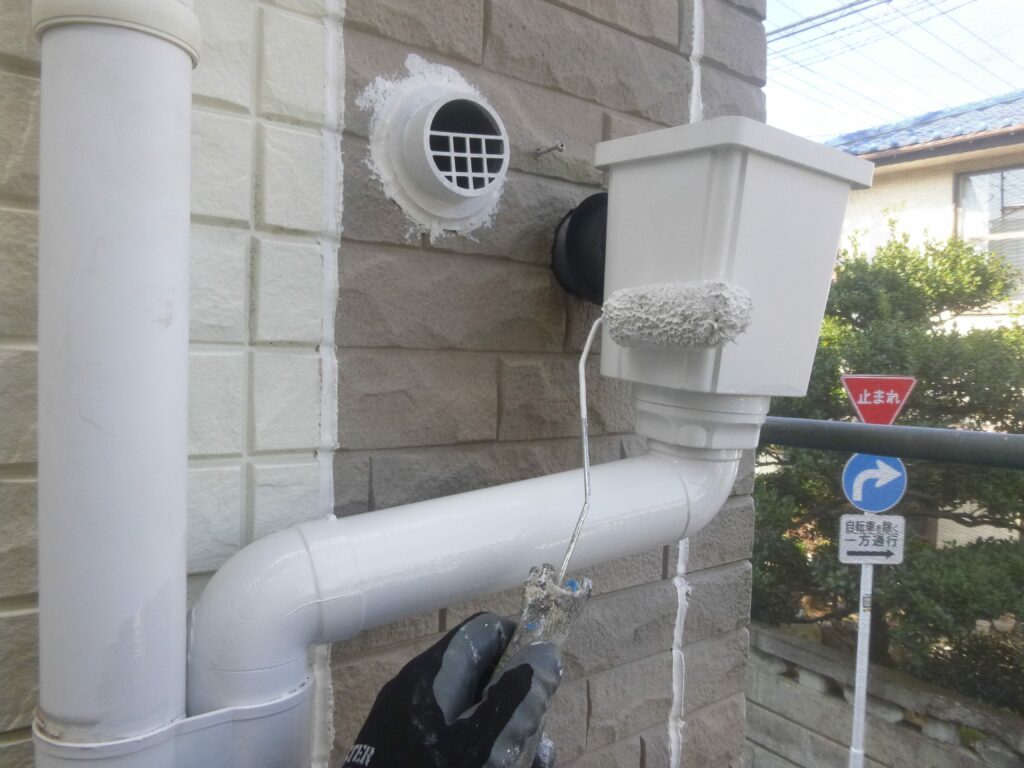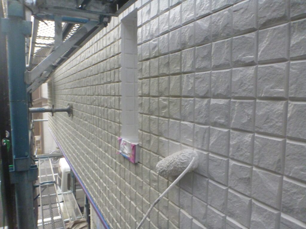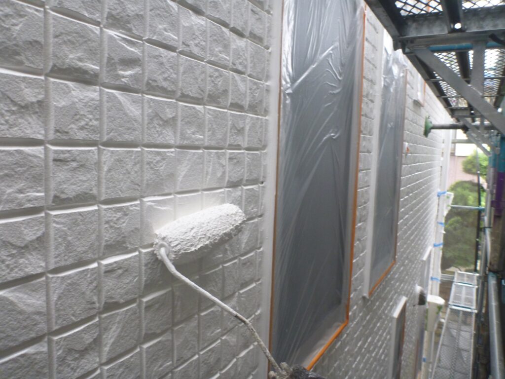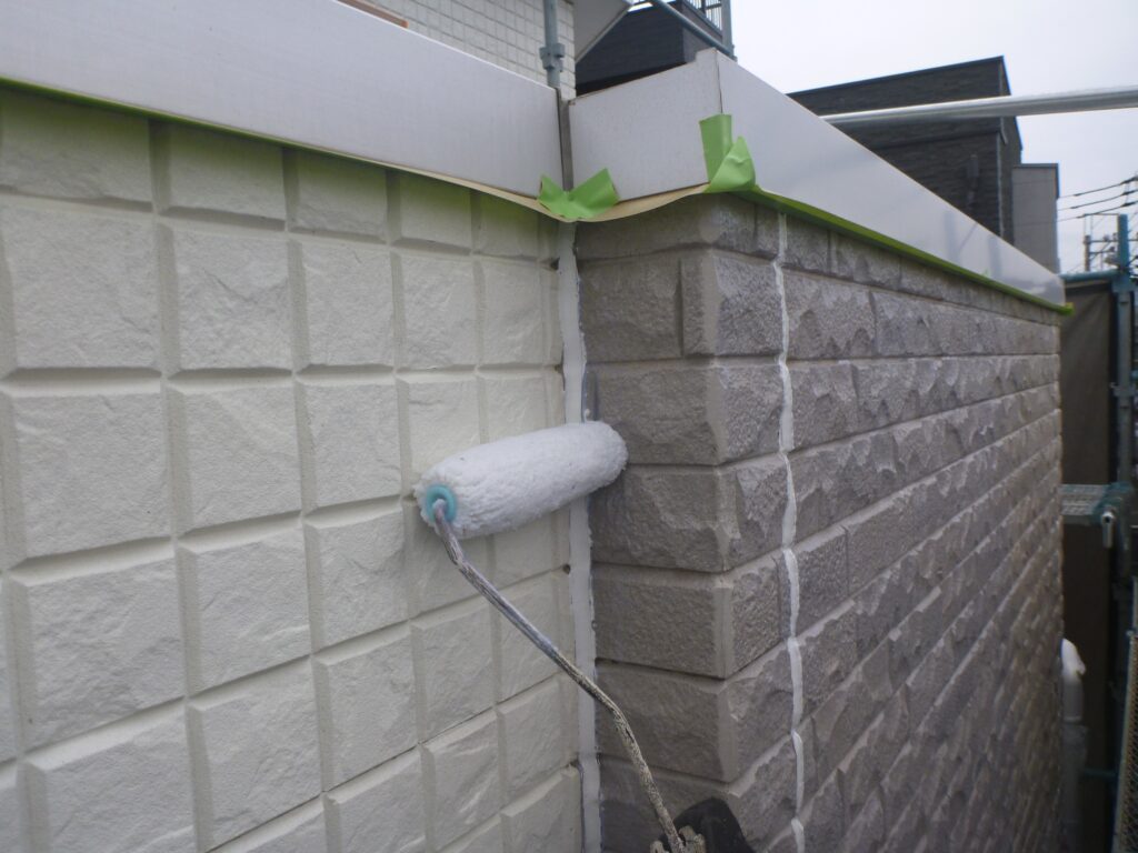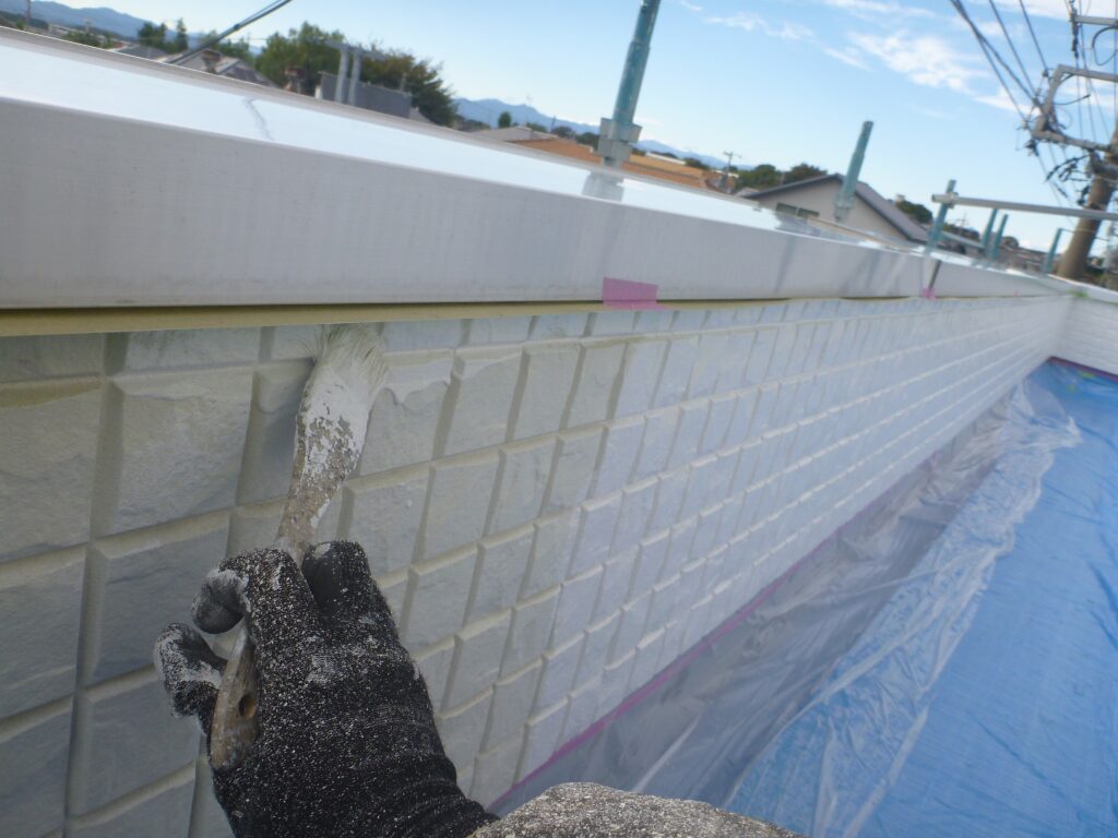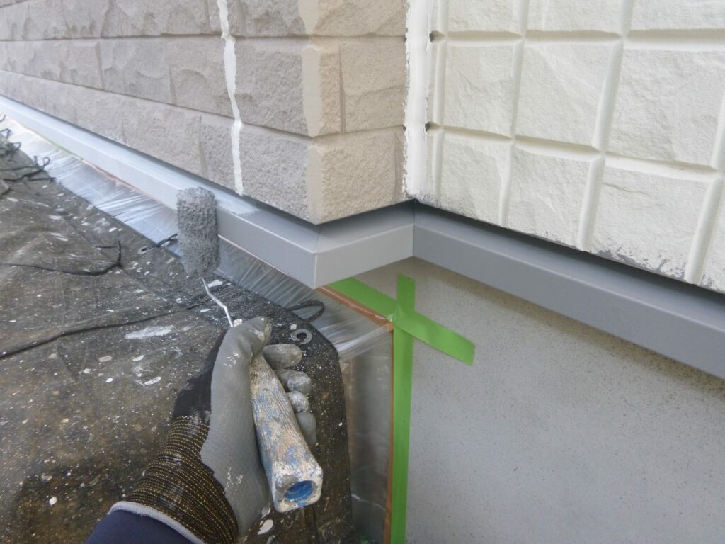 付帯部の下塗りから外壁の中塗りまでの工程です。