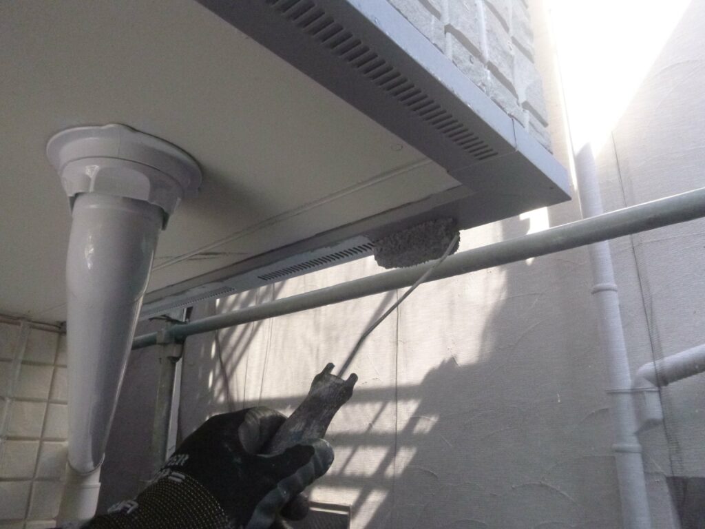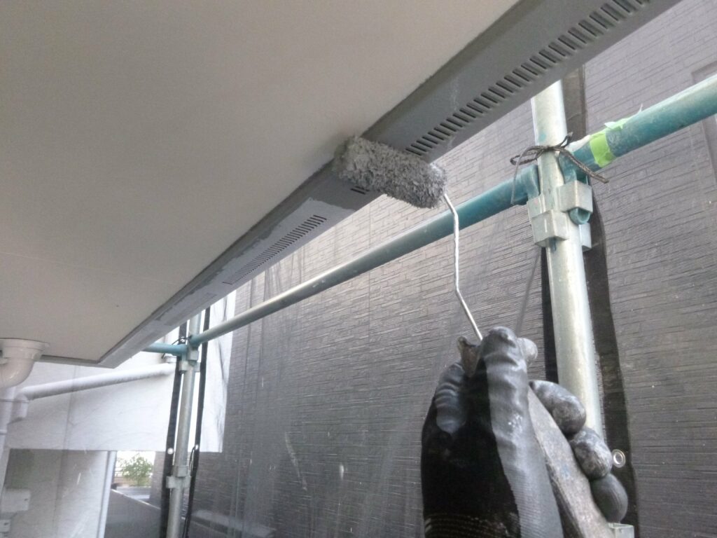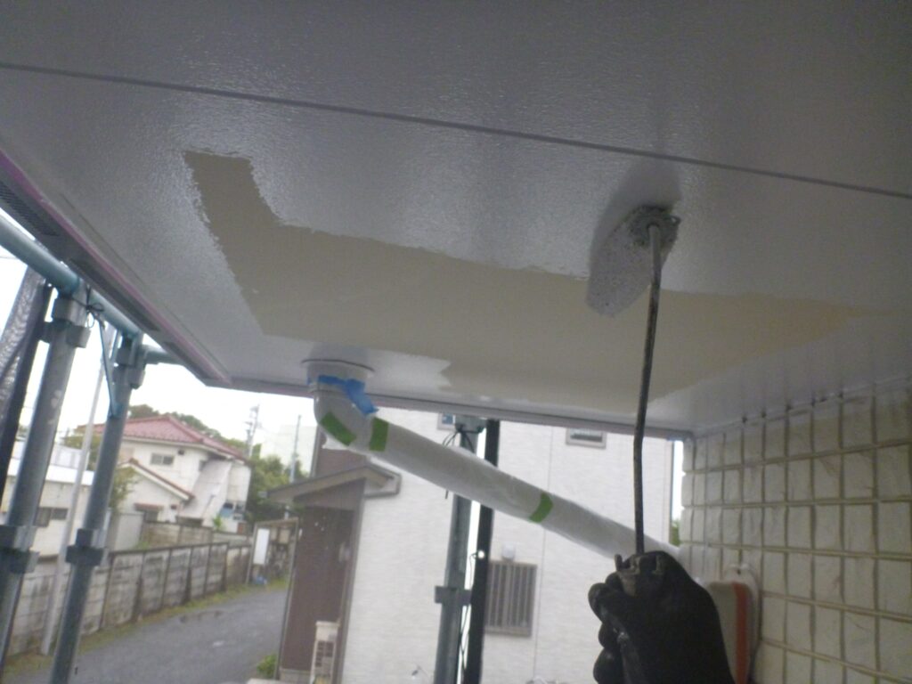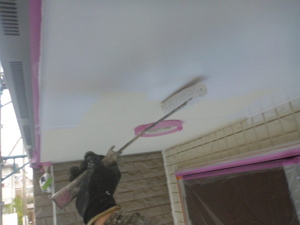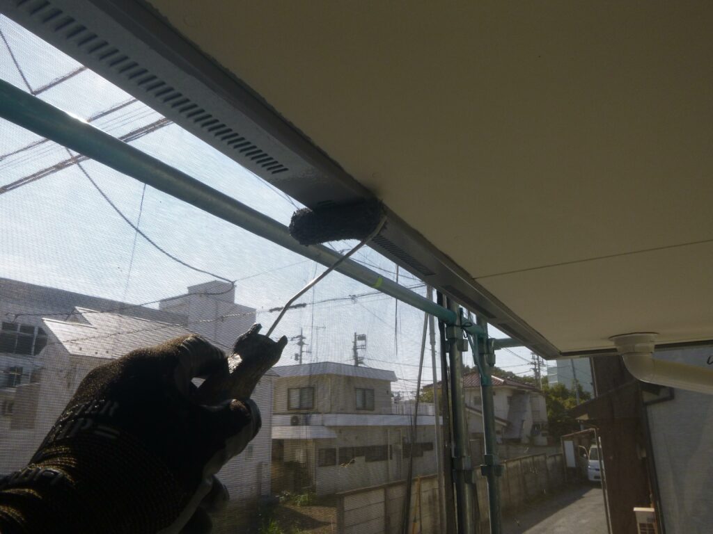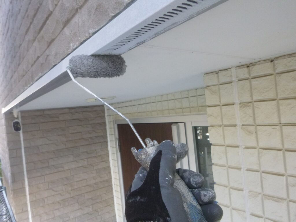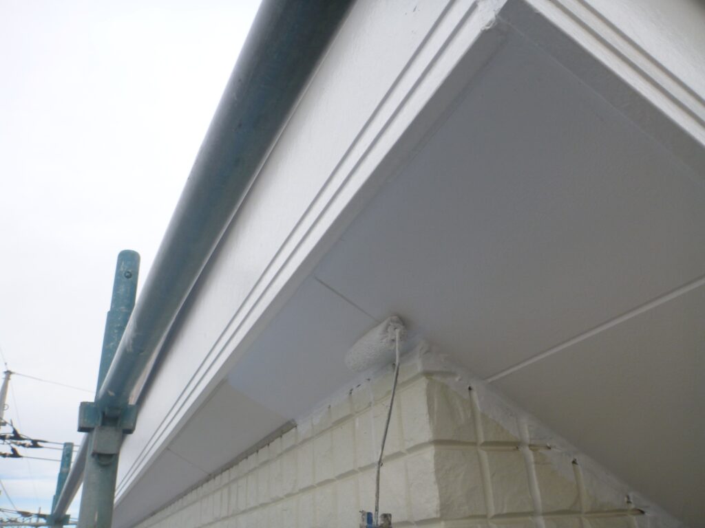 軒天上もサイディングボードなので、同じ塗料で塗装しました。