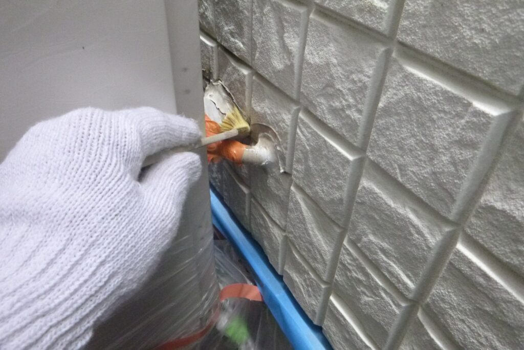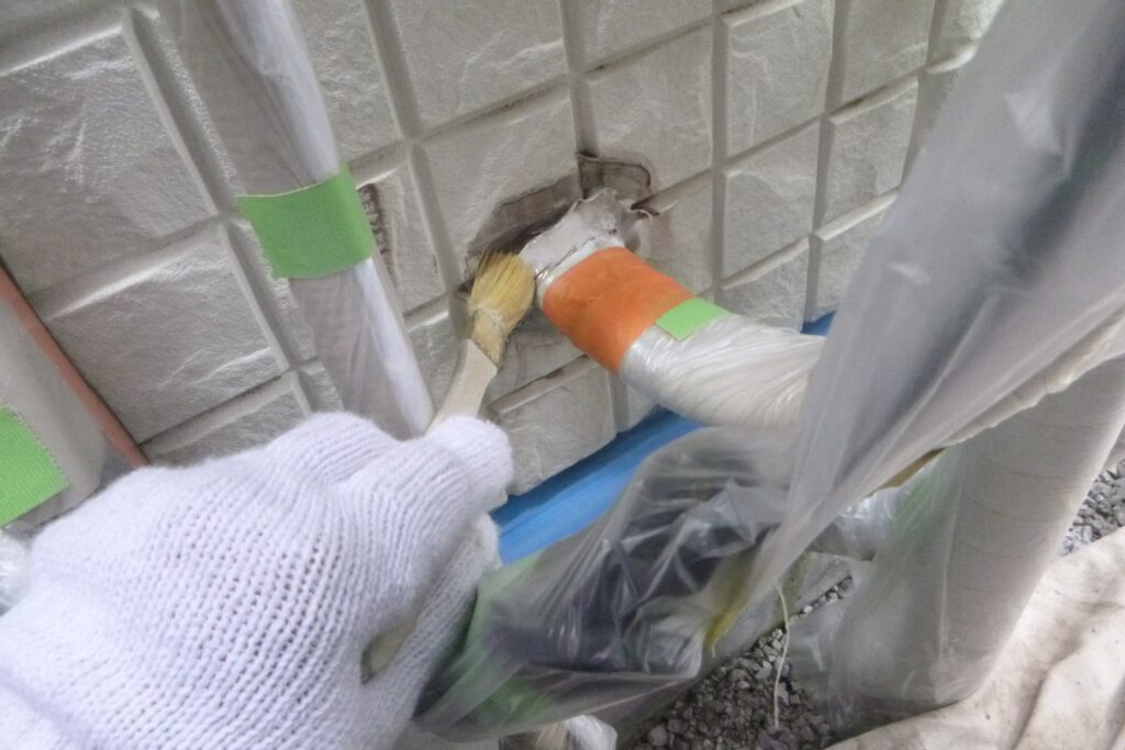 塗装の前にシリコン製シーリングが施工されている場所には専用のプライマーを塗っておきます。