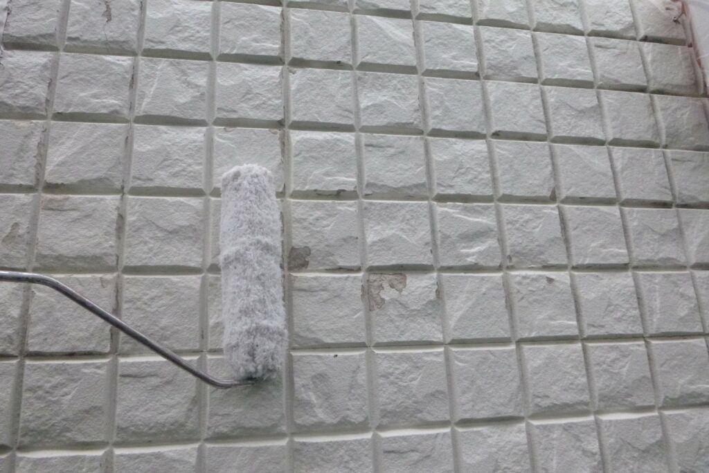シリコン部への下地処理が終わったらシーラーを使って下塗りです。