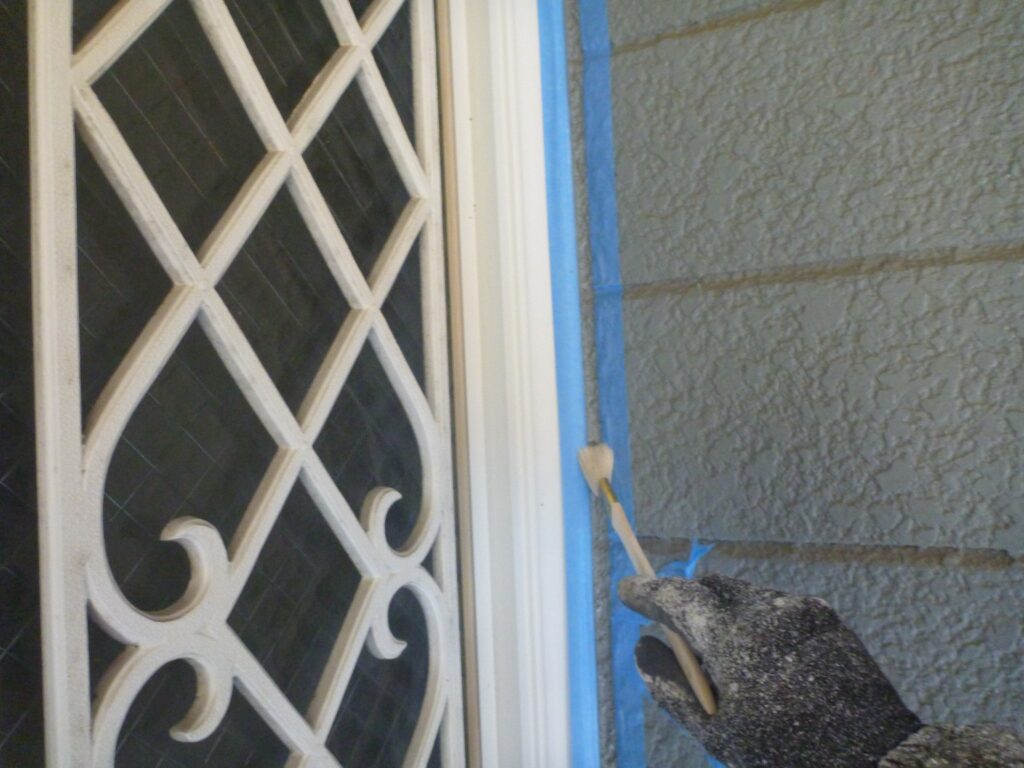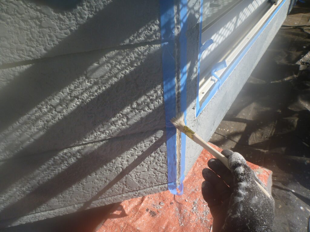 並行してマスキングテープを貼り、撤去と養生が終ったらプライマーを塗り込みます。