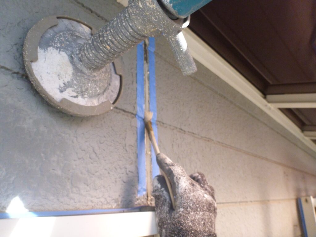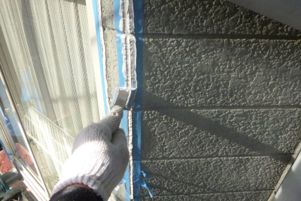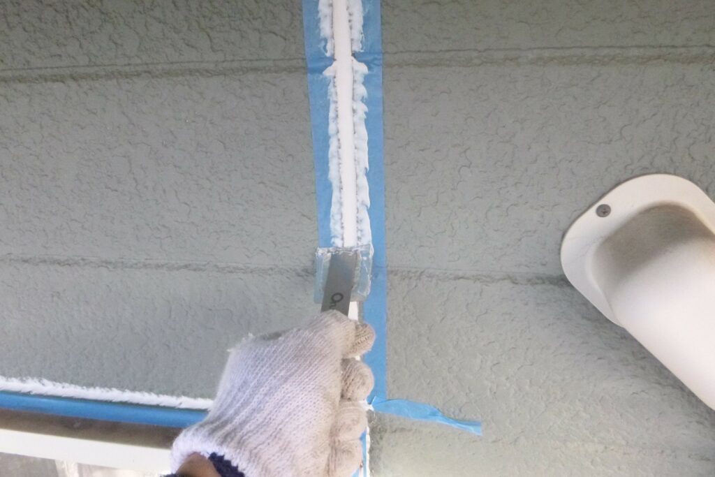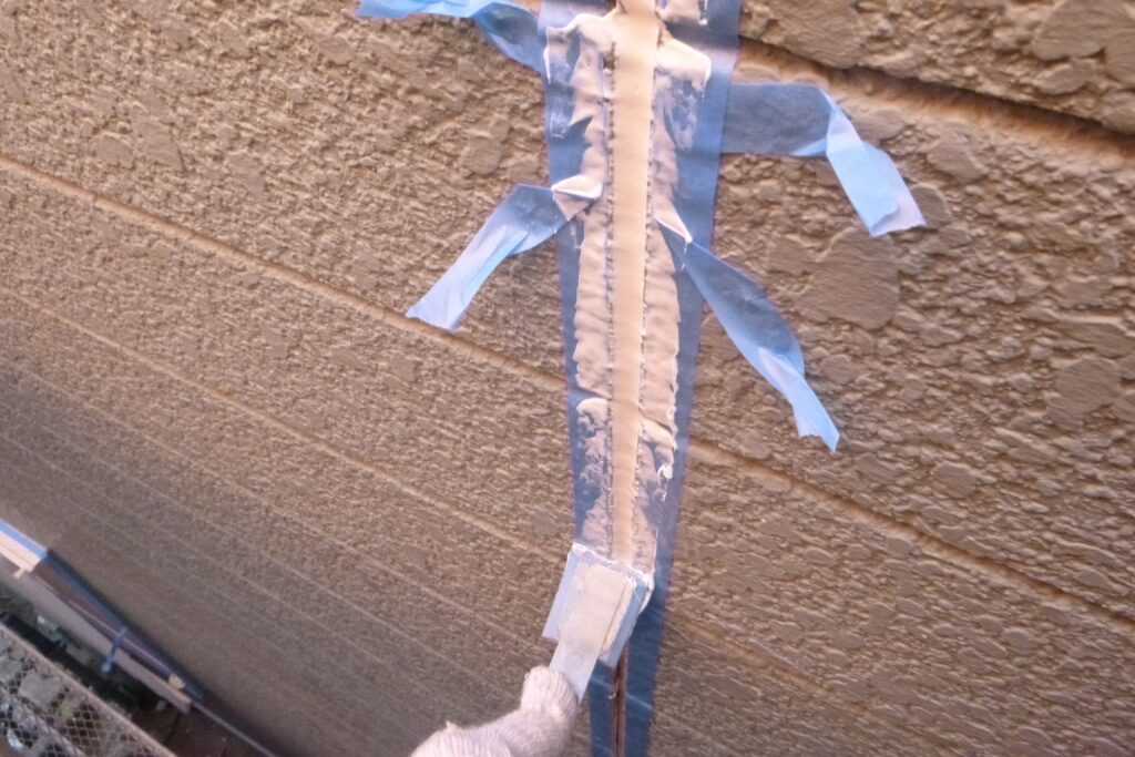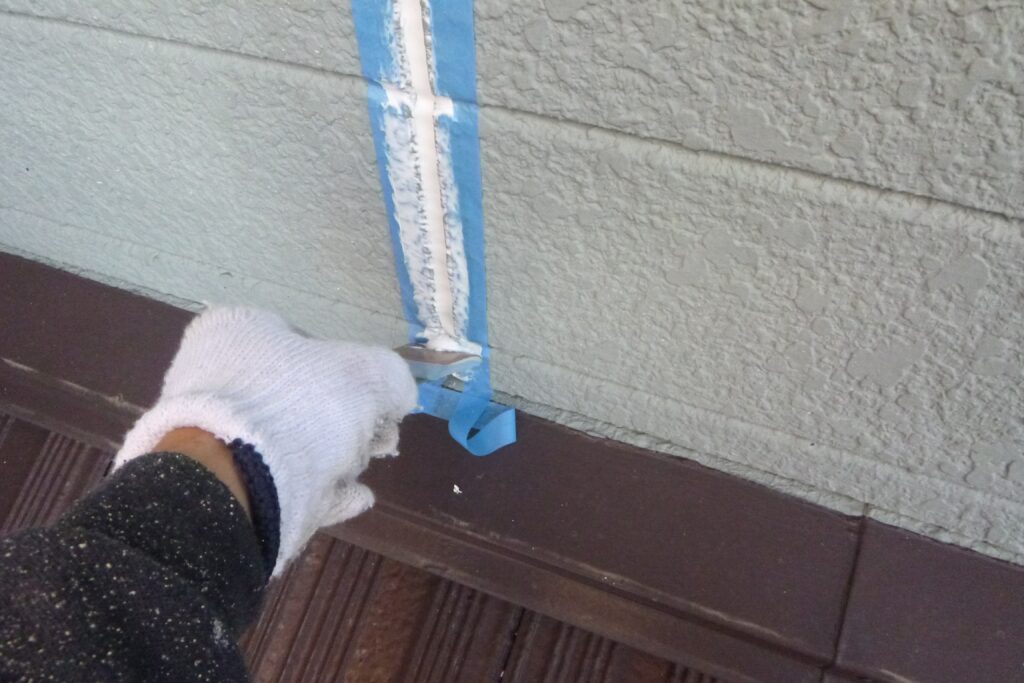 充填したシーリングをヘラで均してテープを剥がしたら完了です。