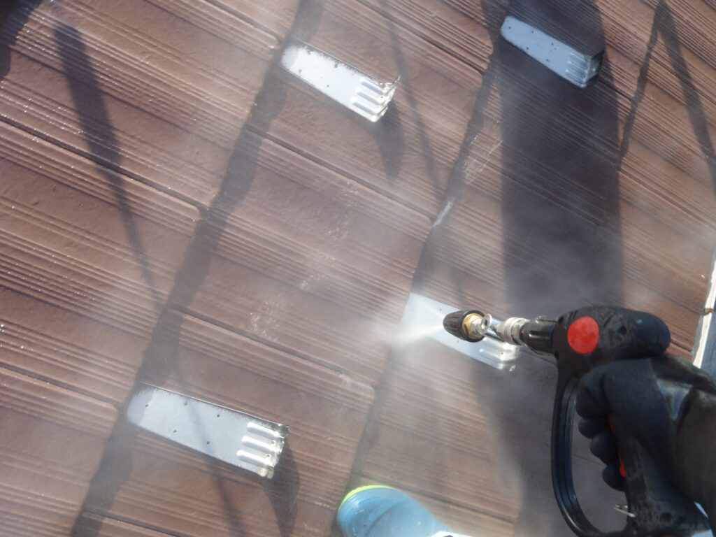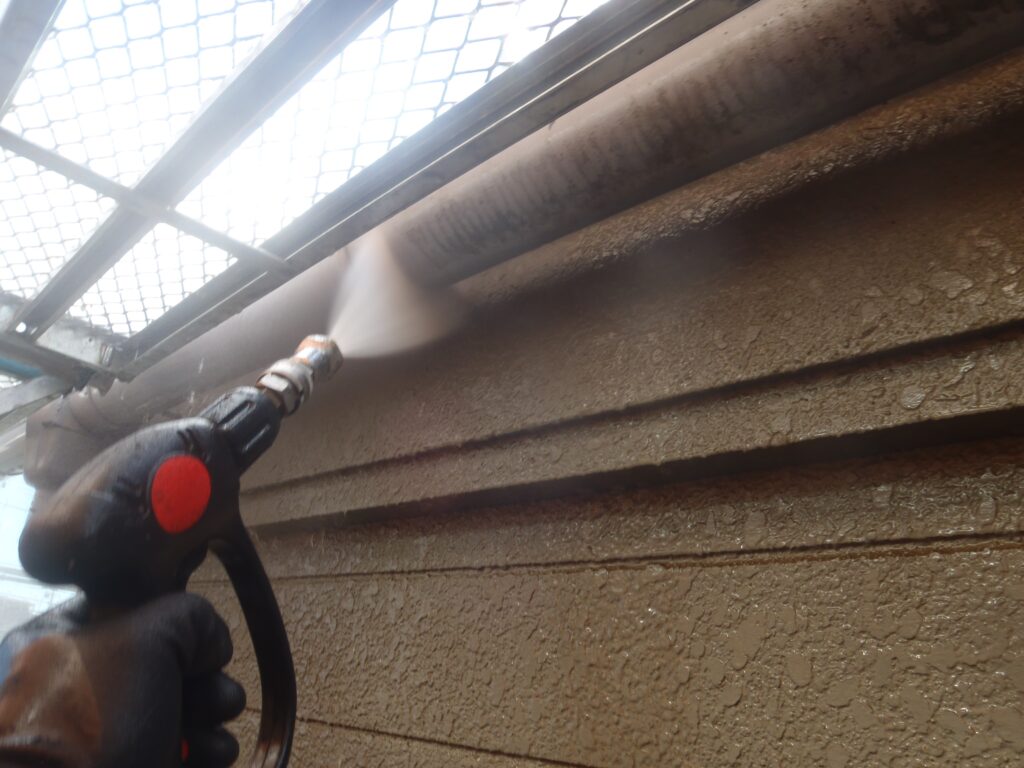 今回は高圧洗浄からシーリングの施工、付帯部、屋根の下塗りまでの工程です。