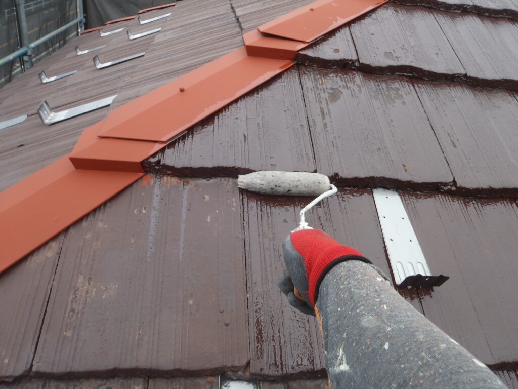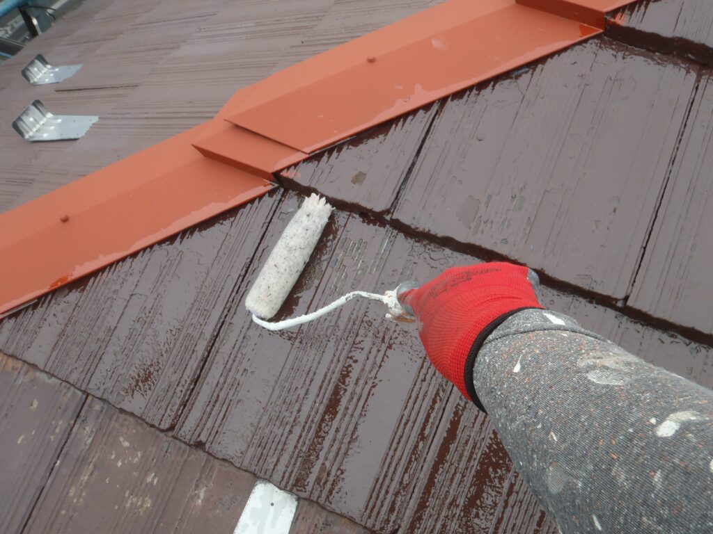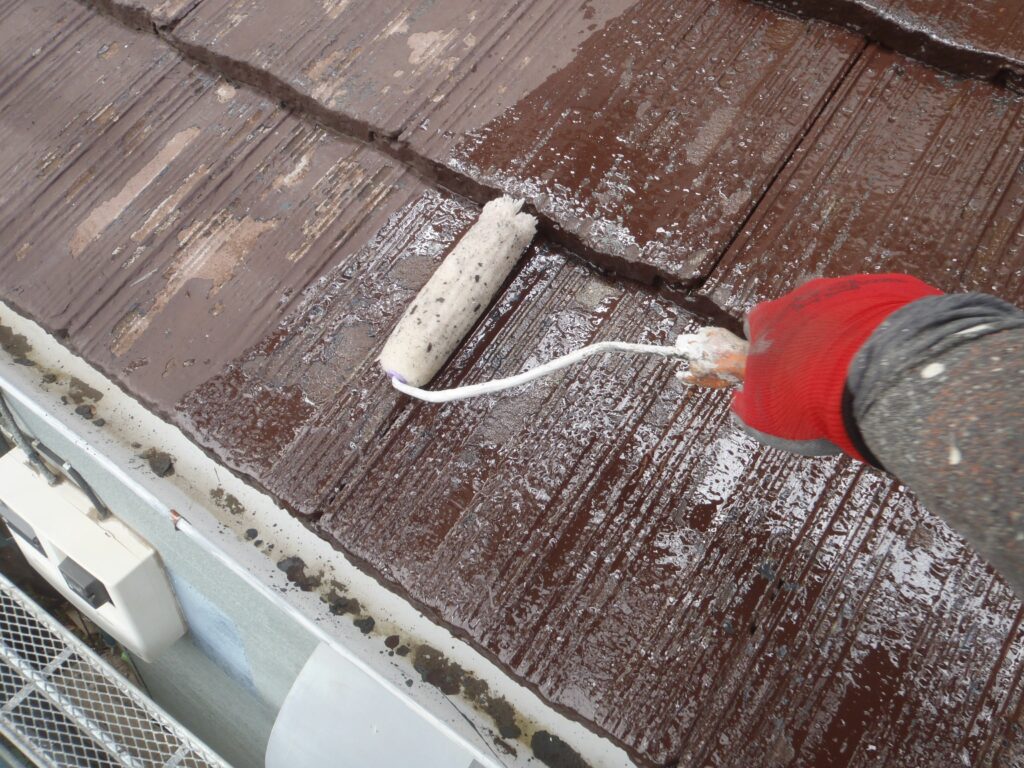 シーリングの翌日は付帯部への下塗りと屋根の下塗りです。