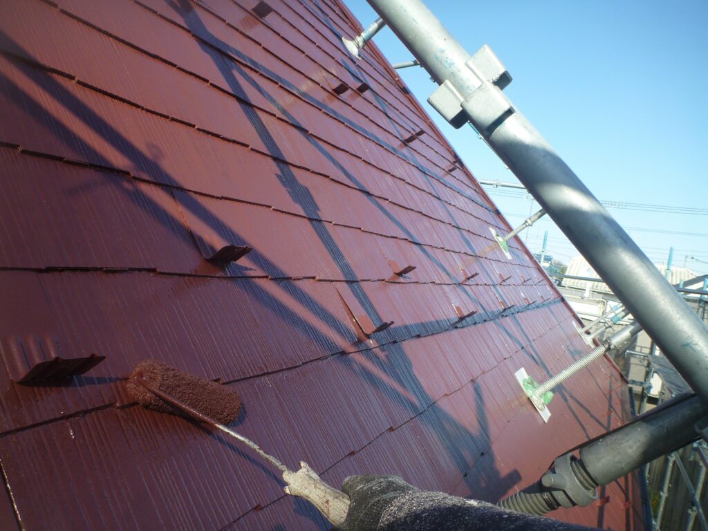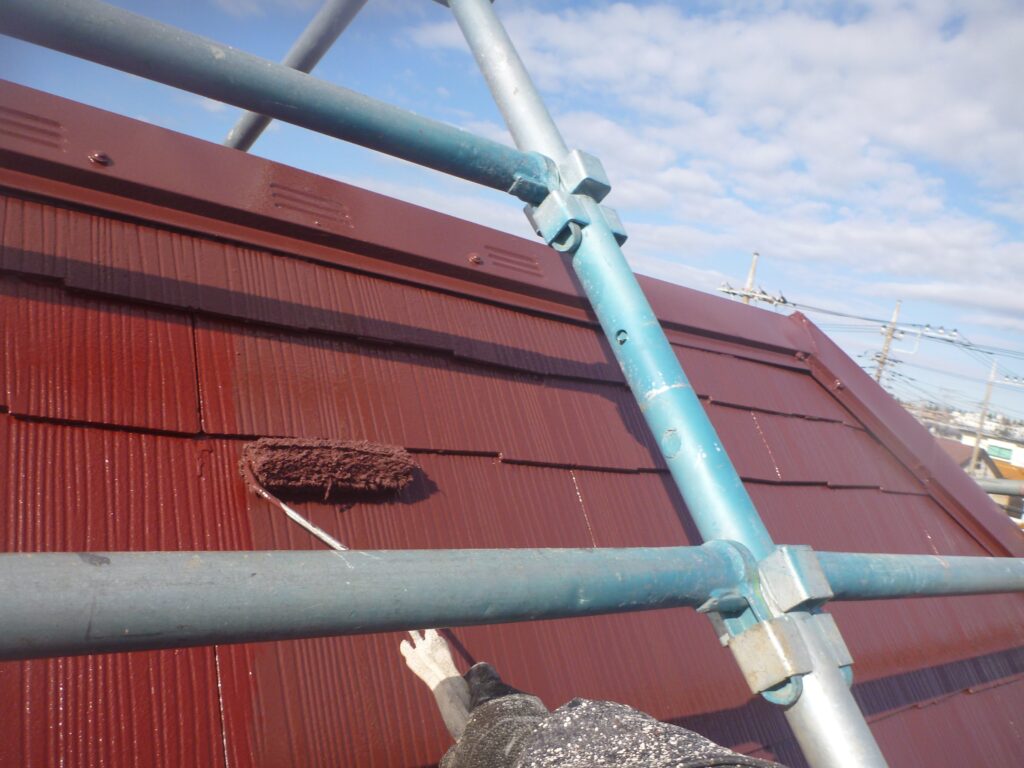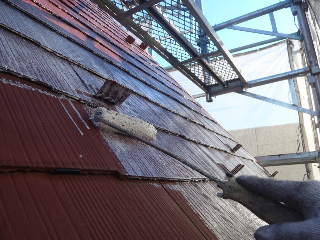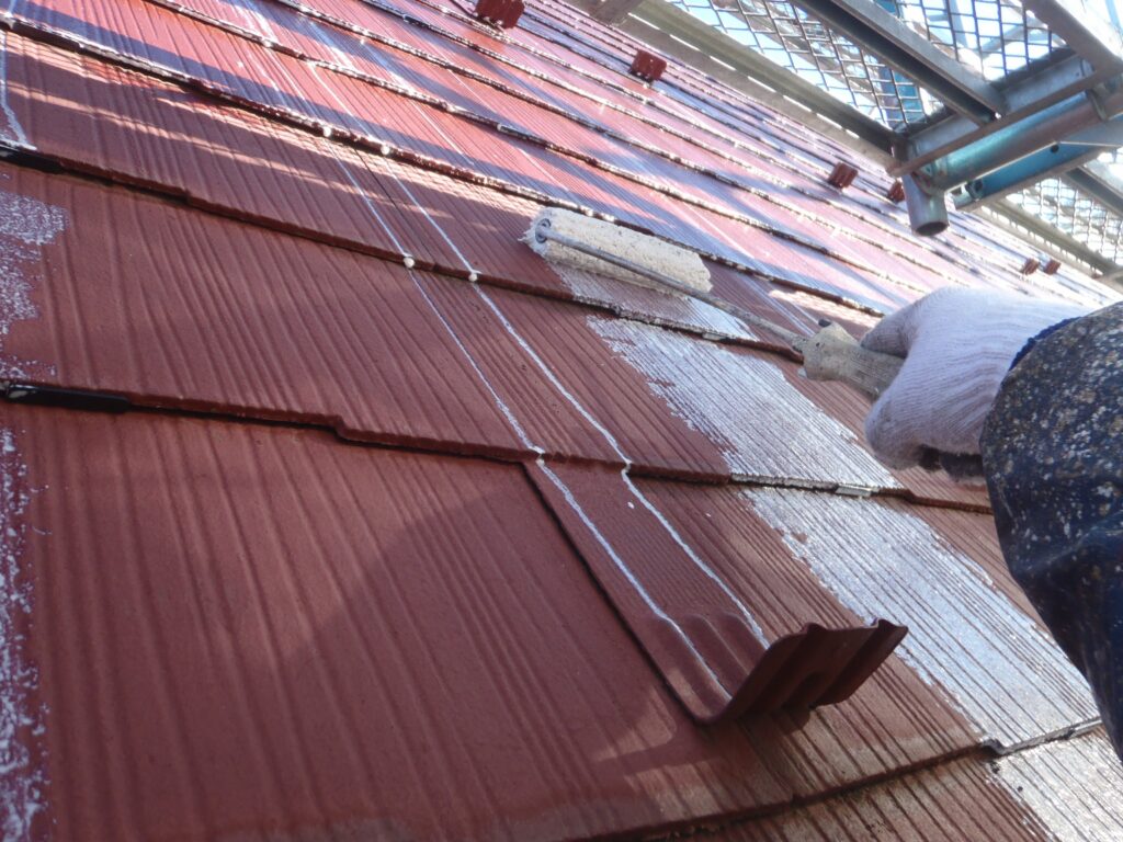 元々が赤い屋根なので、同系統の色で塗装を行います。
