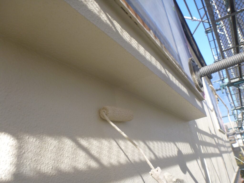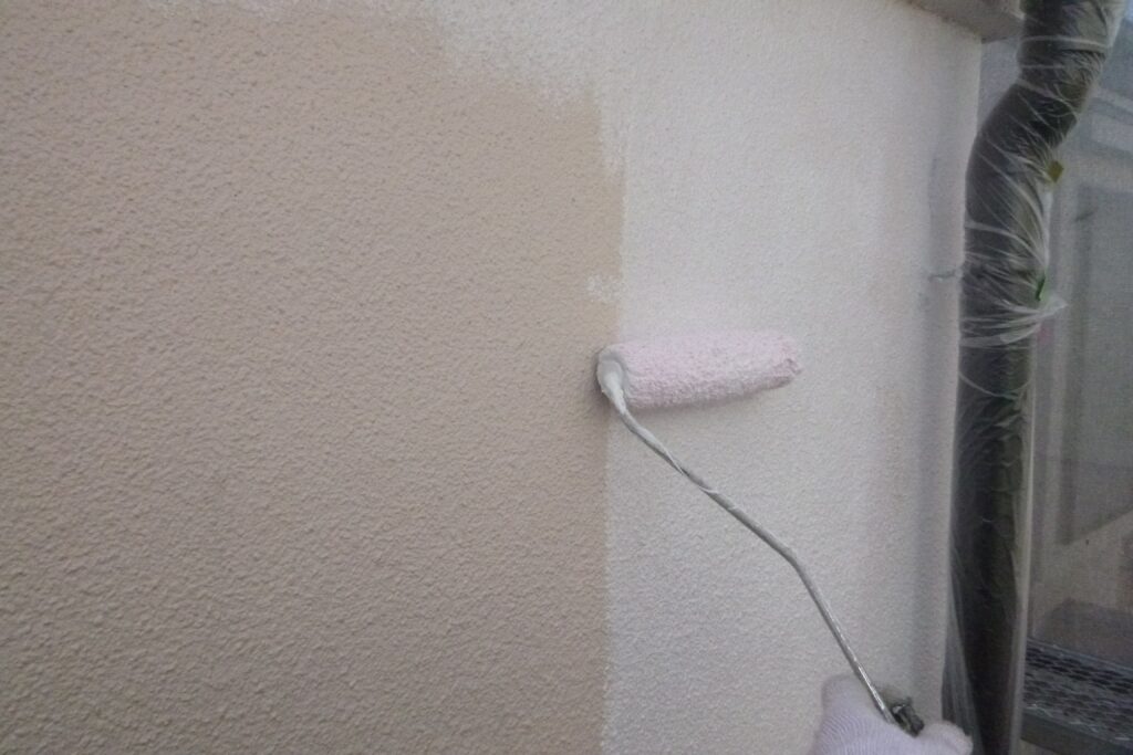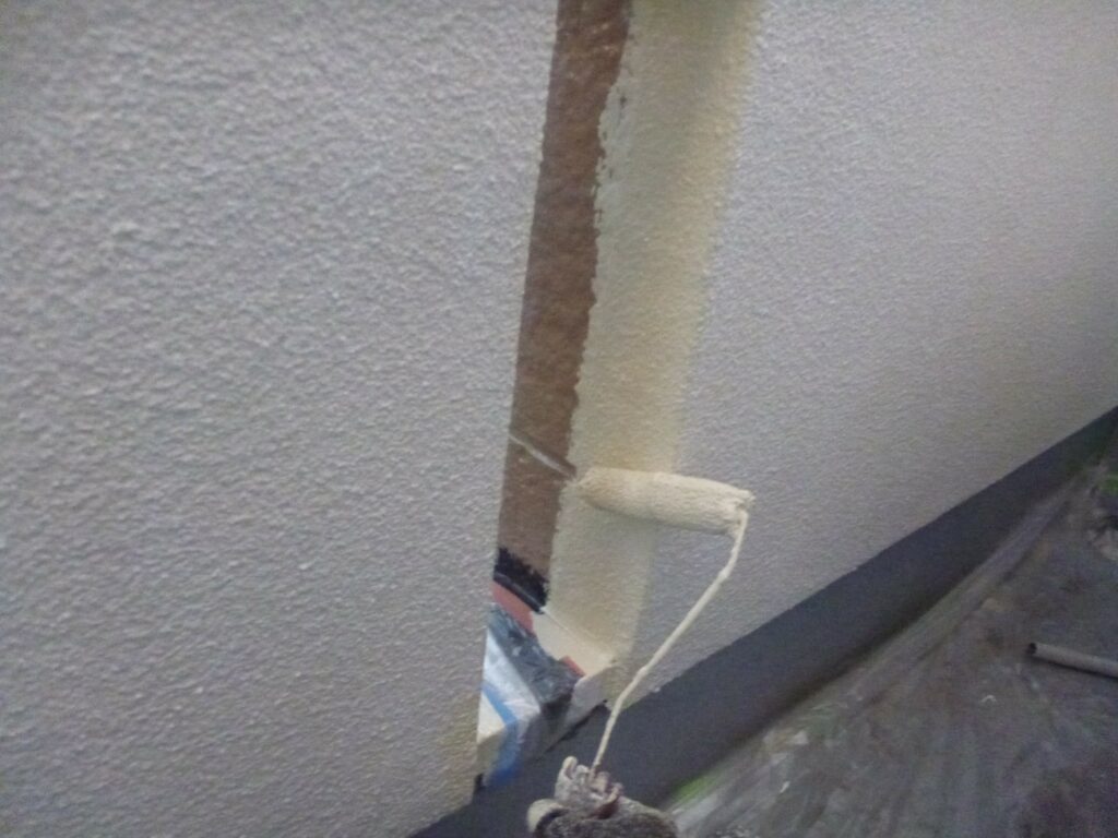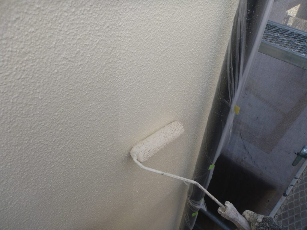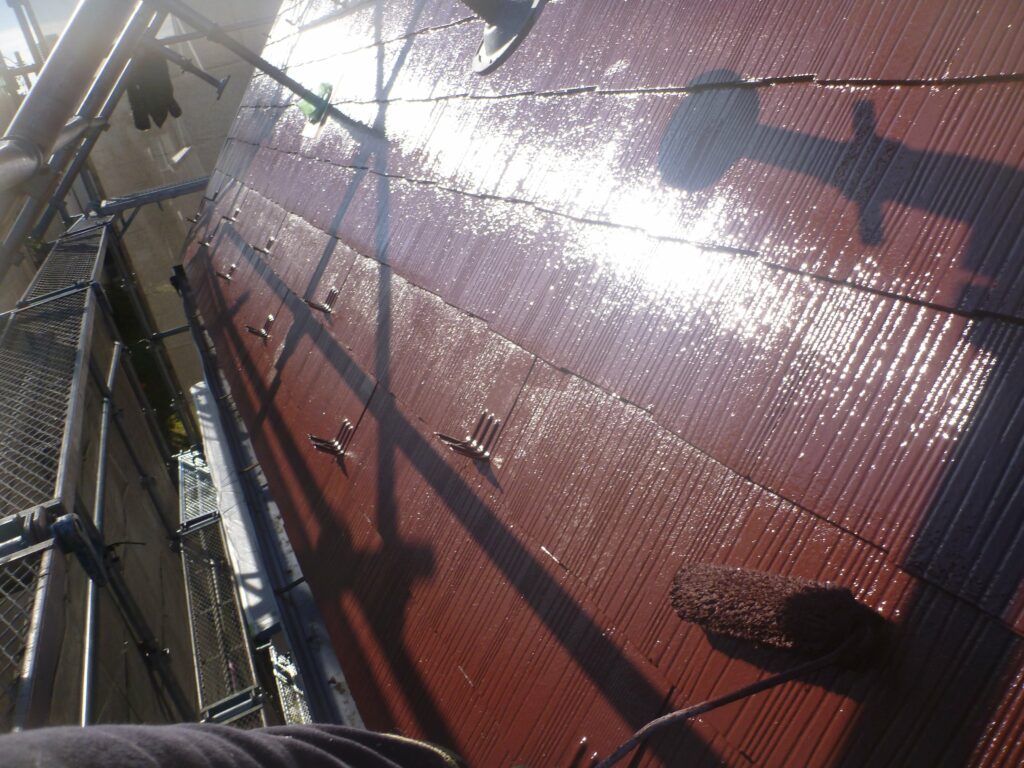 滴ってきている塗料もローラーで取りながら全体を塗装します。