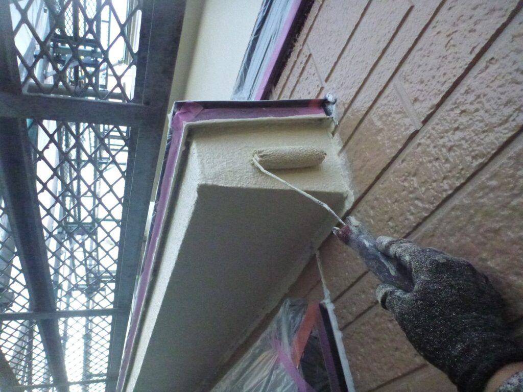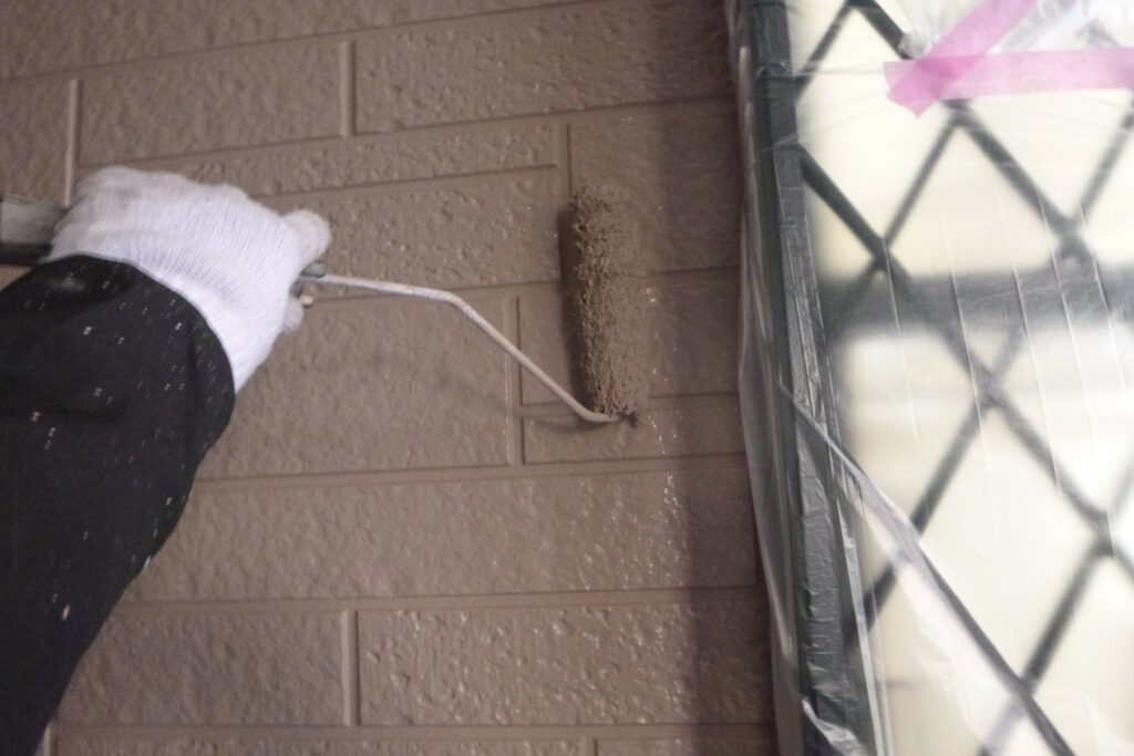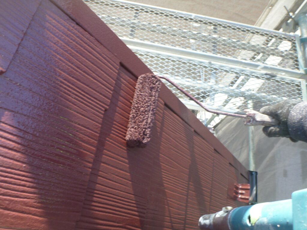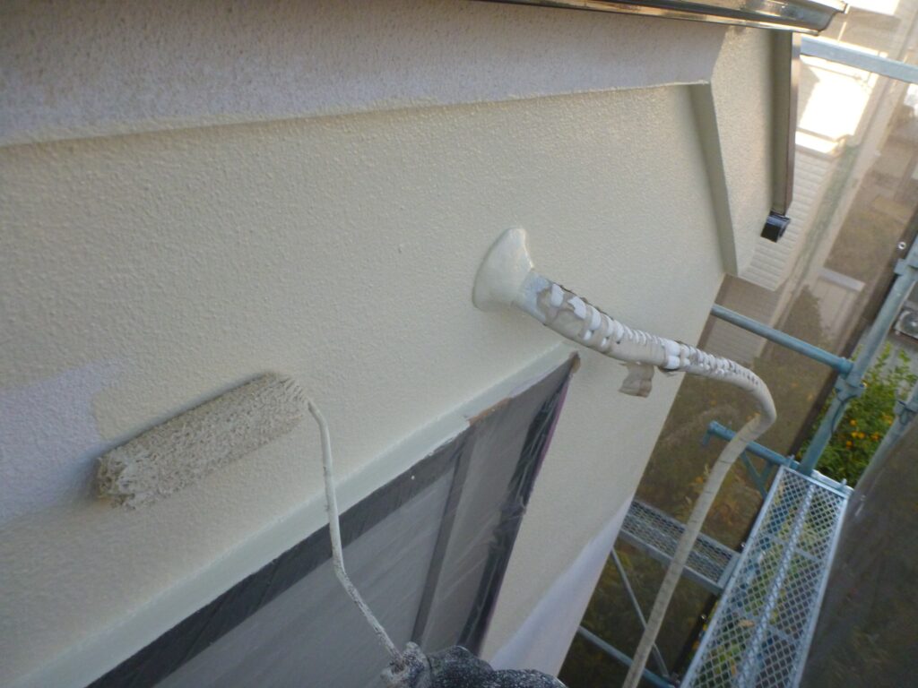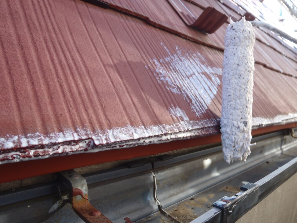 滴ってきている塗料もローラーで取りながら全体を塗装します。