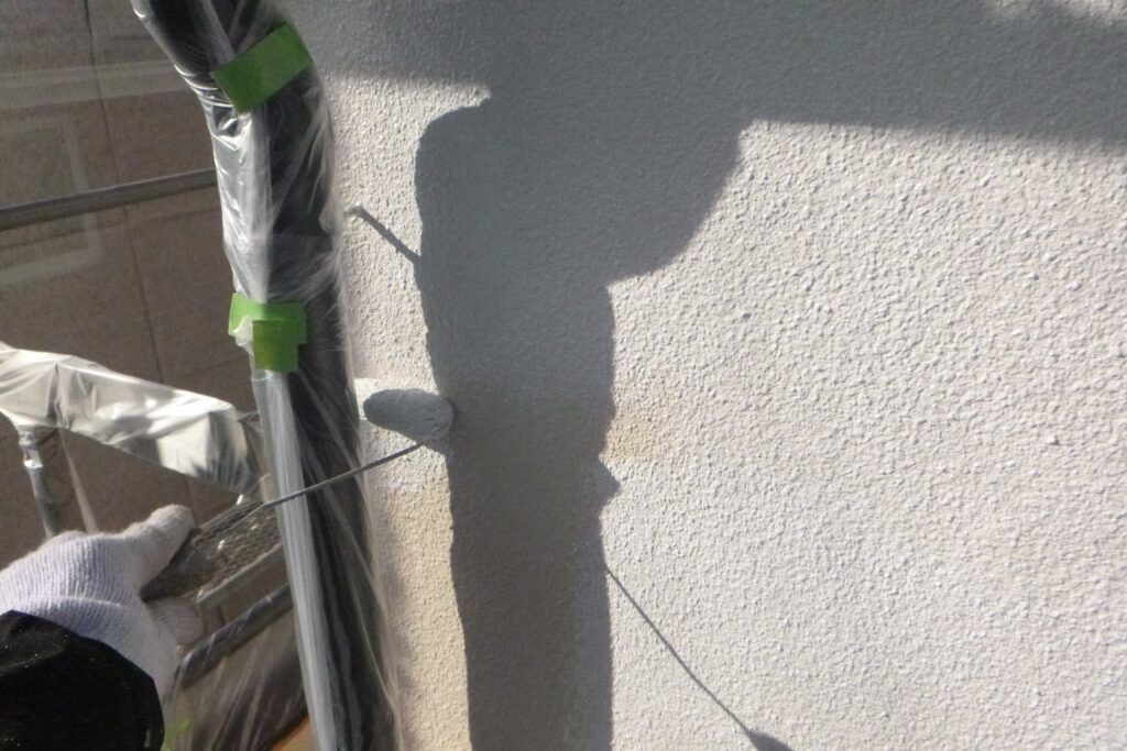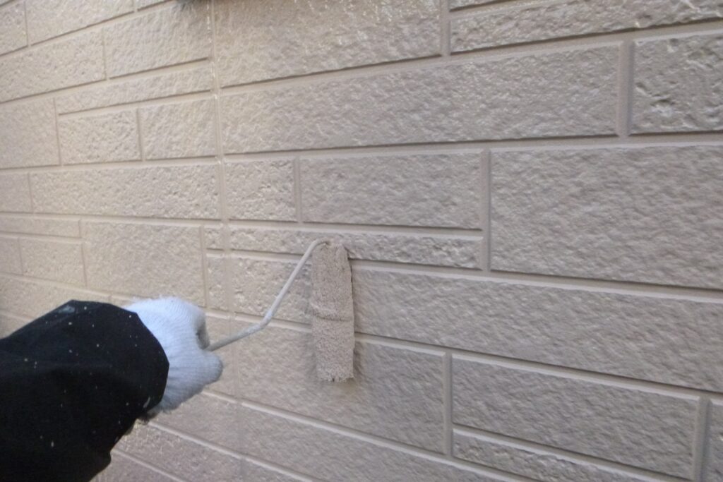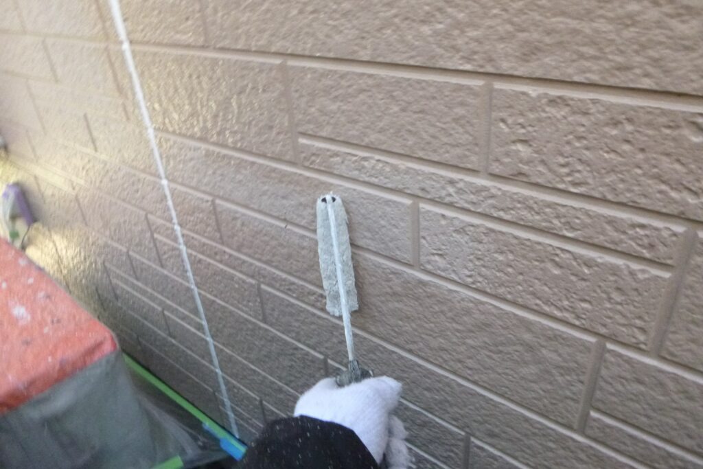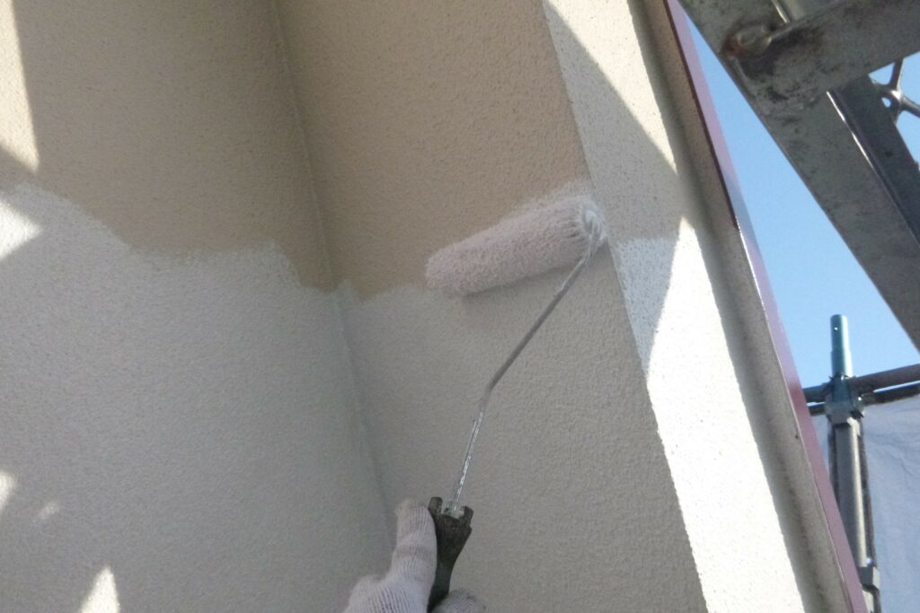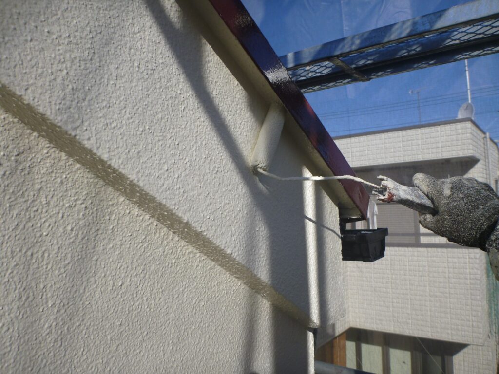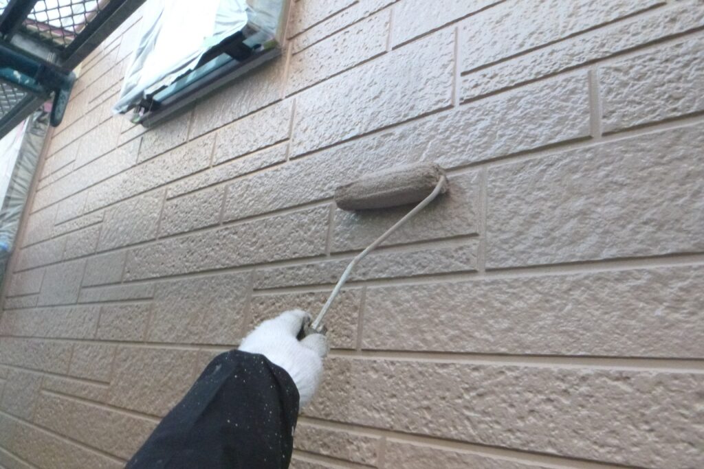 モルタル外壁は微弾性のフィラーを使って下塗りです。