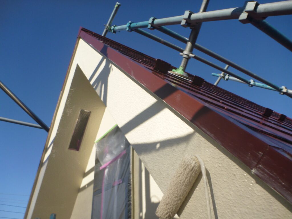 事前に足場を戻しておきたいところは上塗りを終えています。