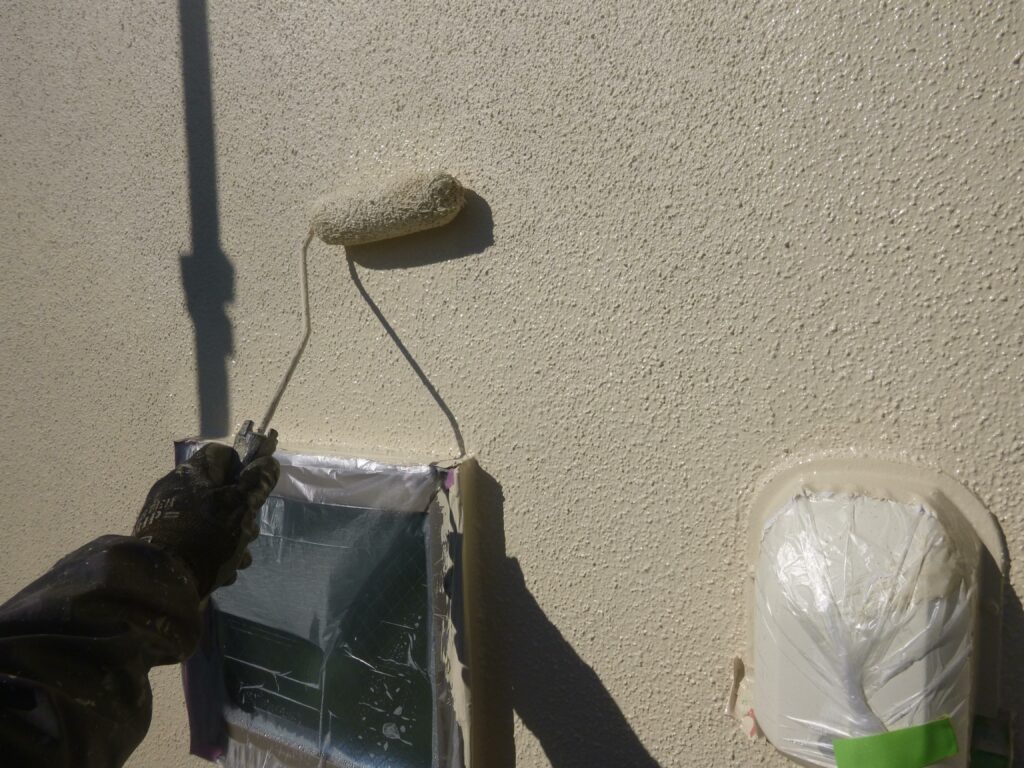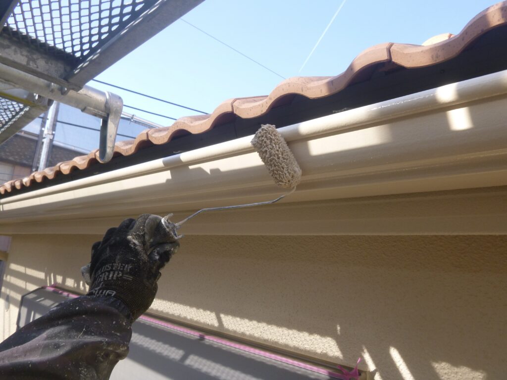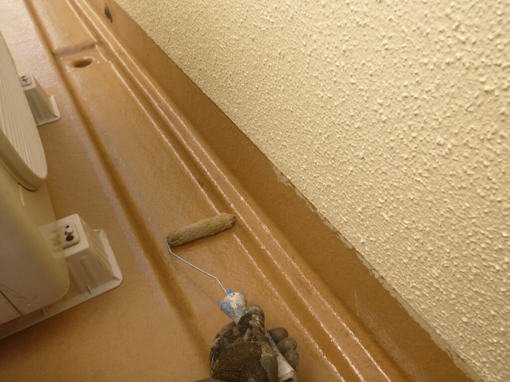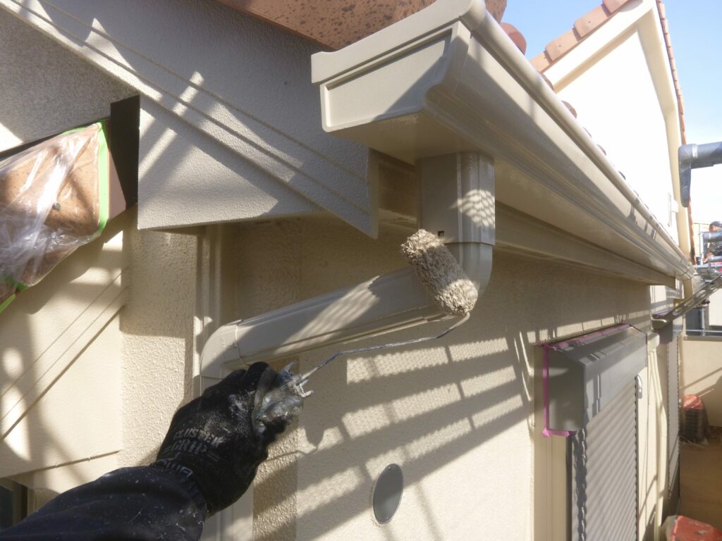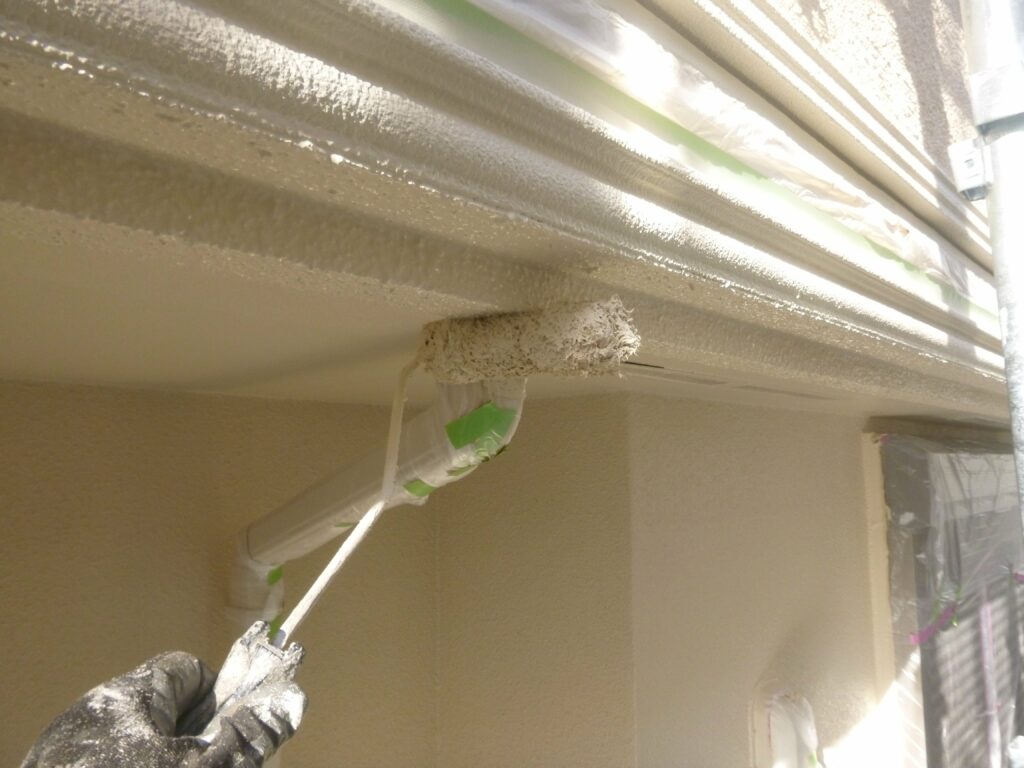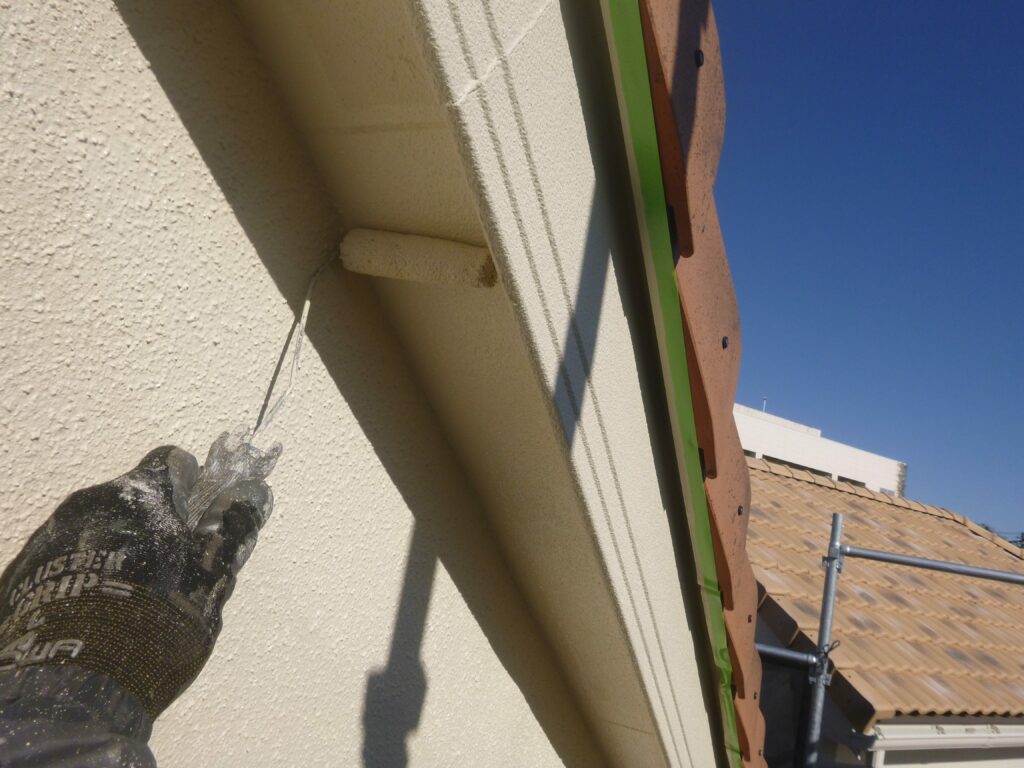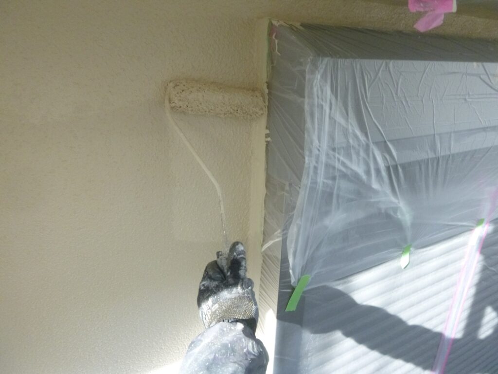 外壁の塗装は完了しているので塗料がつかないように注意して塗装します。