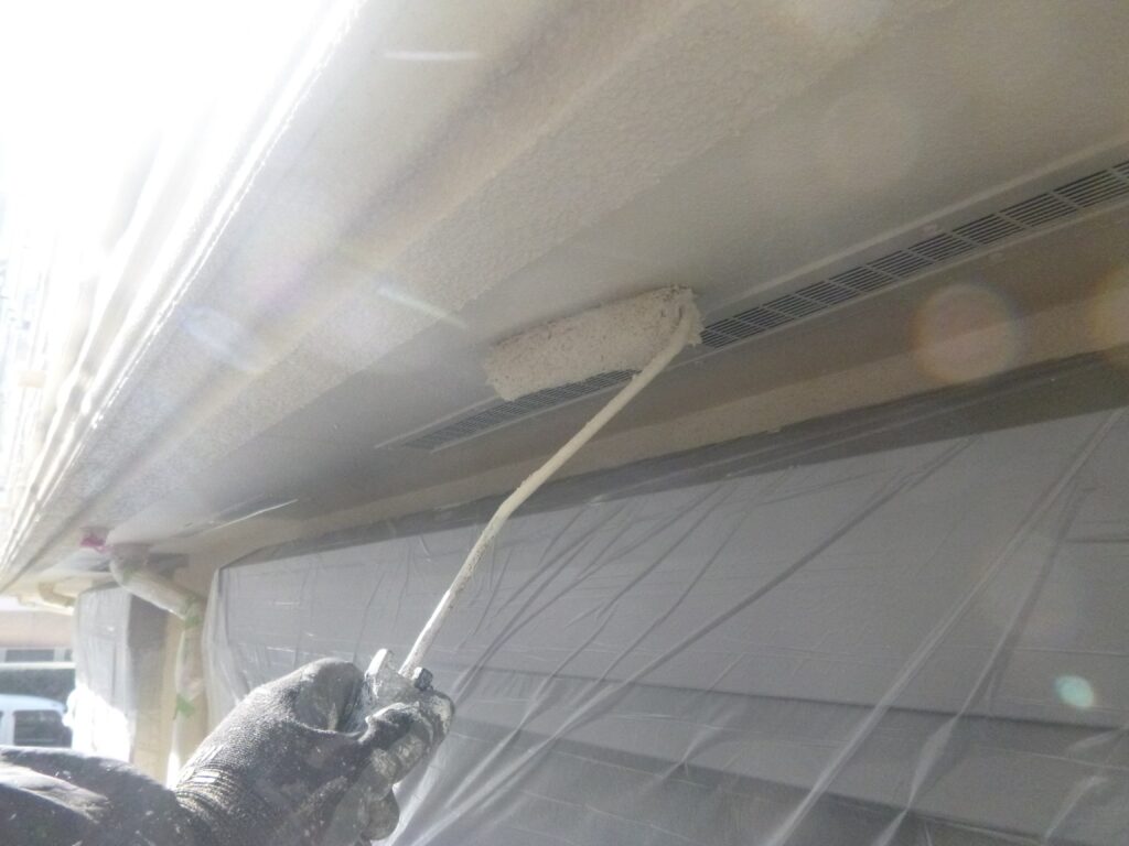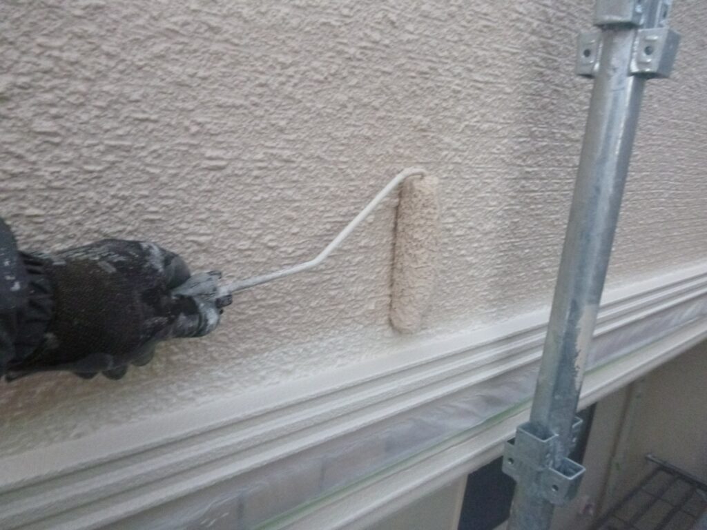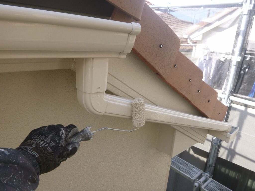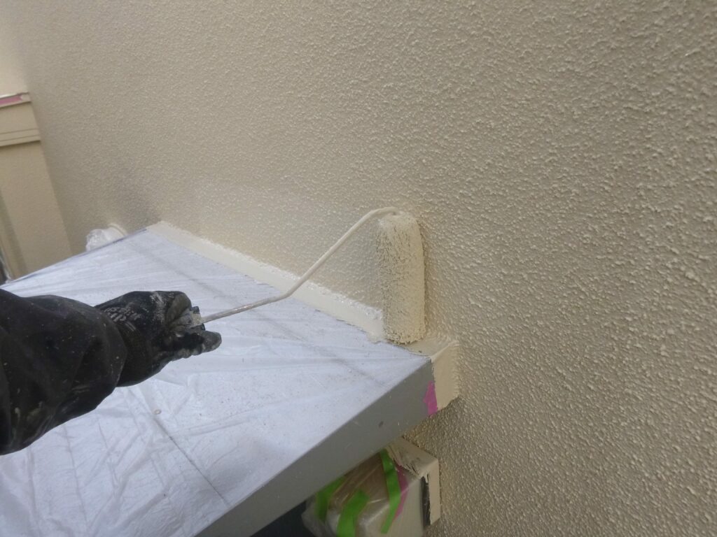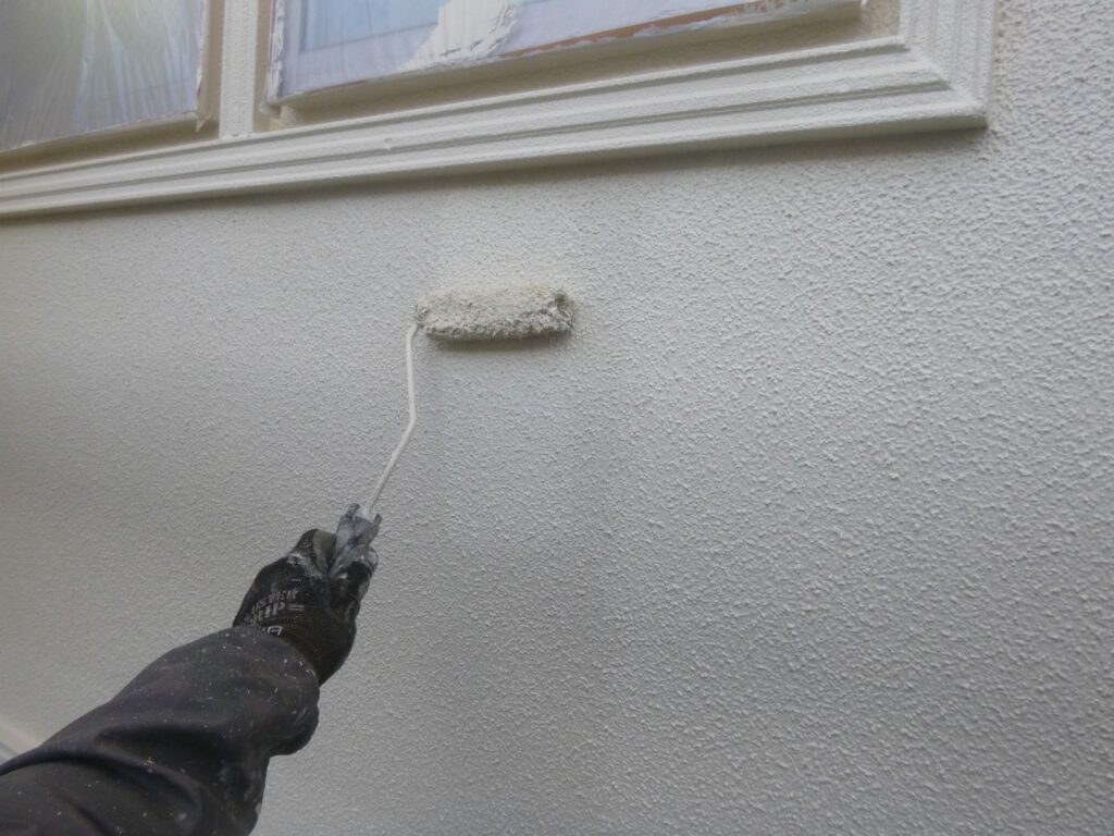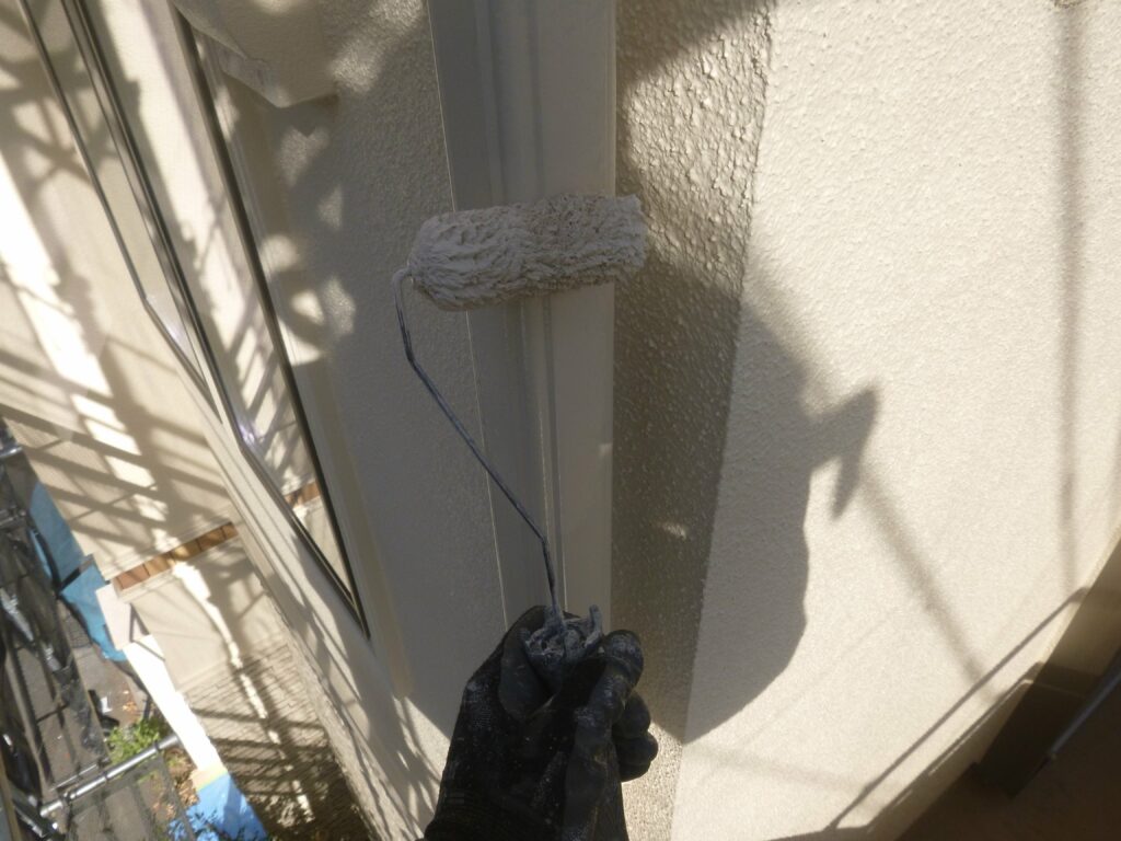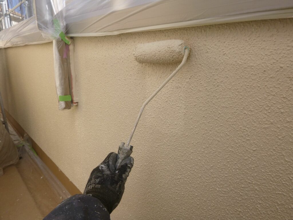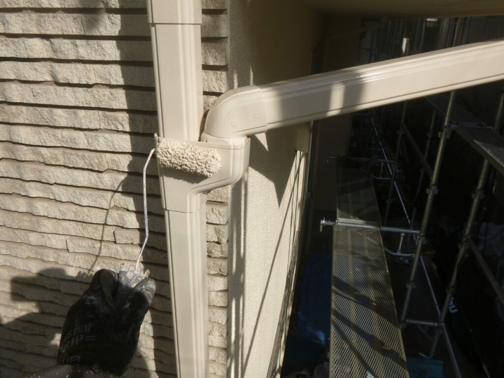 外壁の塗装は完了しているので塗料がつかないように注意して塗装します。