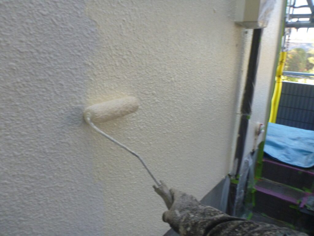 中塗り、上塗りで同じ塗料を使って機能性に優れた塗膜をしっかりと作っておきます。