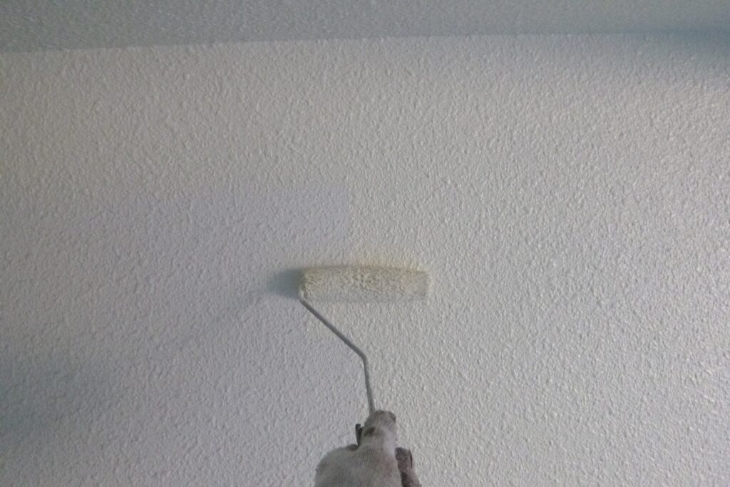 真っ白になった外壁にクリーム色の塗料で色を付けます。