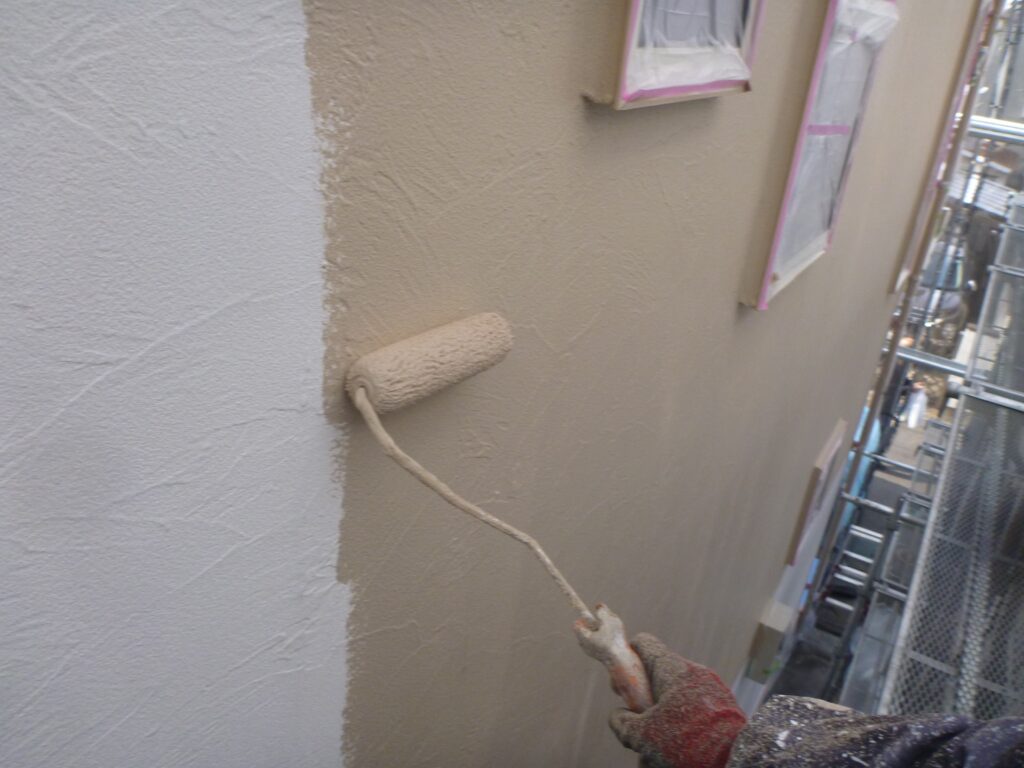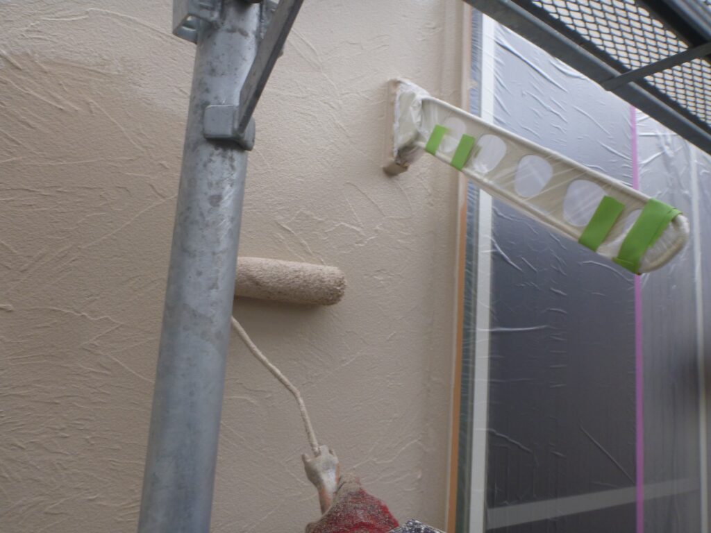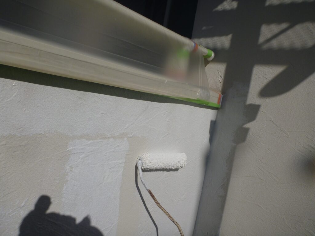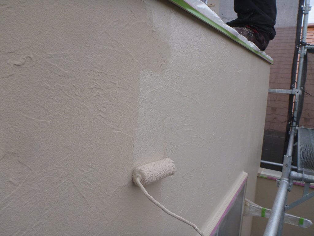 養生までが終わっているので、外壁の塗装3工程を進めさせていただきました。