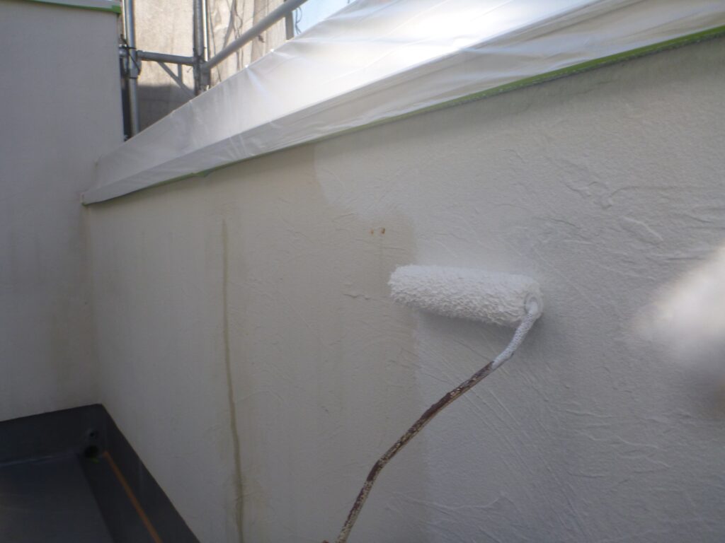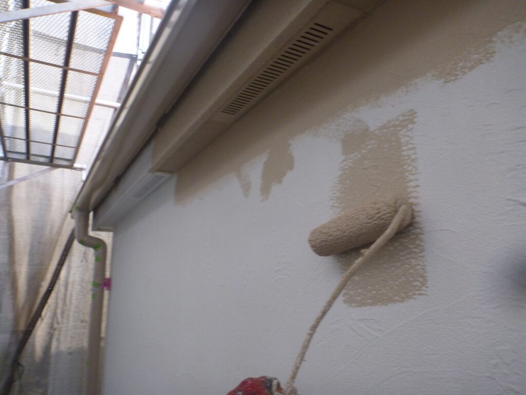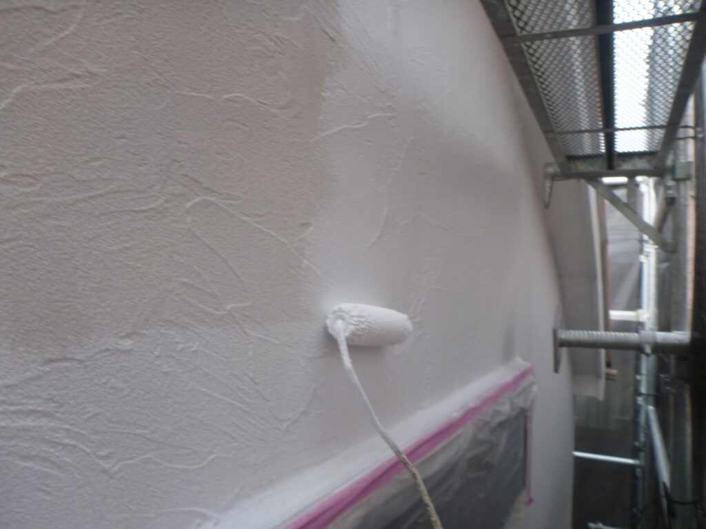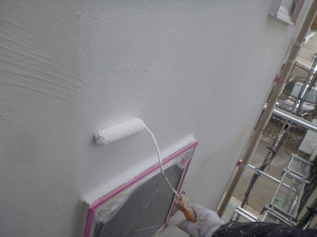 養生までが終わっているので、外壁の塗装3工程を進めさせていただきました。