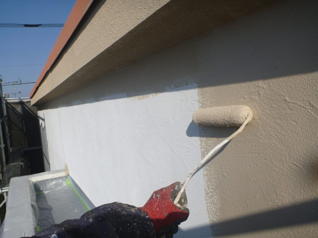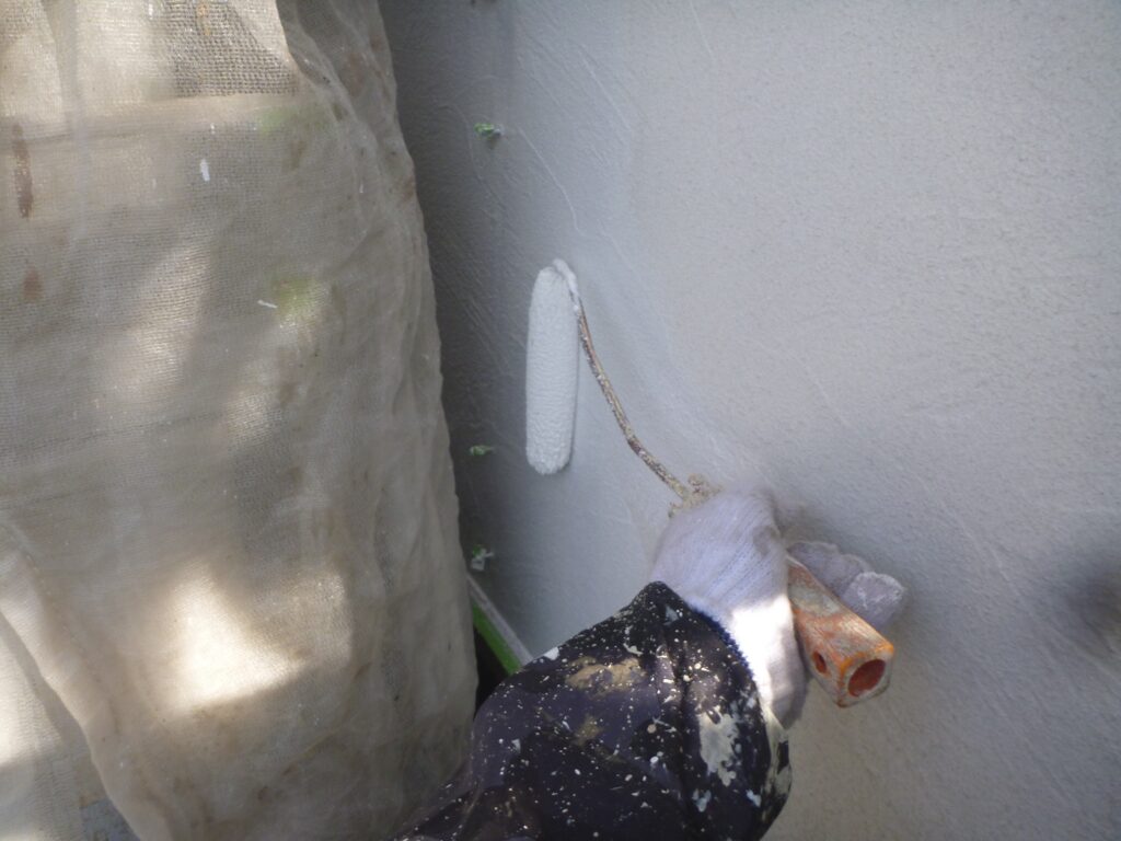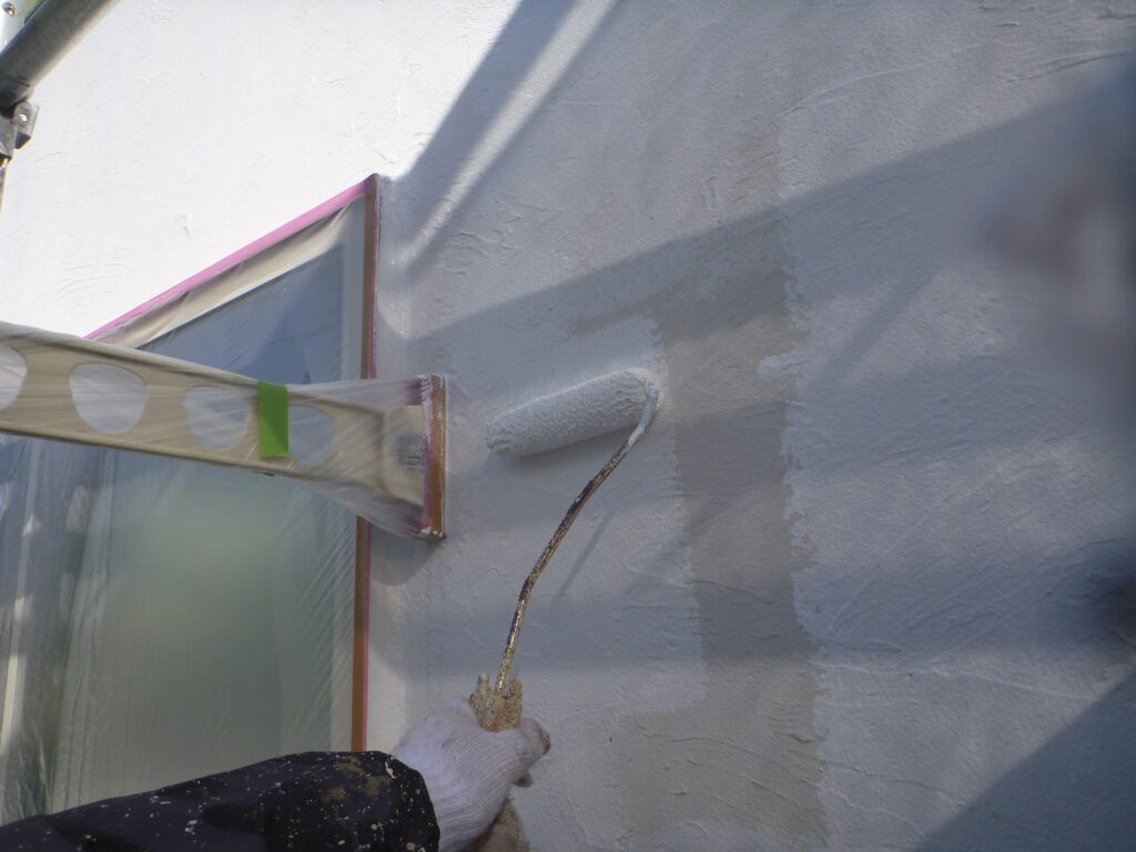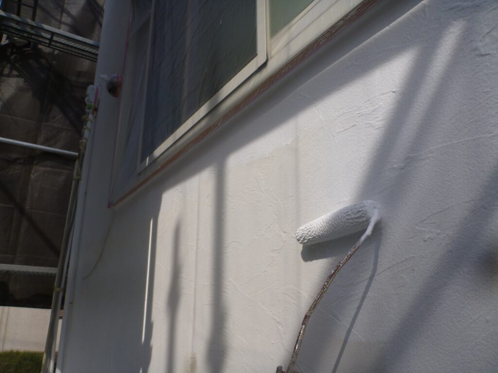 下塗りをした外壁に機能性塗料を塗装していきます。