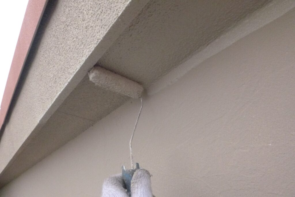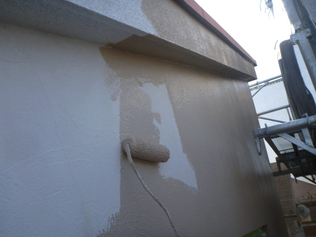 白くなった外壁をお客様に選んでいただいた色の塗料で塗装します。