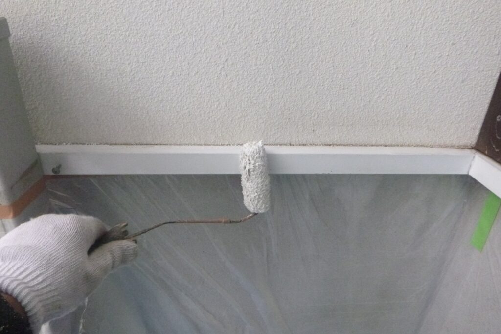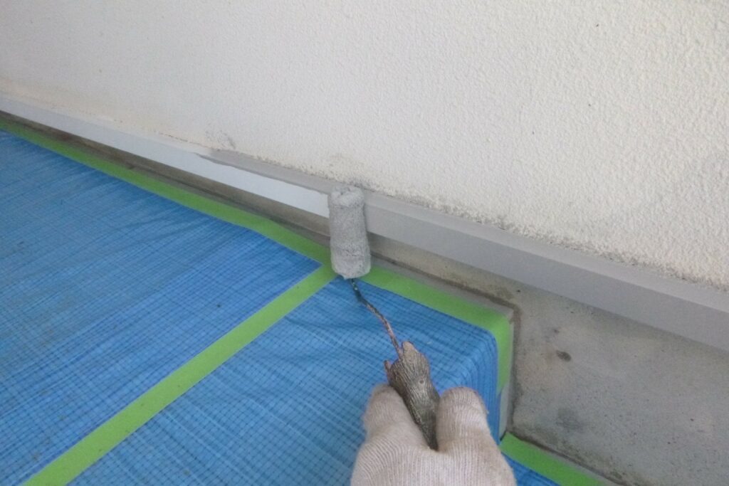 養生を剥がしていきながら塗装を行うことで、塗装後に足跡を付けたりしないで