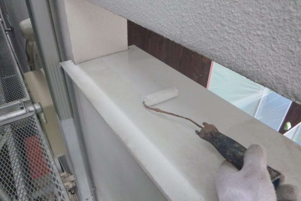 外壁は窓周りなど養生を進めて次回の外壁塗装に備えます。