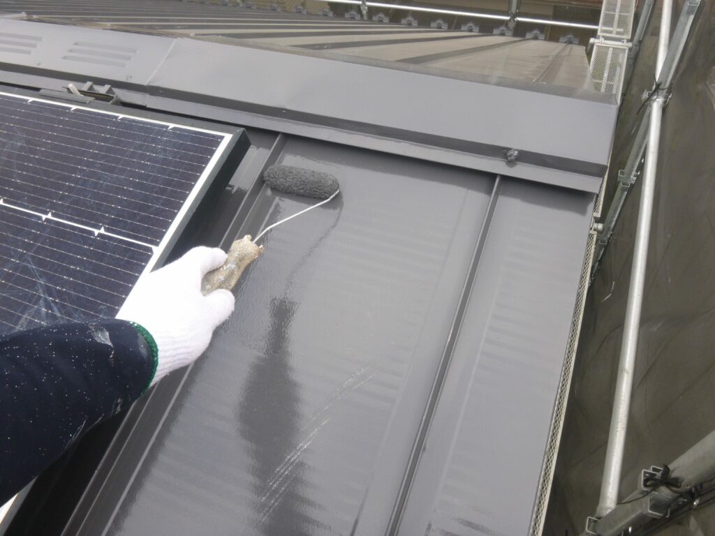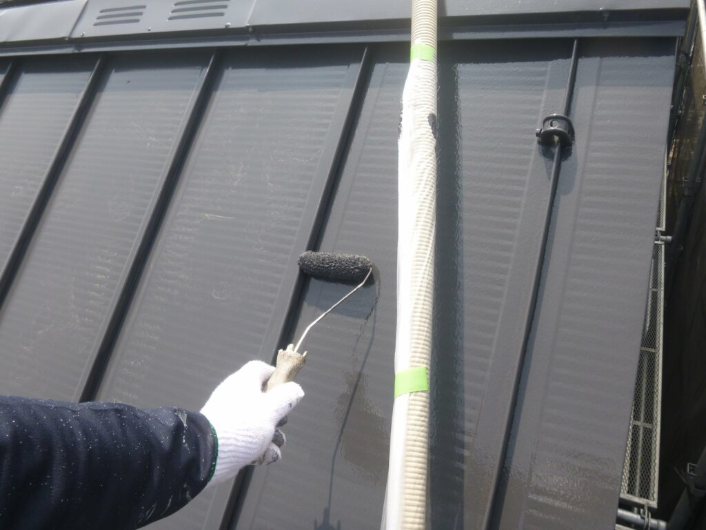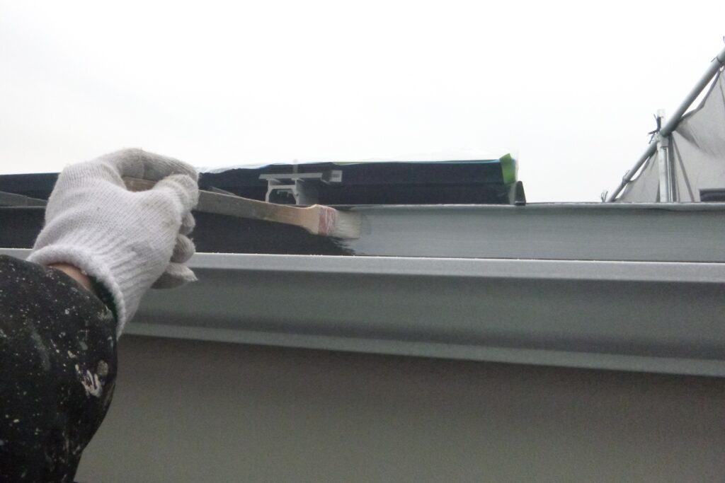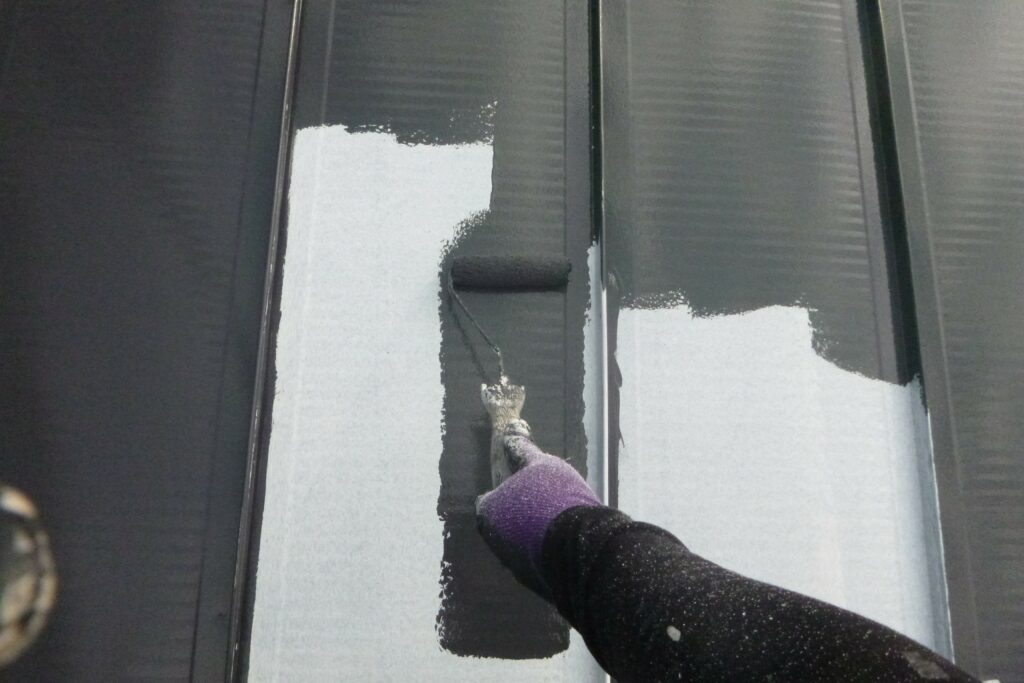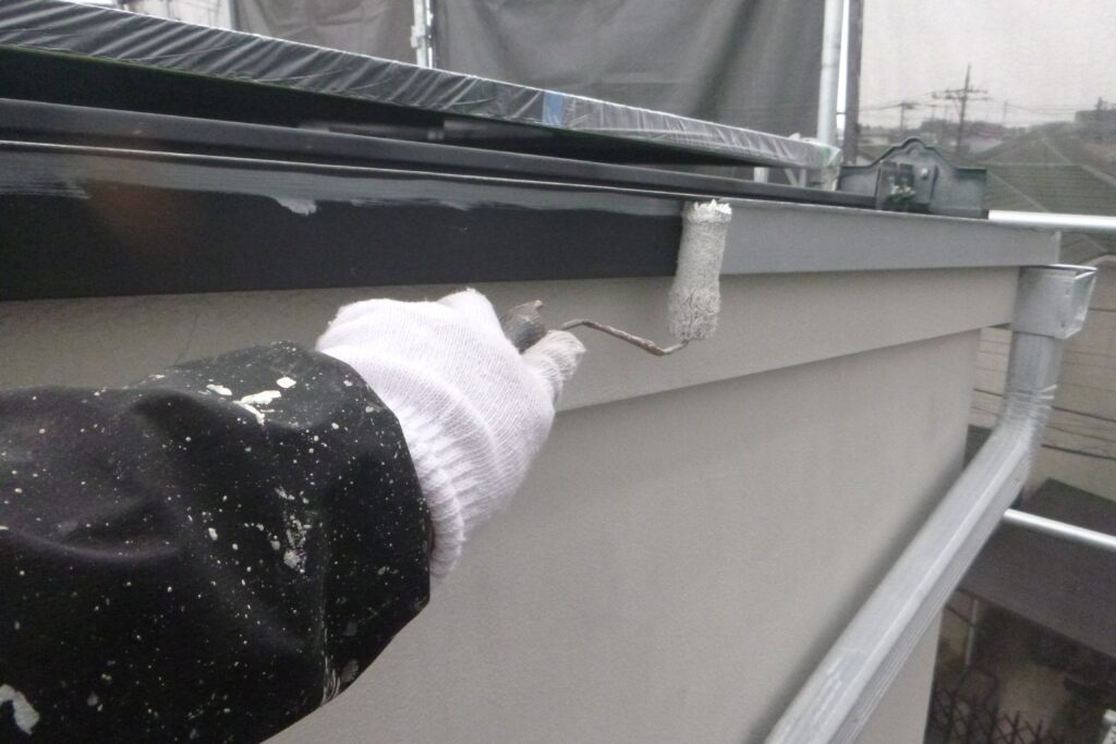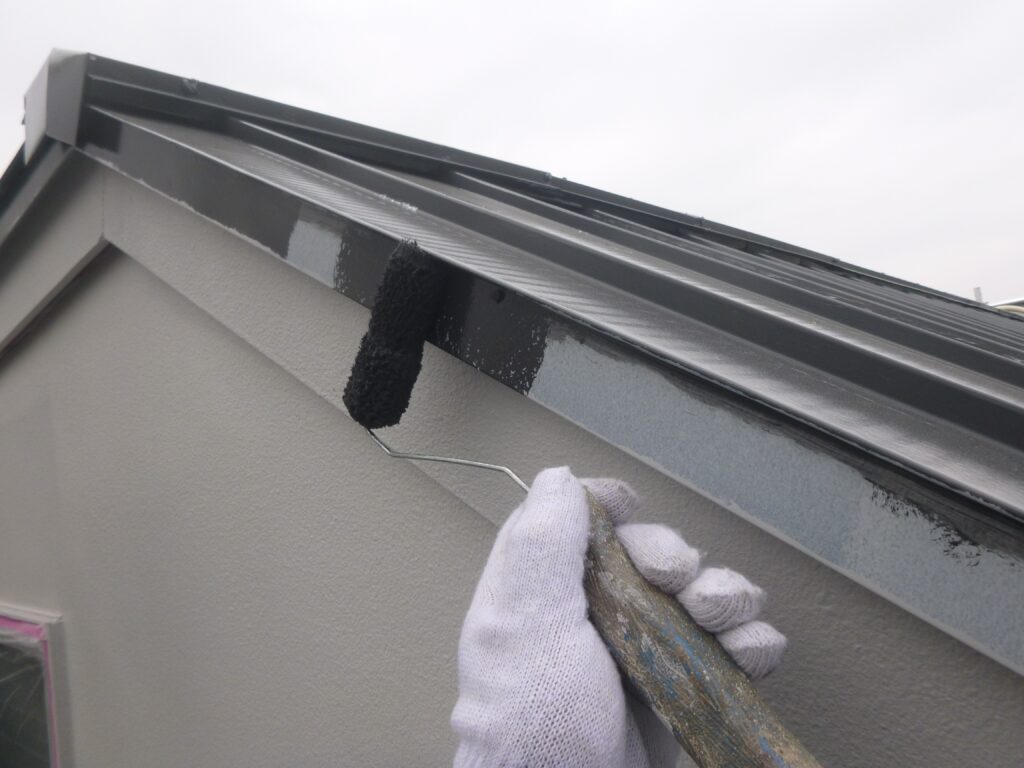 翌日は付帯部の中塗りと屋根の中塗りです。