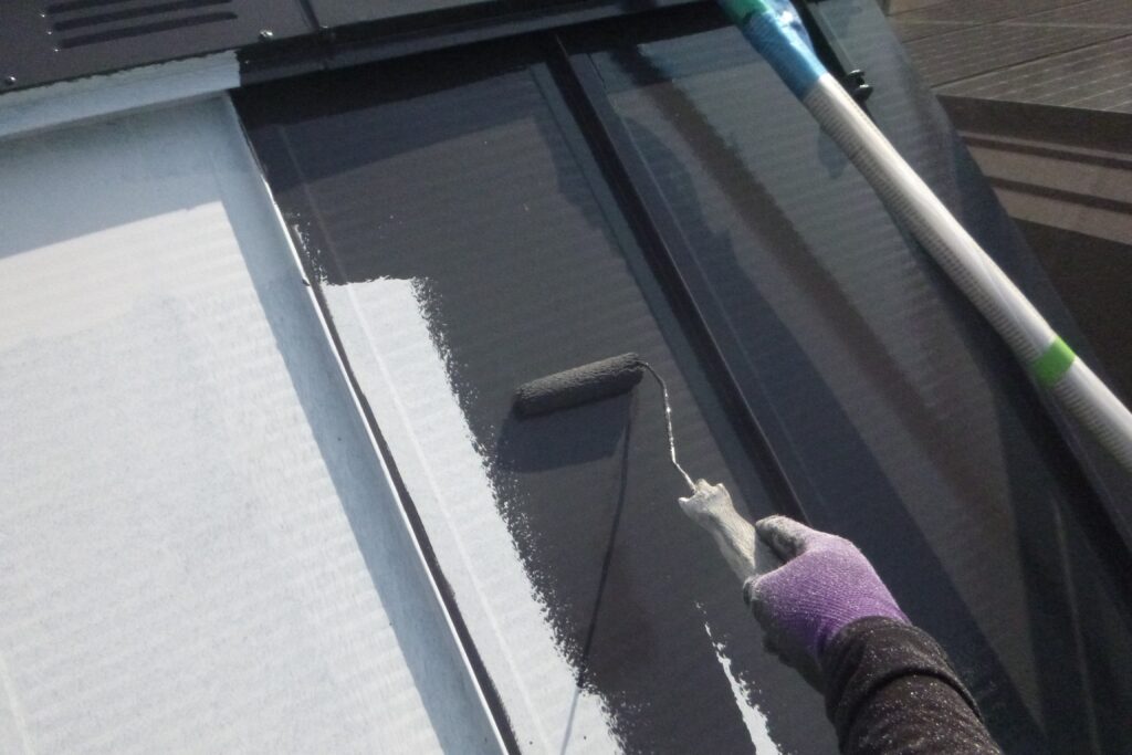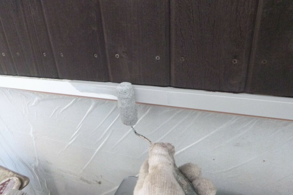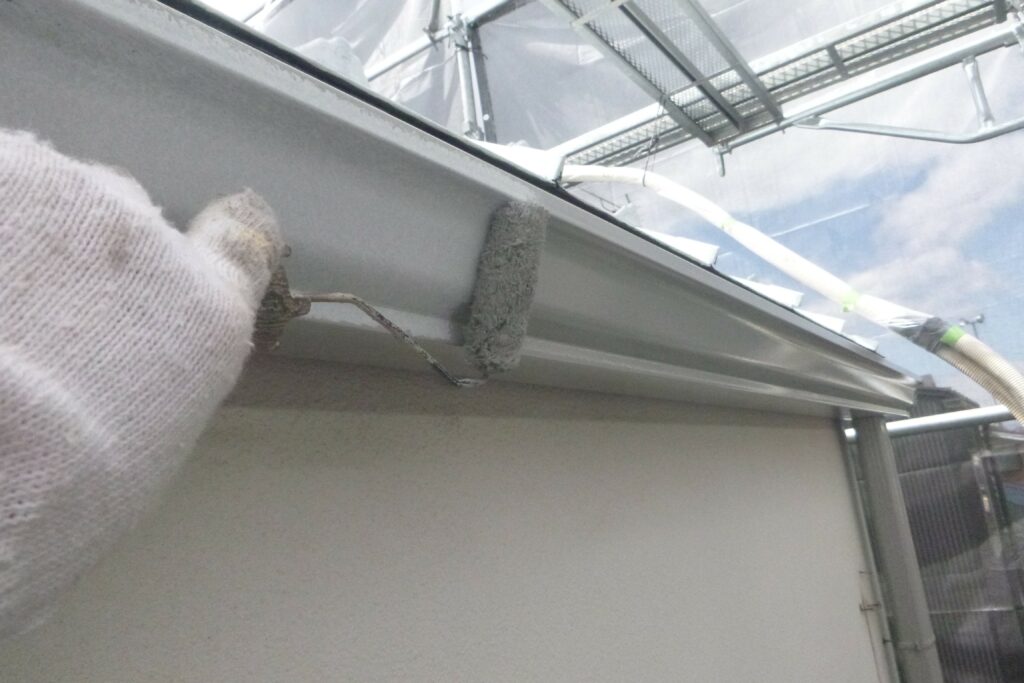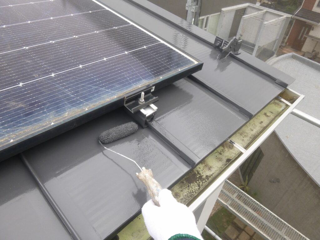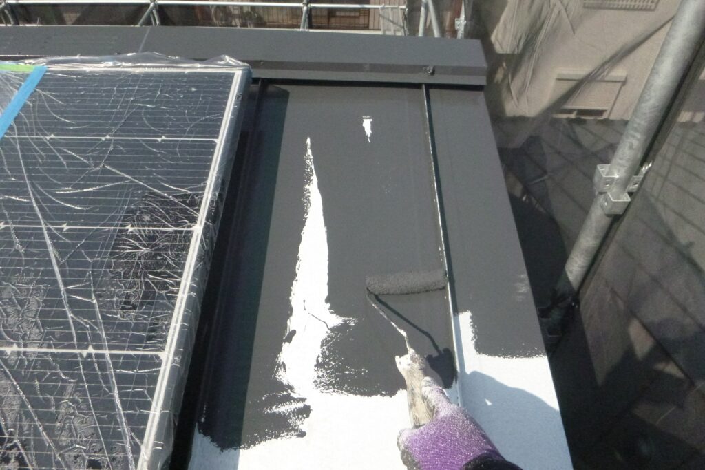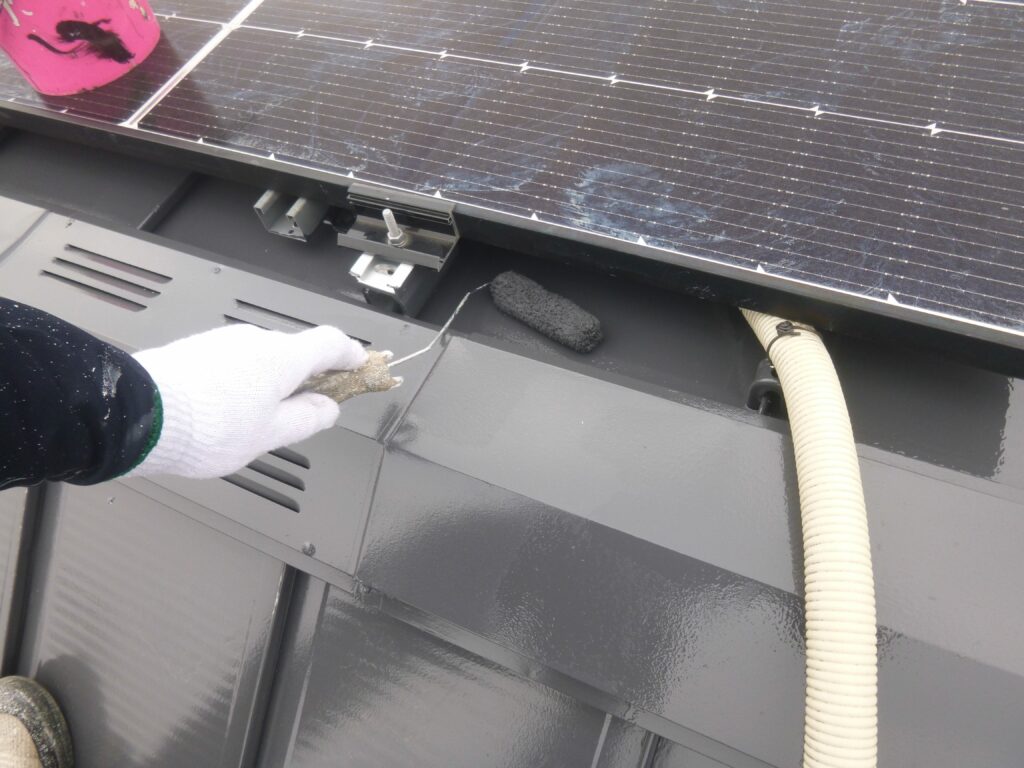 翌日は付帯部の中塗りと屋根の中塗りです。