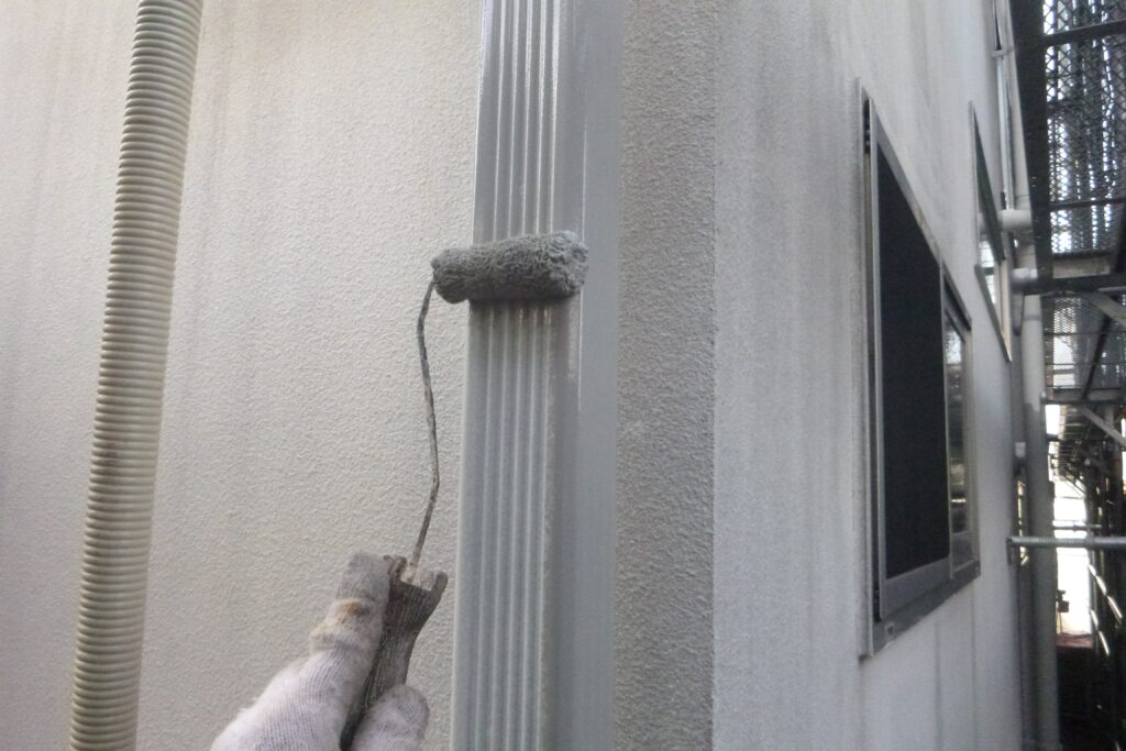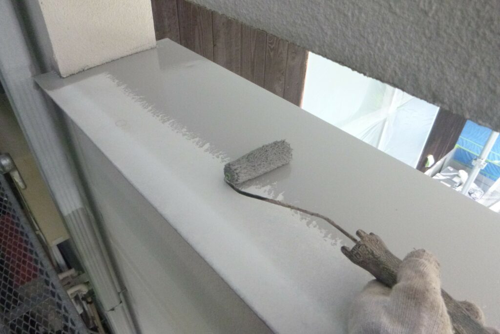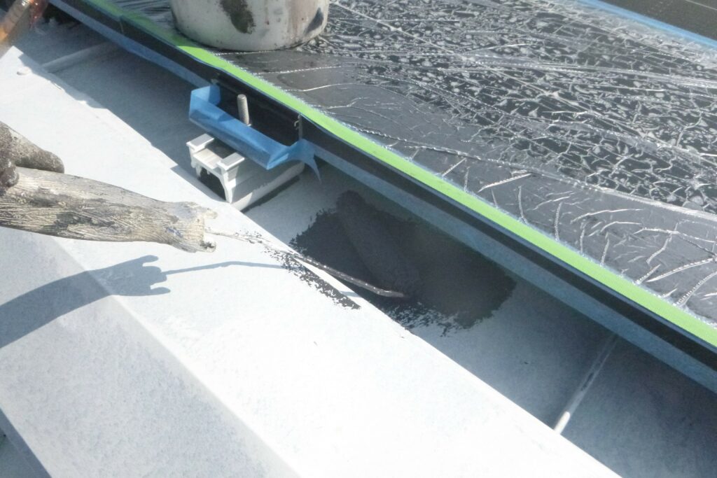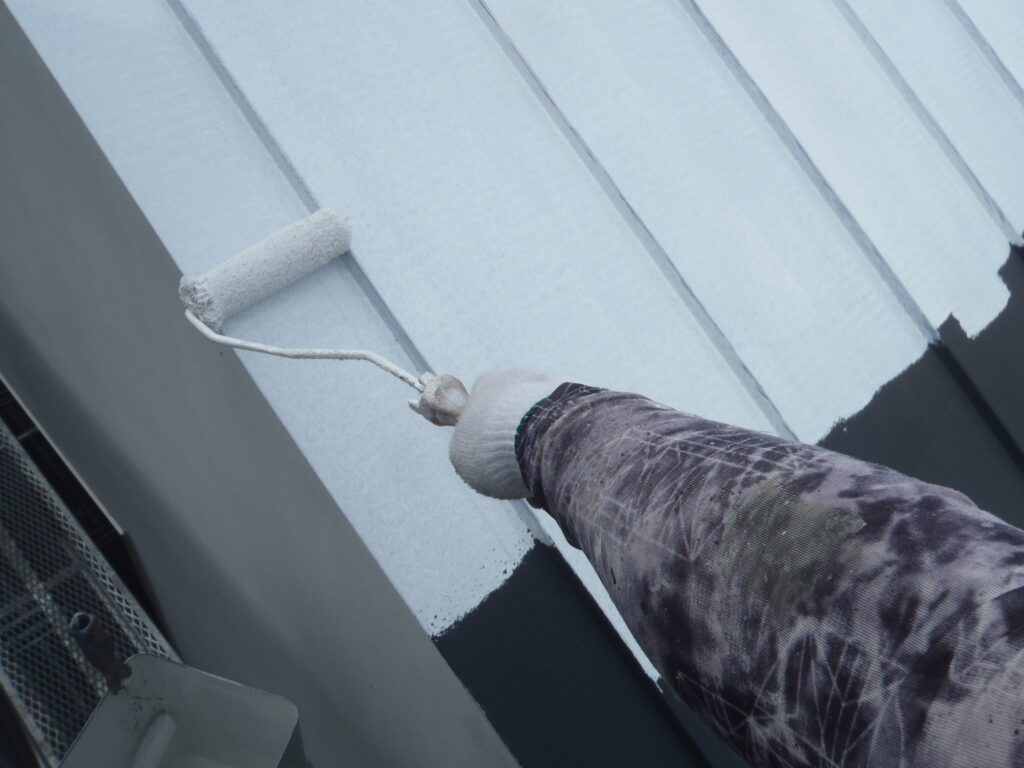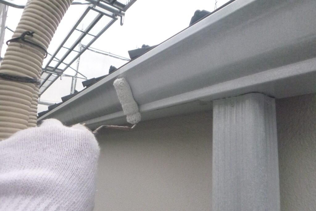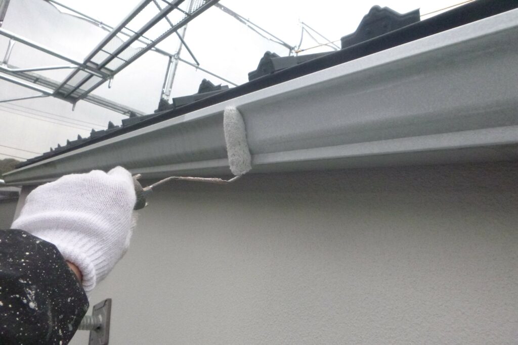 翌日は付帯部の中塗りと屋根の中塗りです。