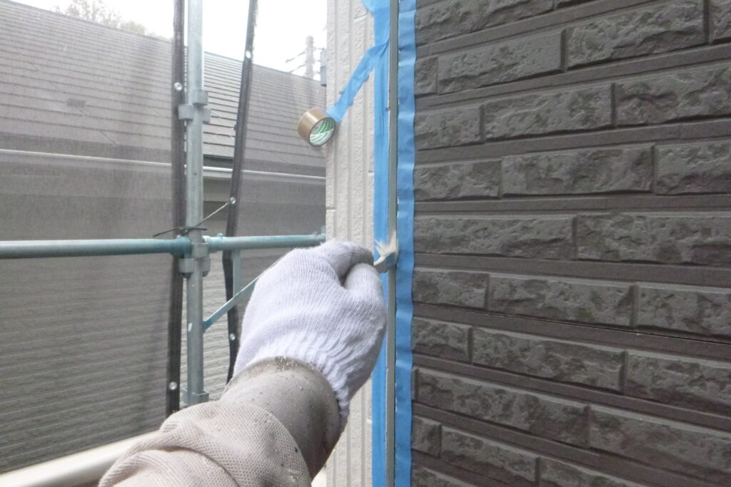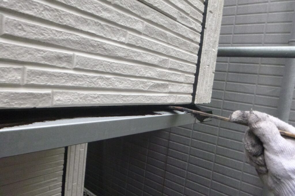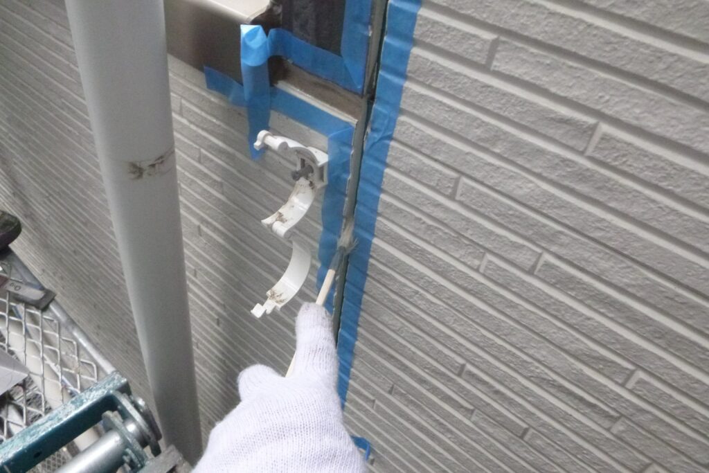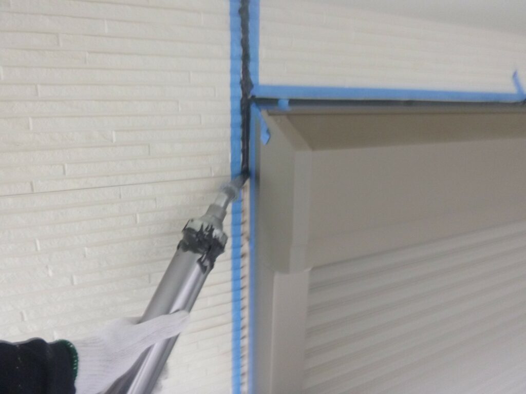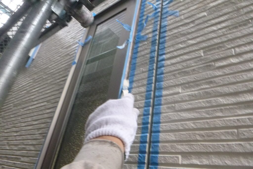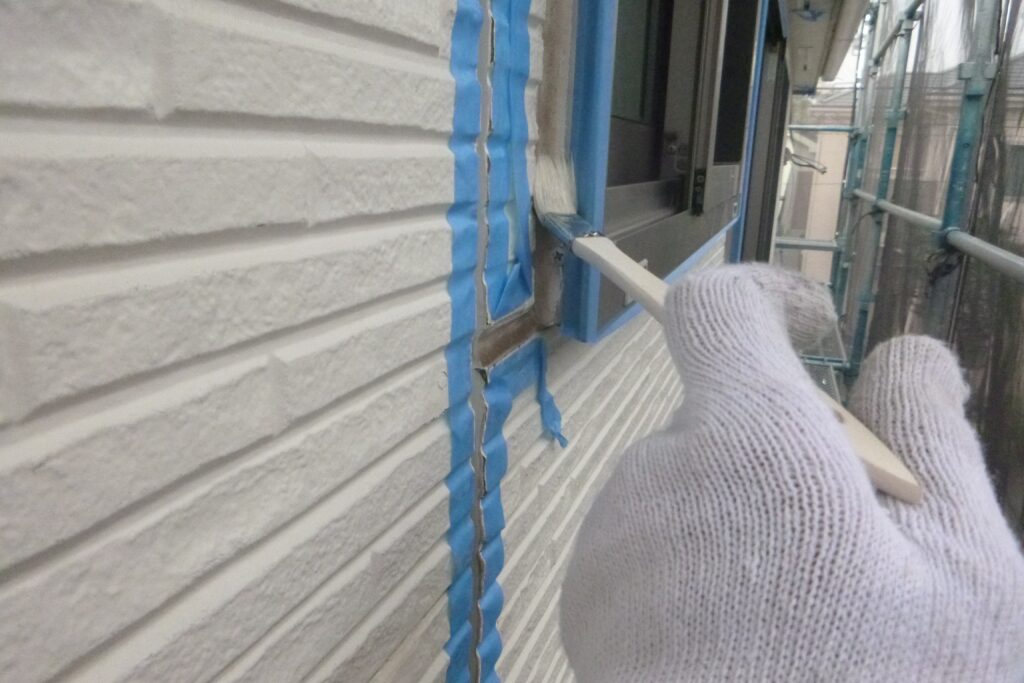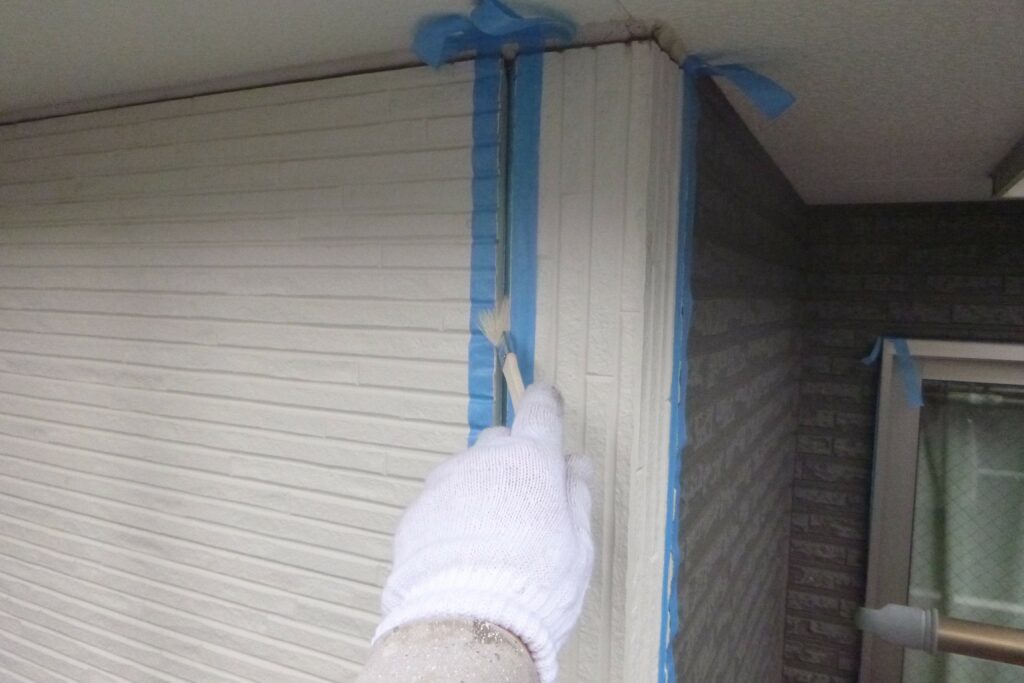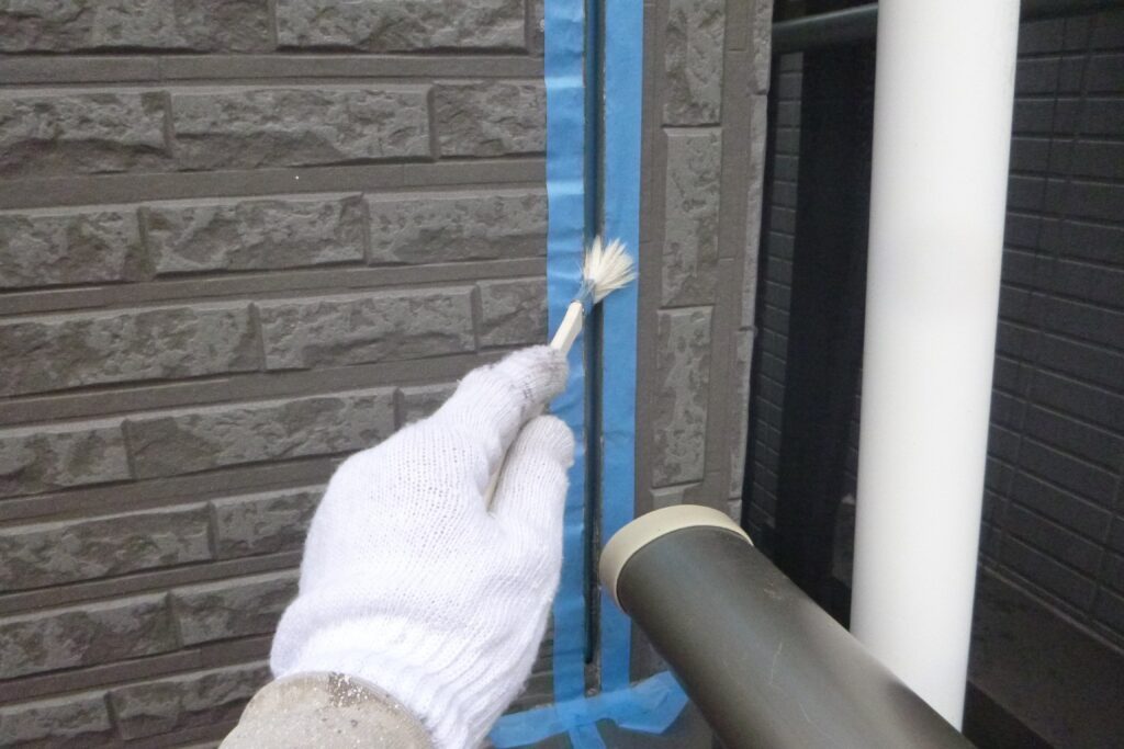 古いシーリングを撤去してマスキングテープを貼ったらプライマーを塗り込みます。