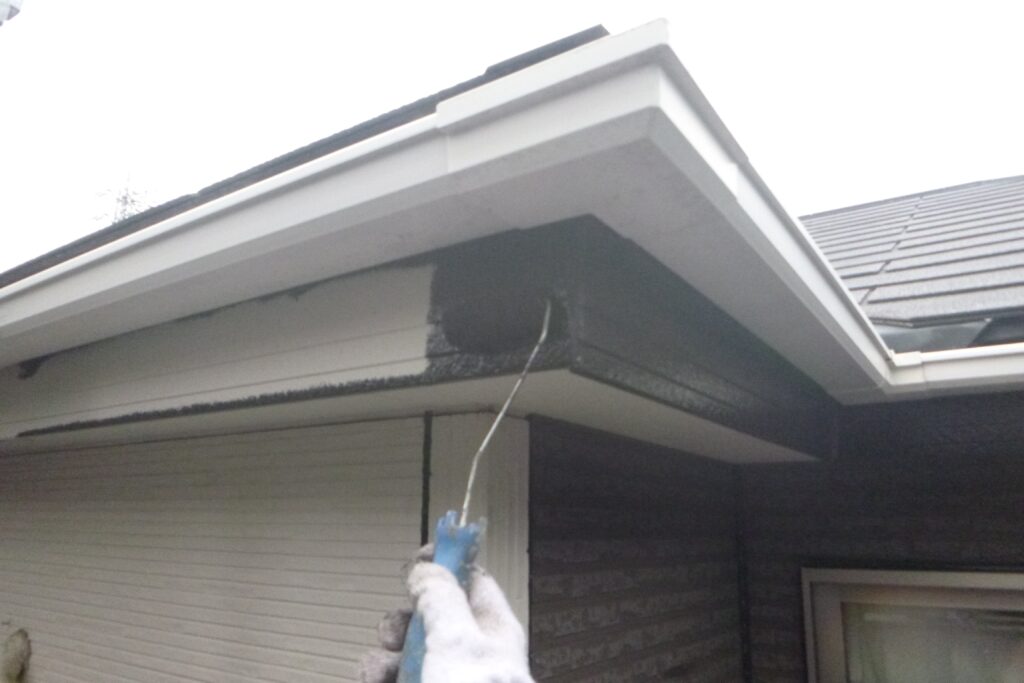 破風などのボード部も吸い込み防止に下塗りを行っています。