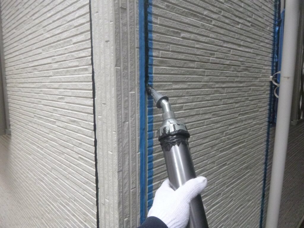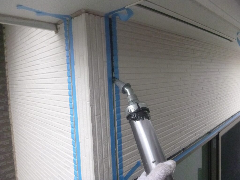 プライマーを塗り終えたら器具に吸い上げたシーリング材を充填し、