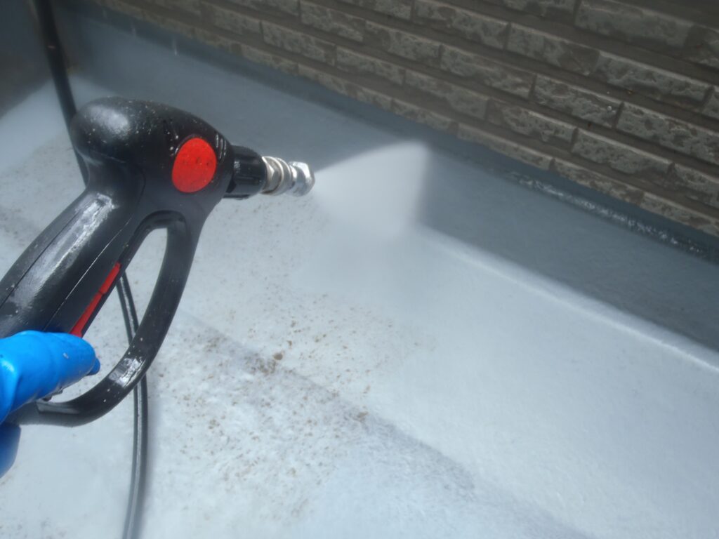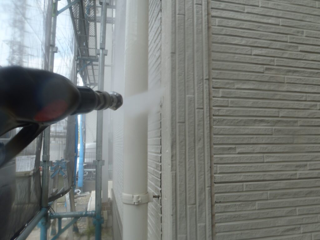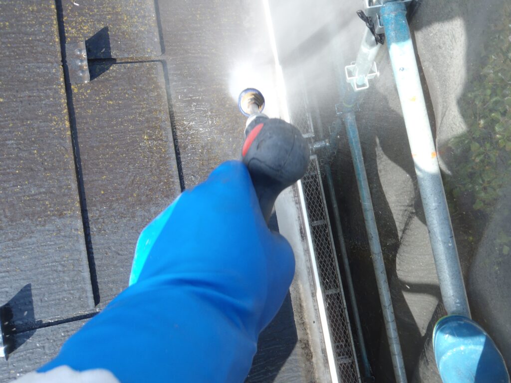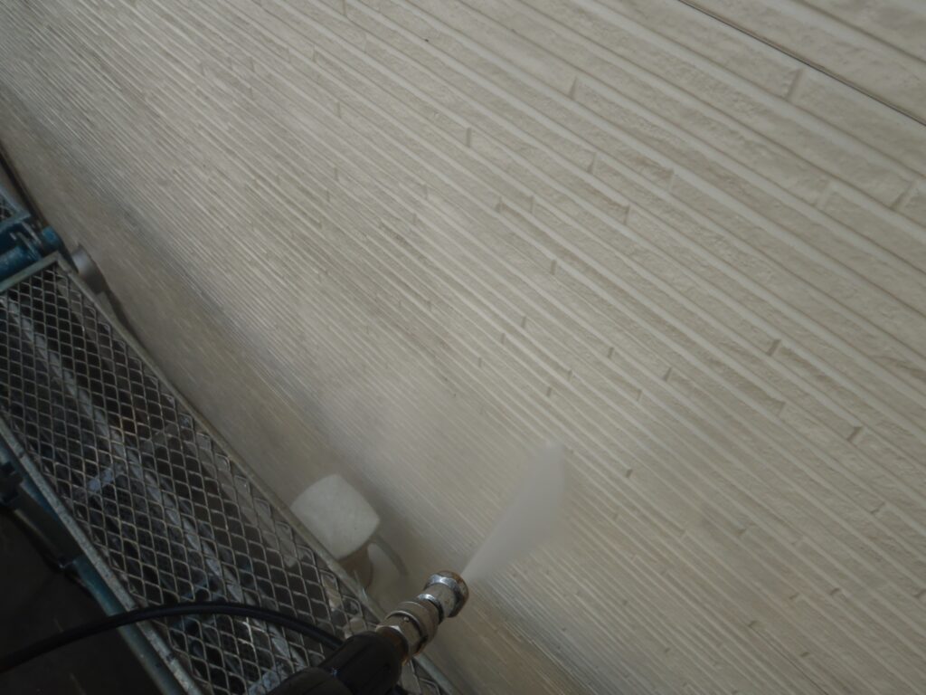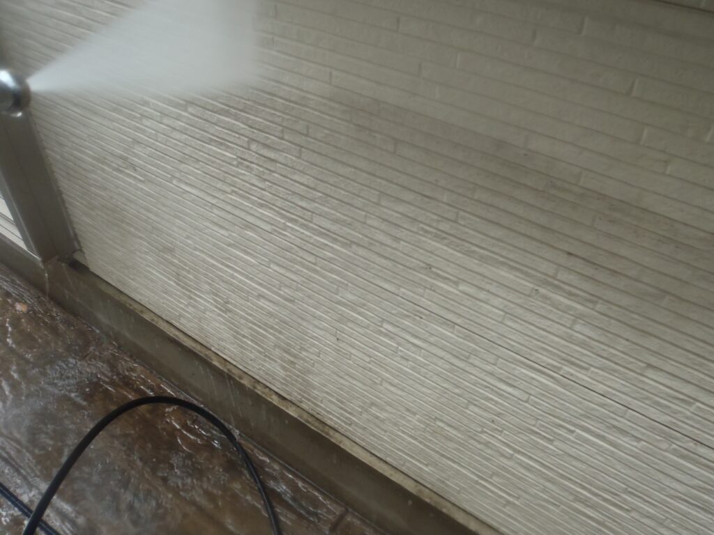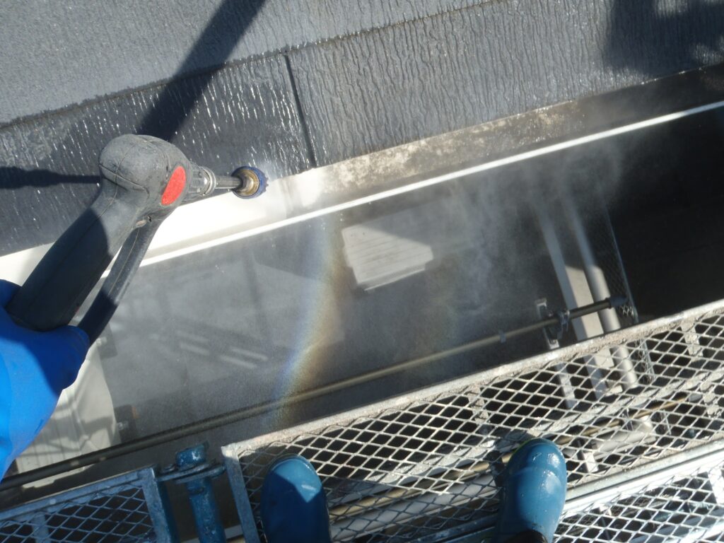 3日間で高圧洗浄、シーリング施工、付帯部の下塗り、屋根の下塗りの工程を行いました。