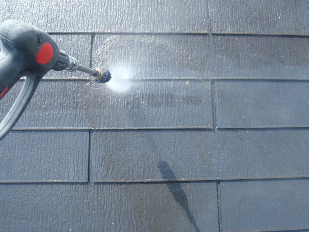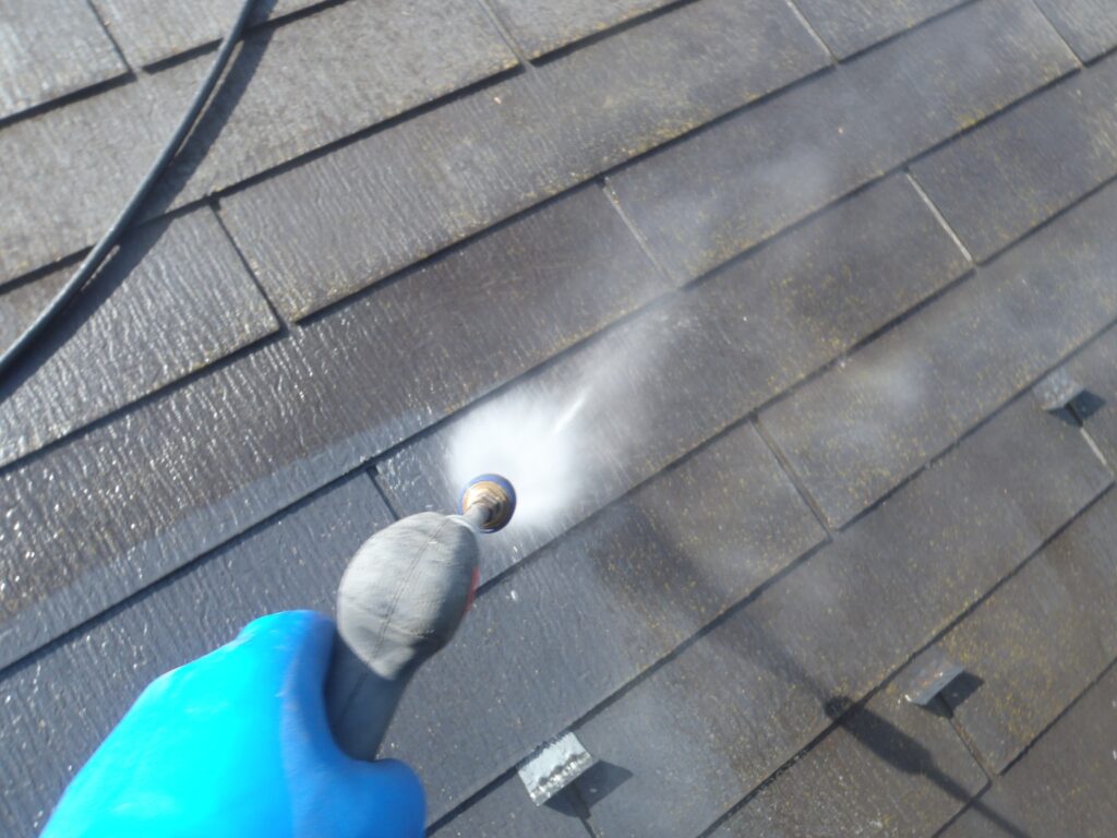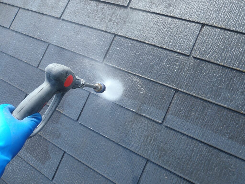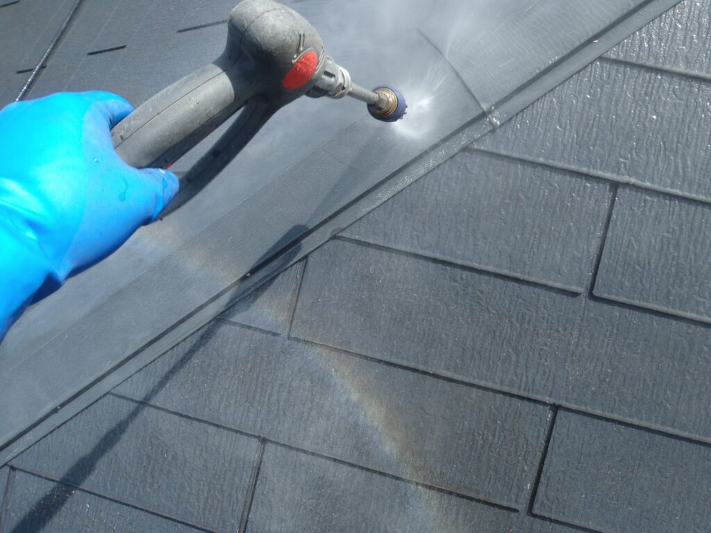 屋根にこびりついている汚れやコケをしっかり落とします。
