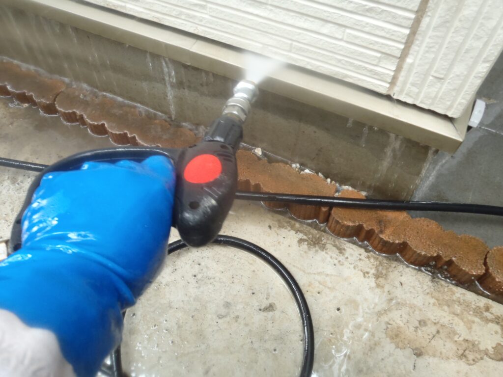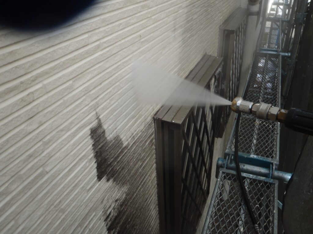 初日は高圧洗浄を行いました。