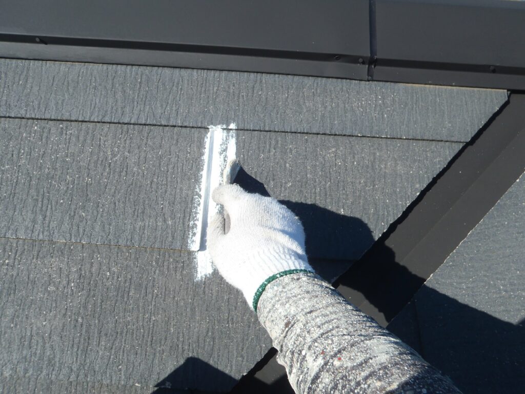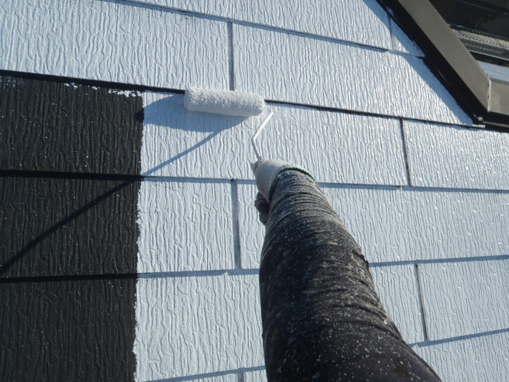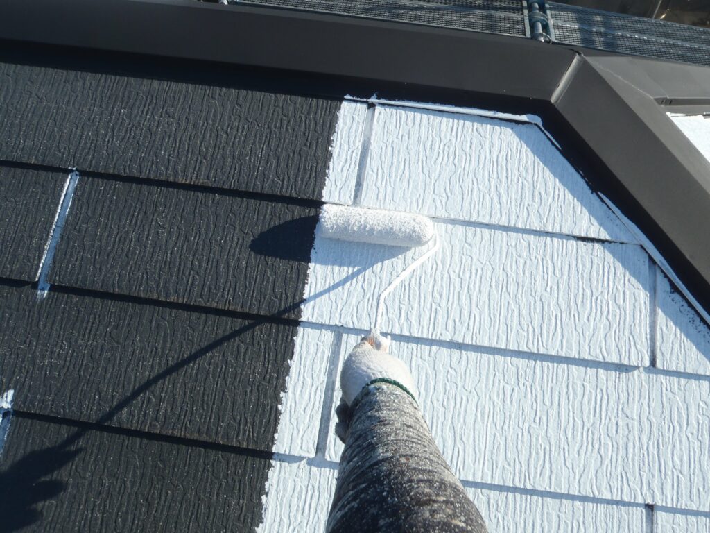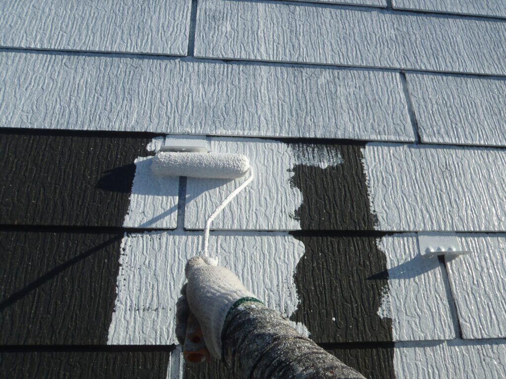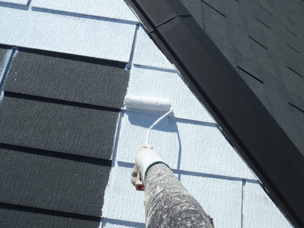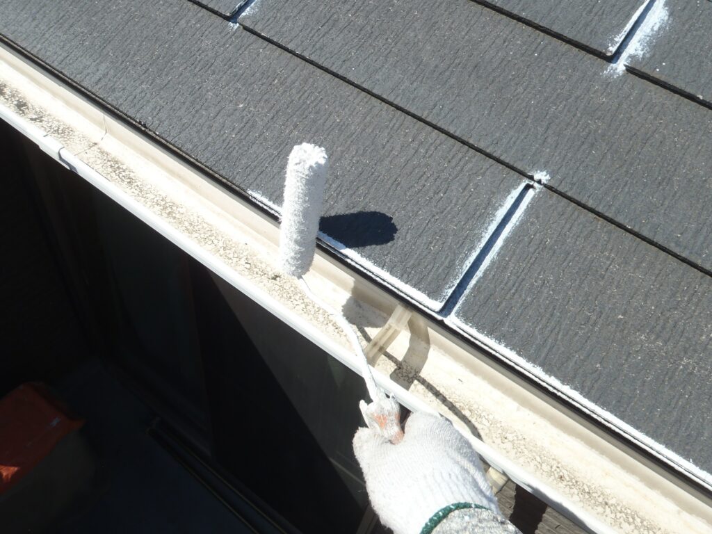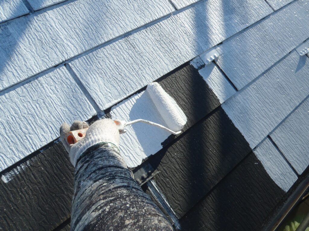 スレート材同士の間に目地があるので先に刷毛で塗装をしておくと作業が進みやすいです。